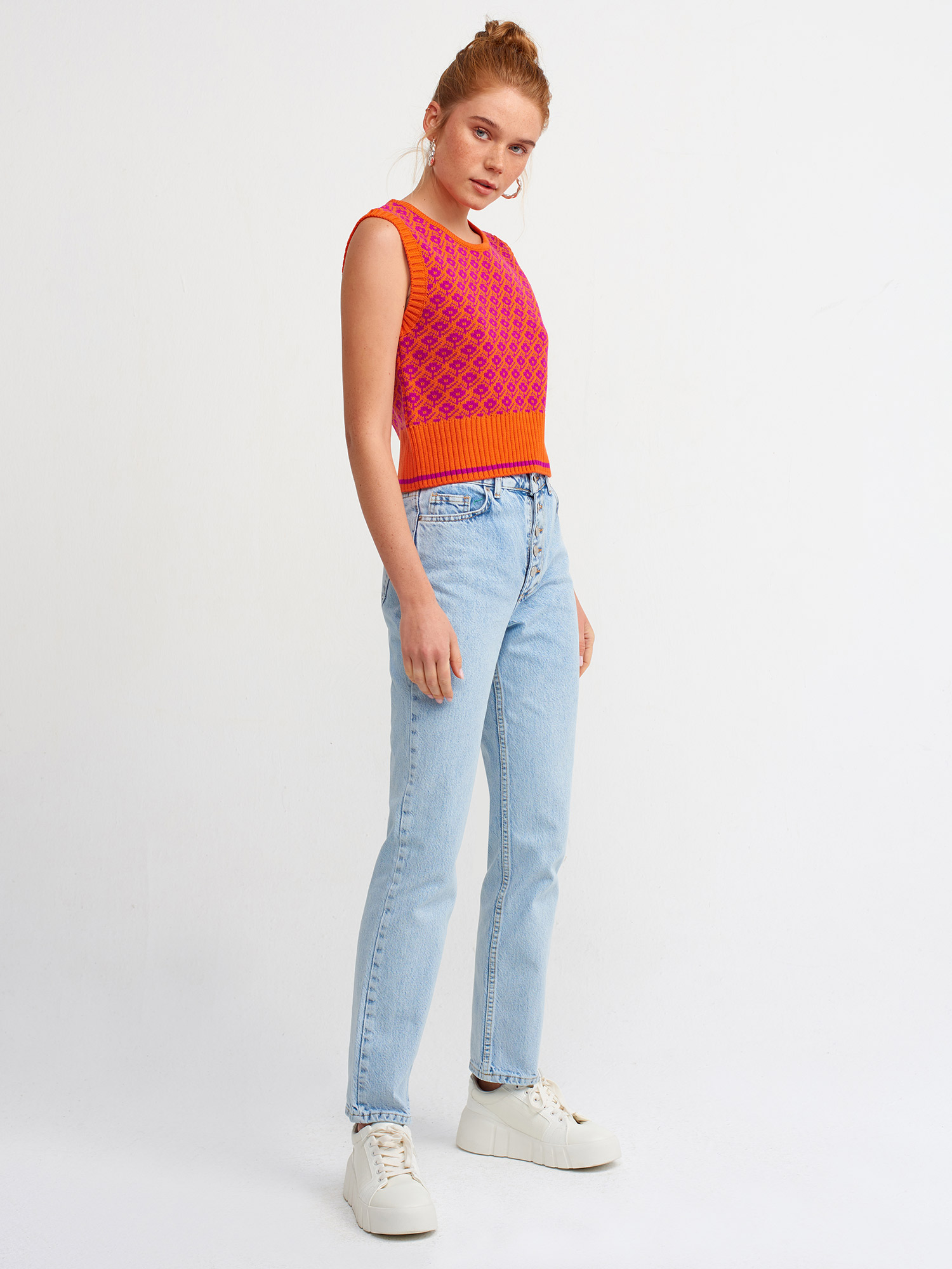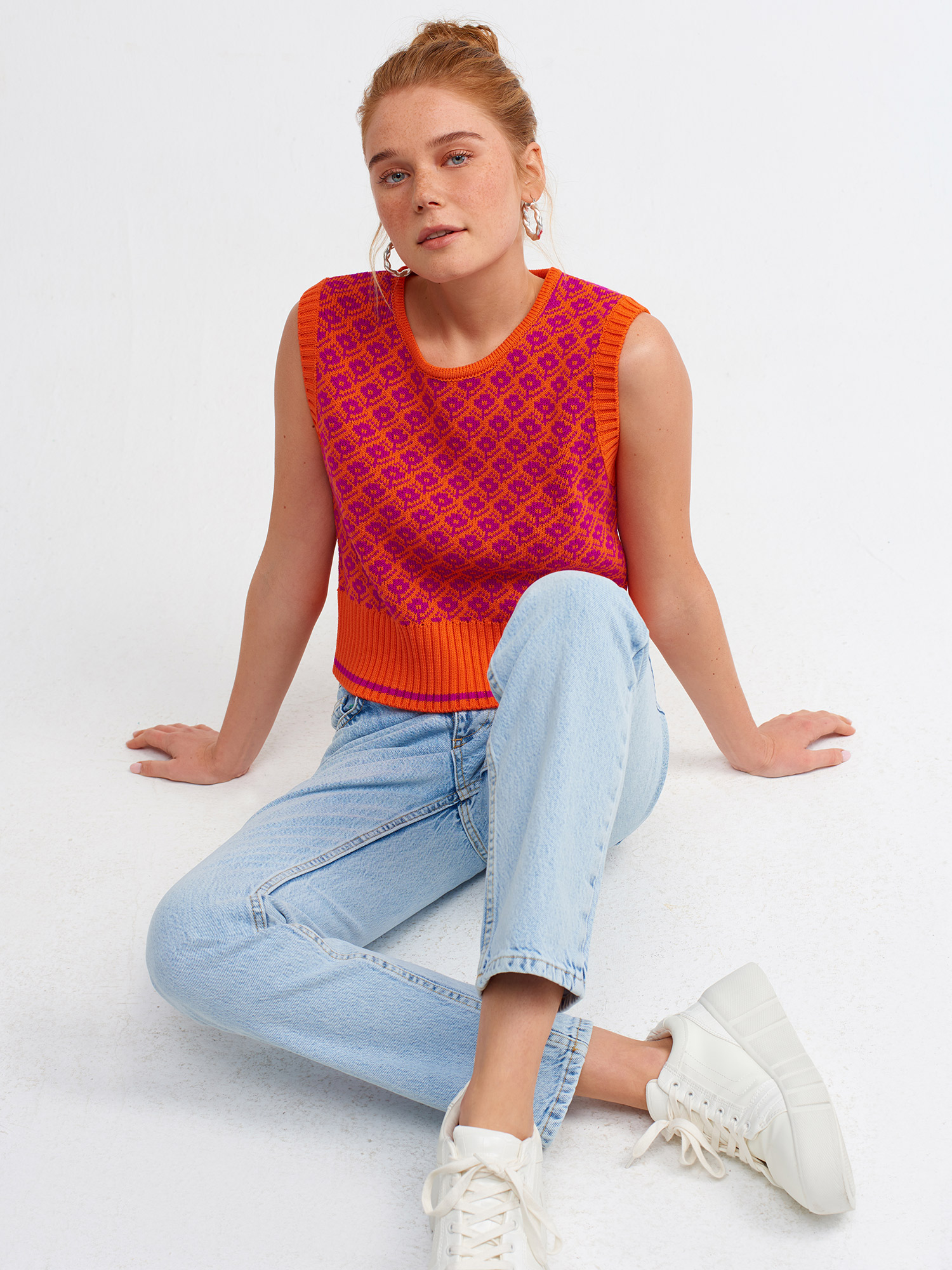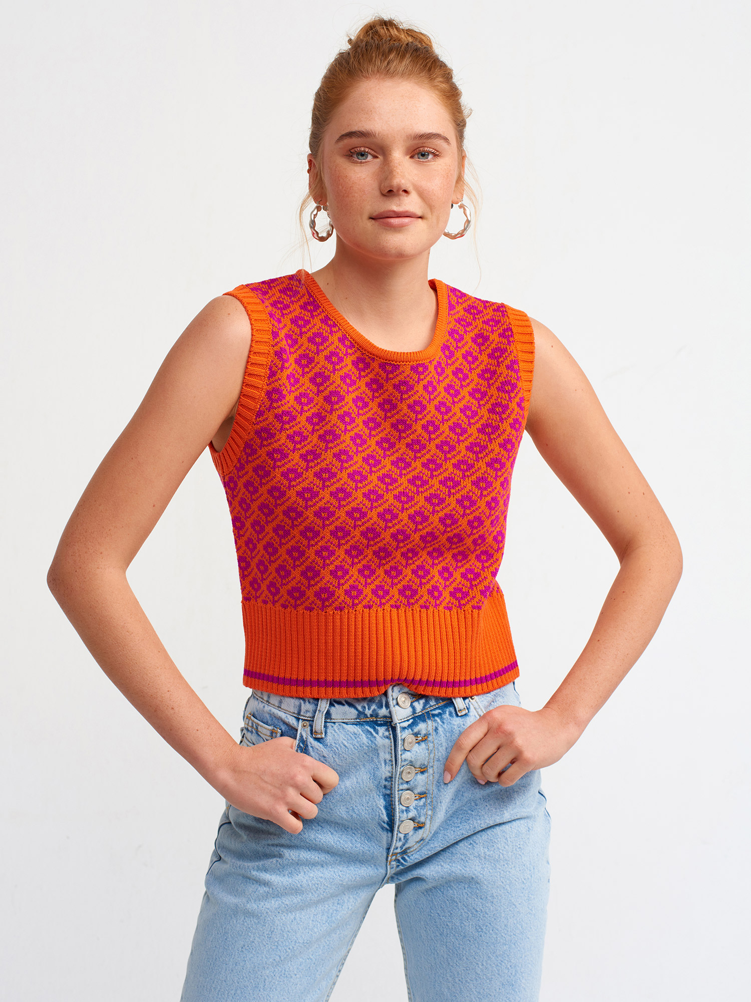 60122 Bisiklet Yaka Triko Süveter-Turuncu