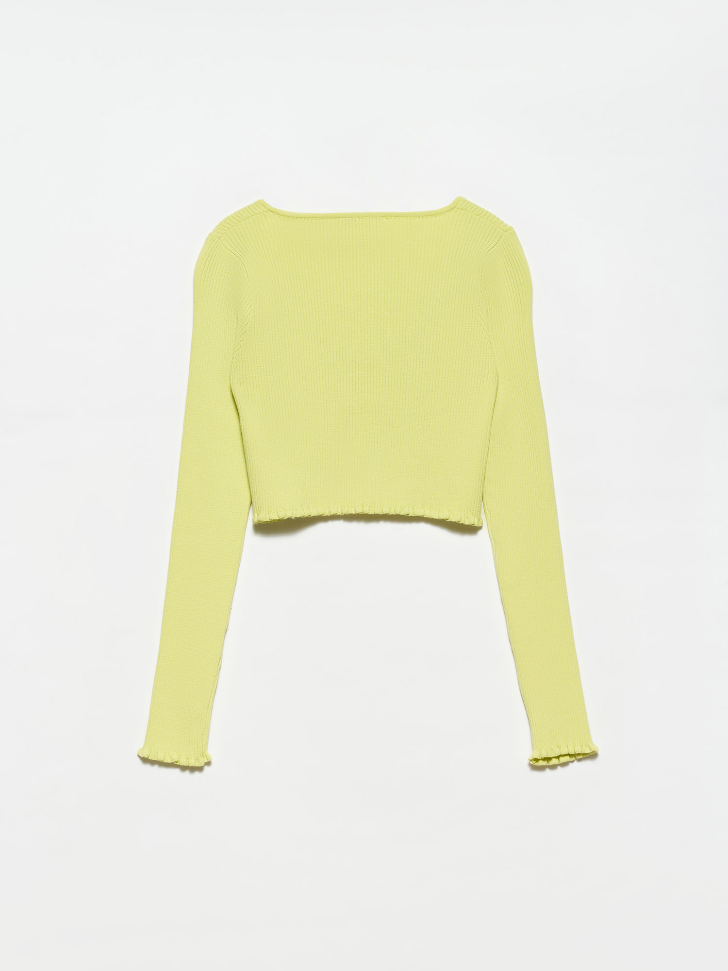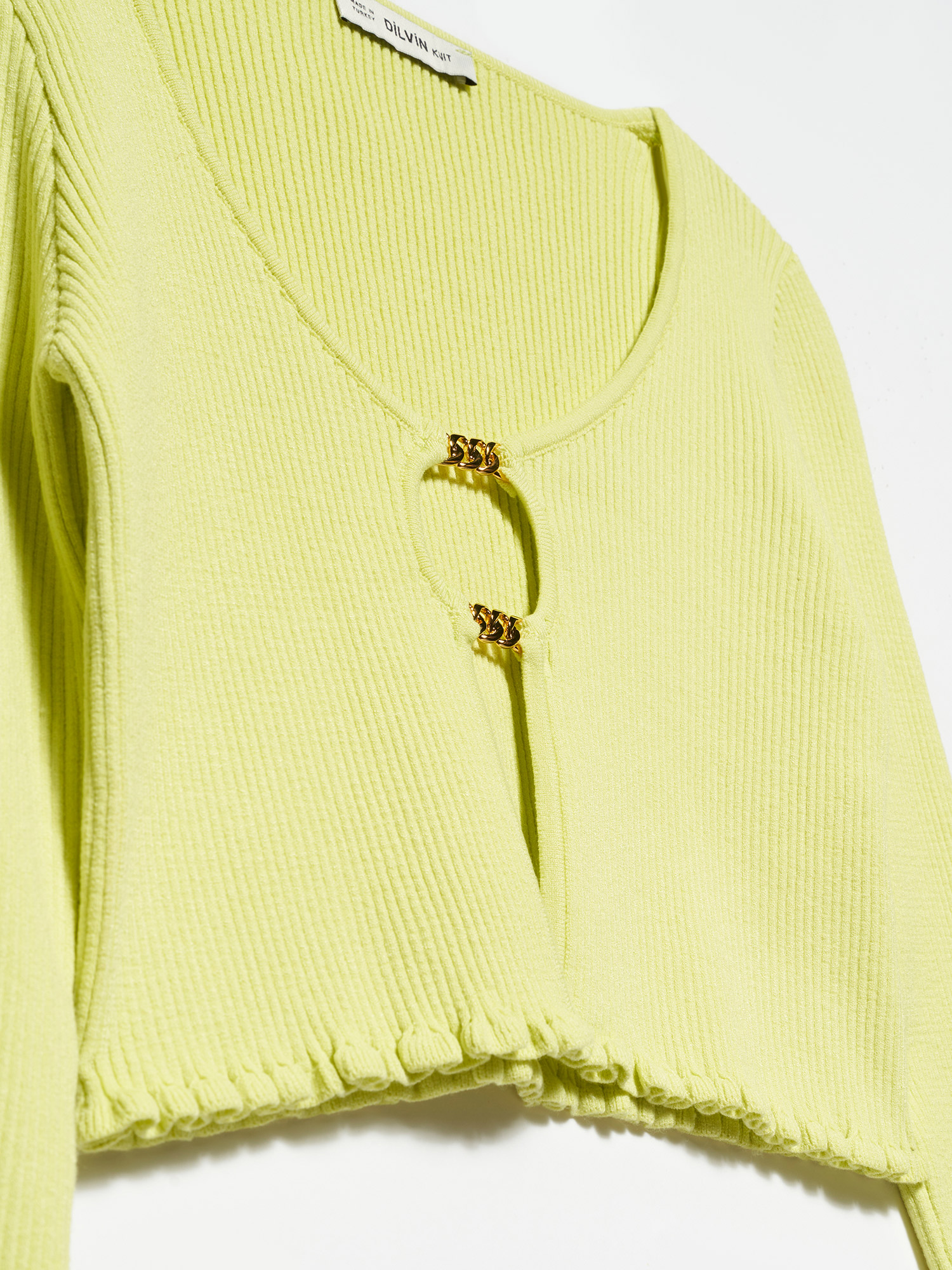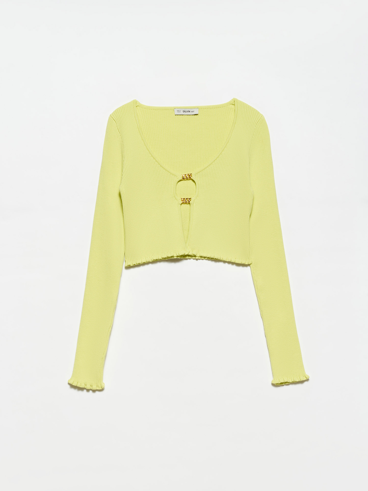 60134 U Yaka Önü Aksesuarlı Triko Hırka-Lime