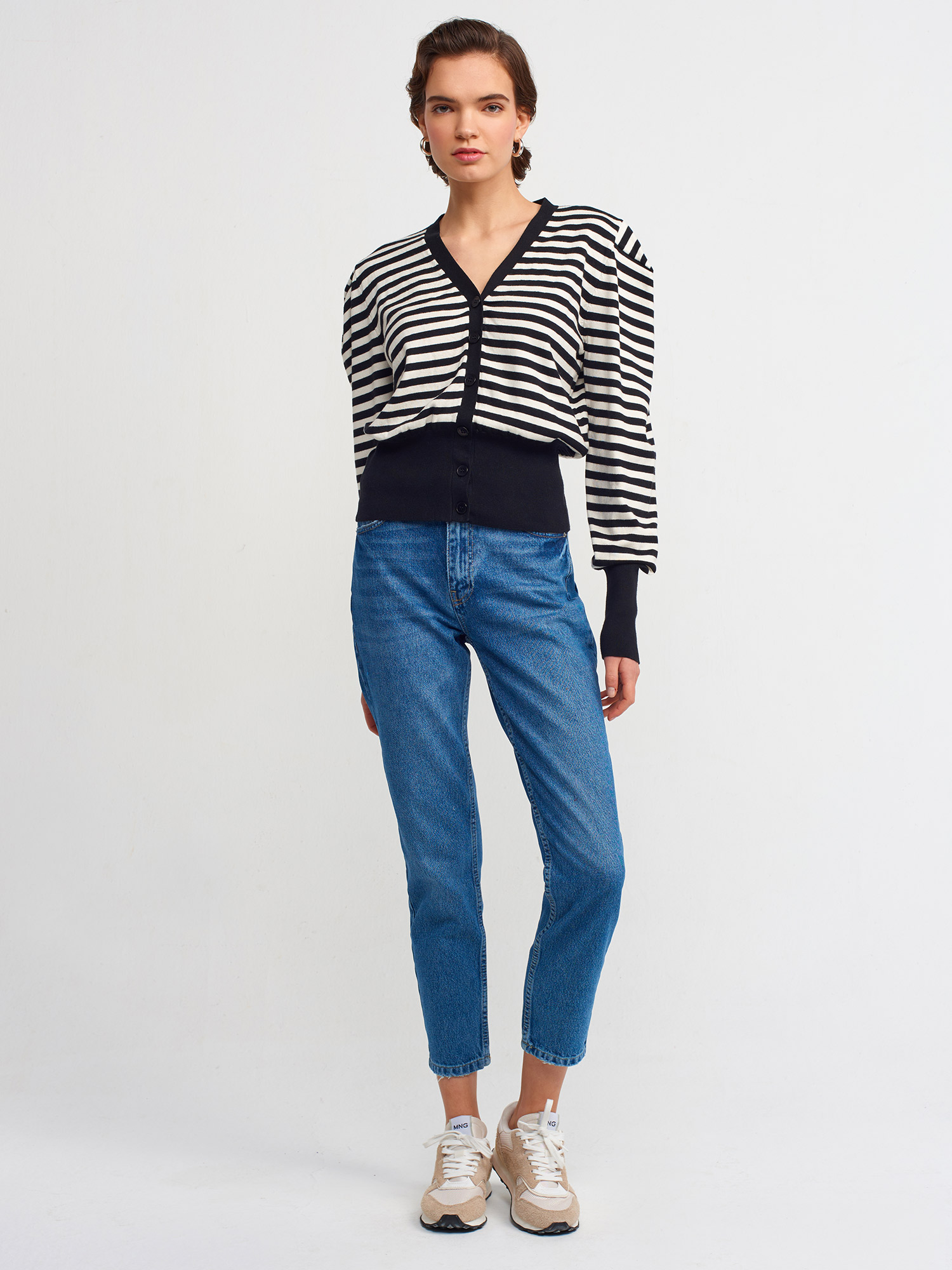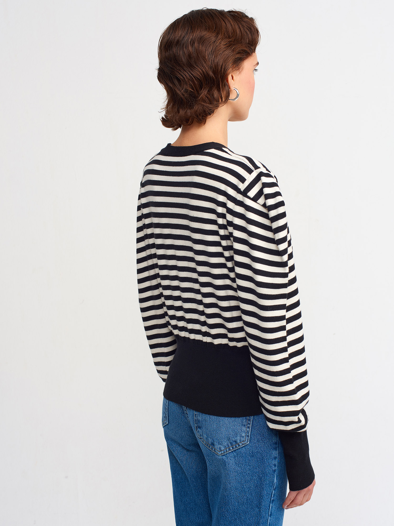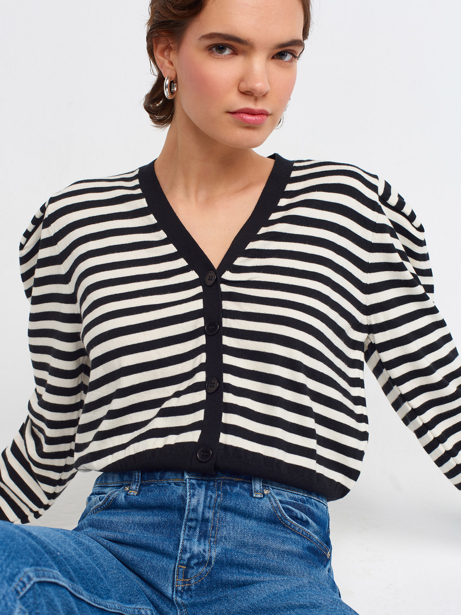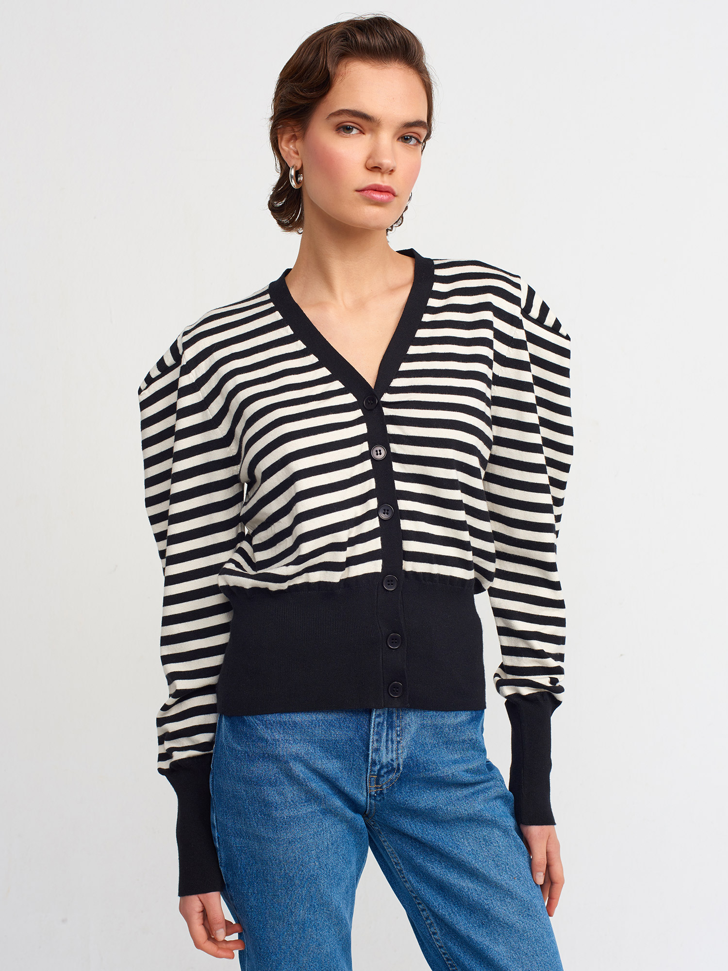 60181 V Yaka Çizgili Hırka-Siyah-N.