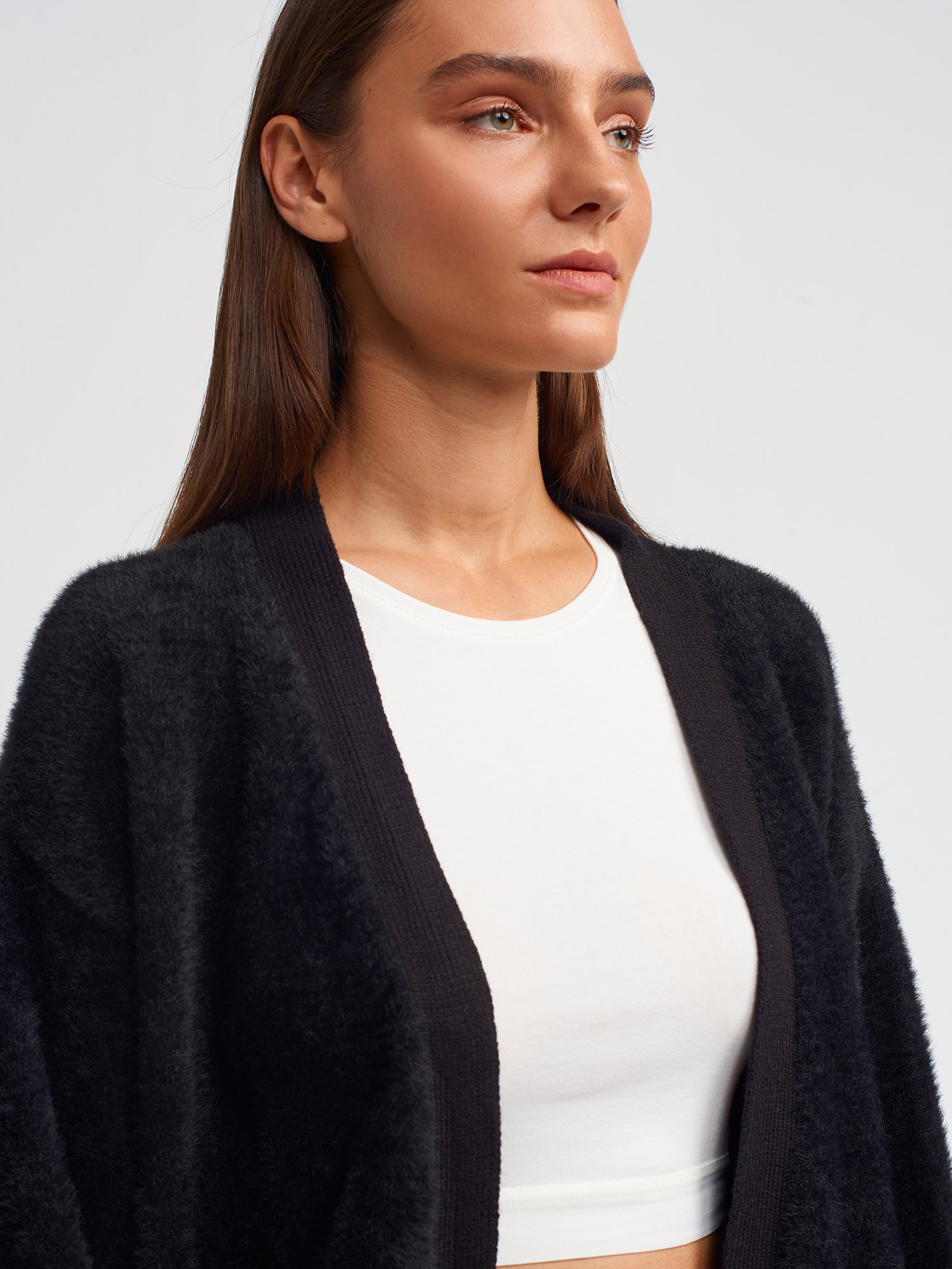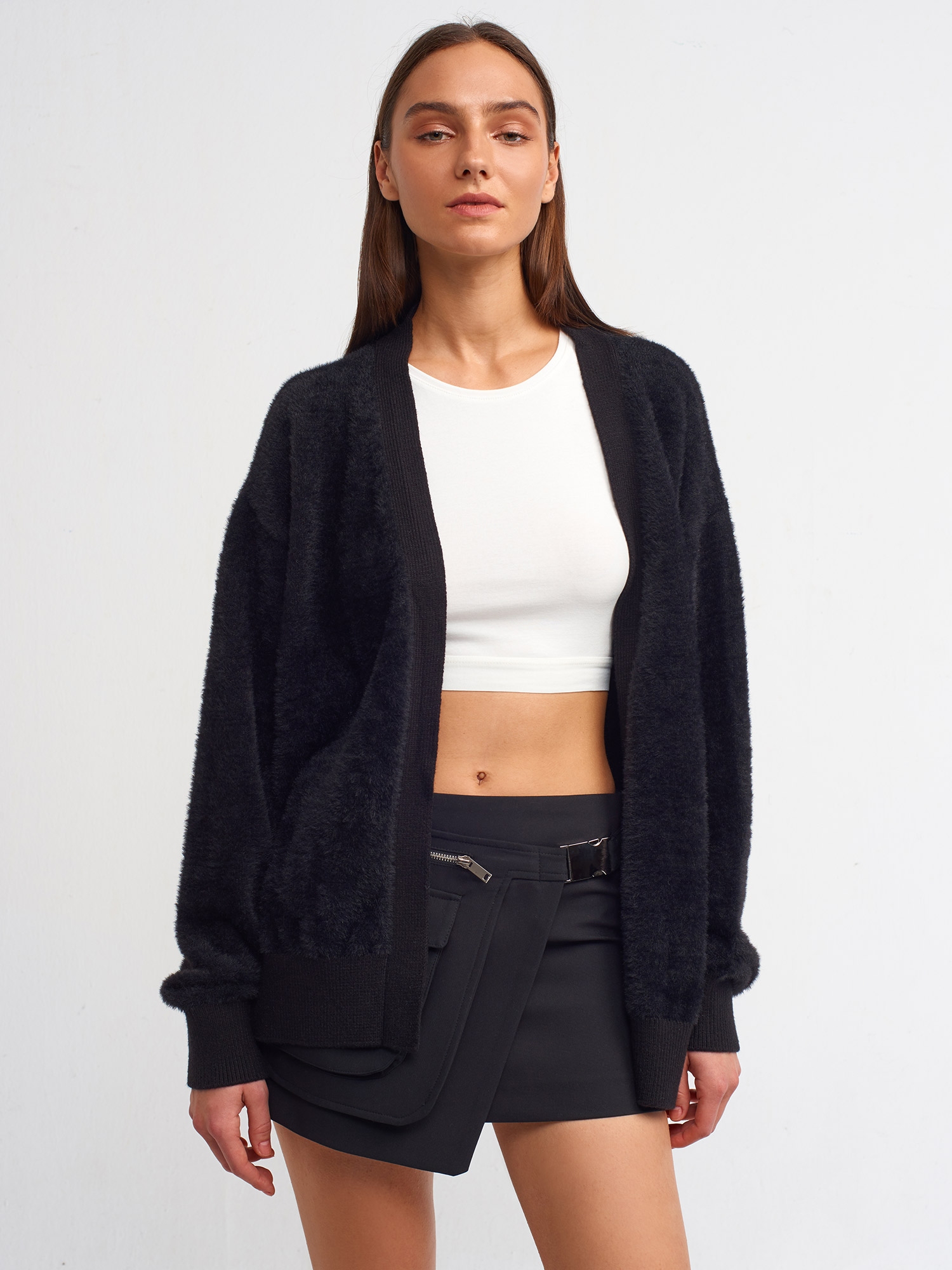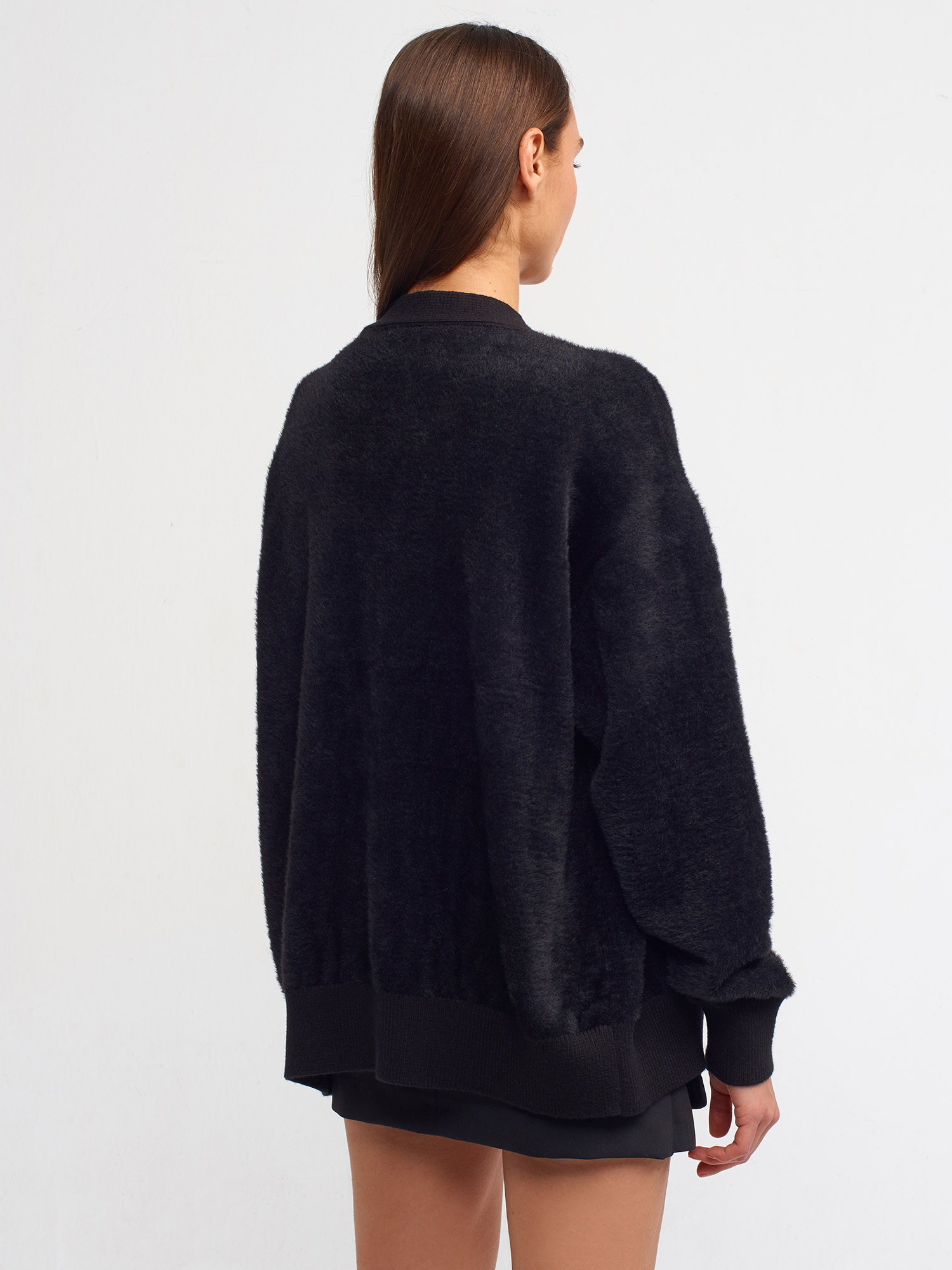 60204 Yumuşak Dokulu V Yaka Triko Hırka-Siyah