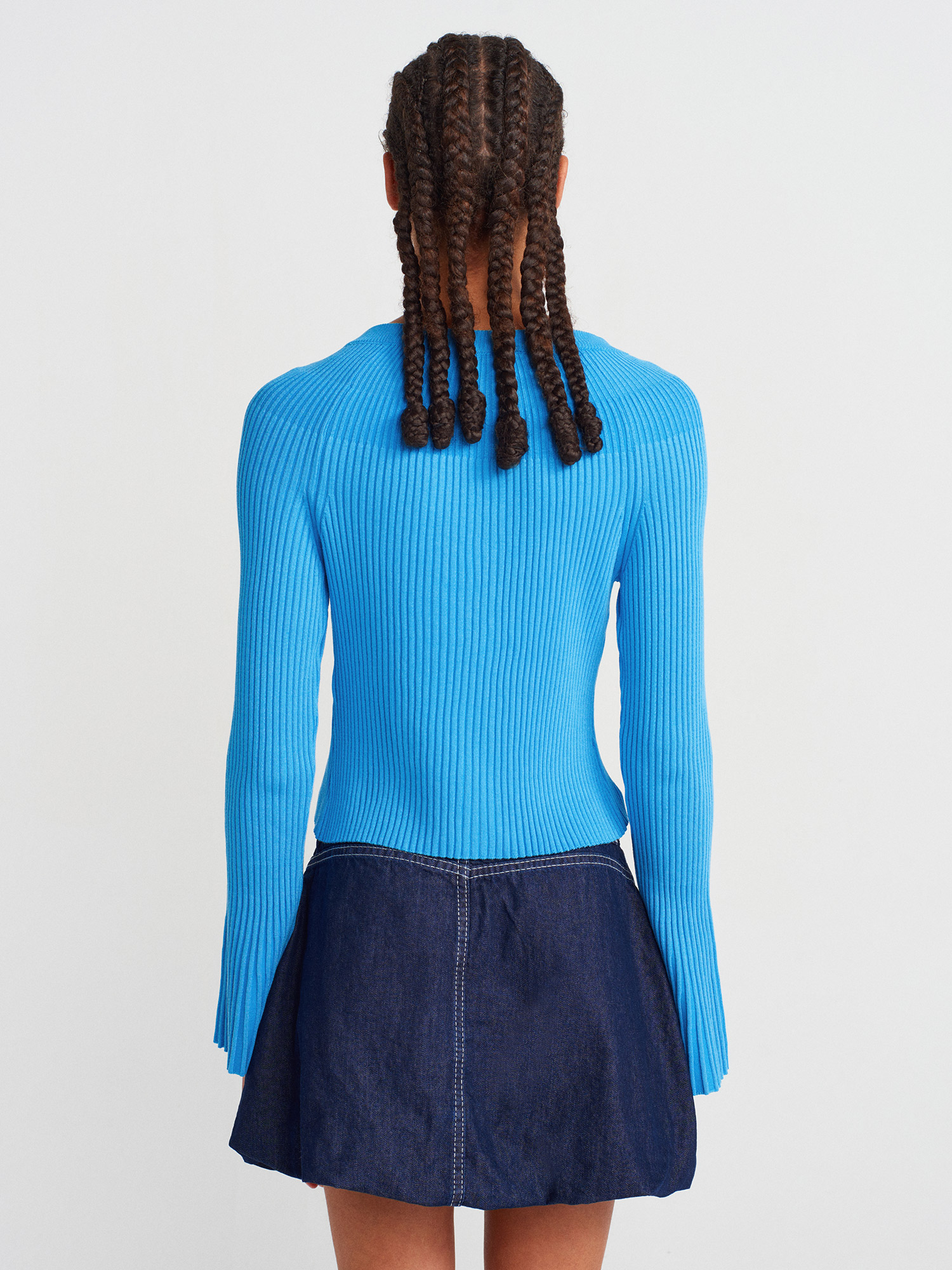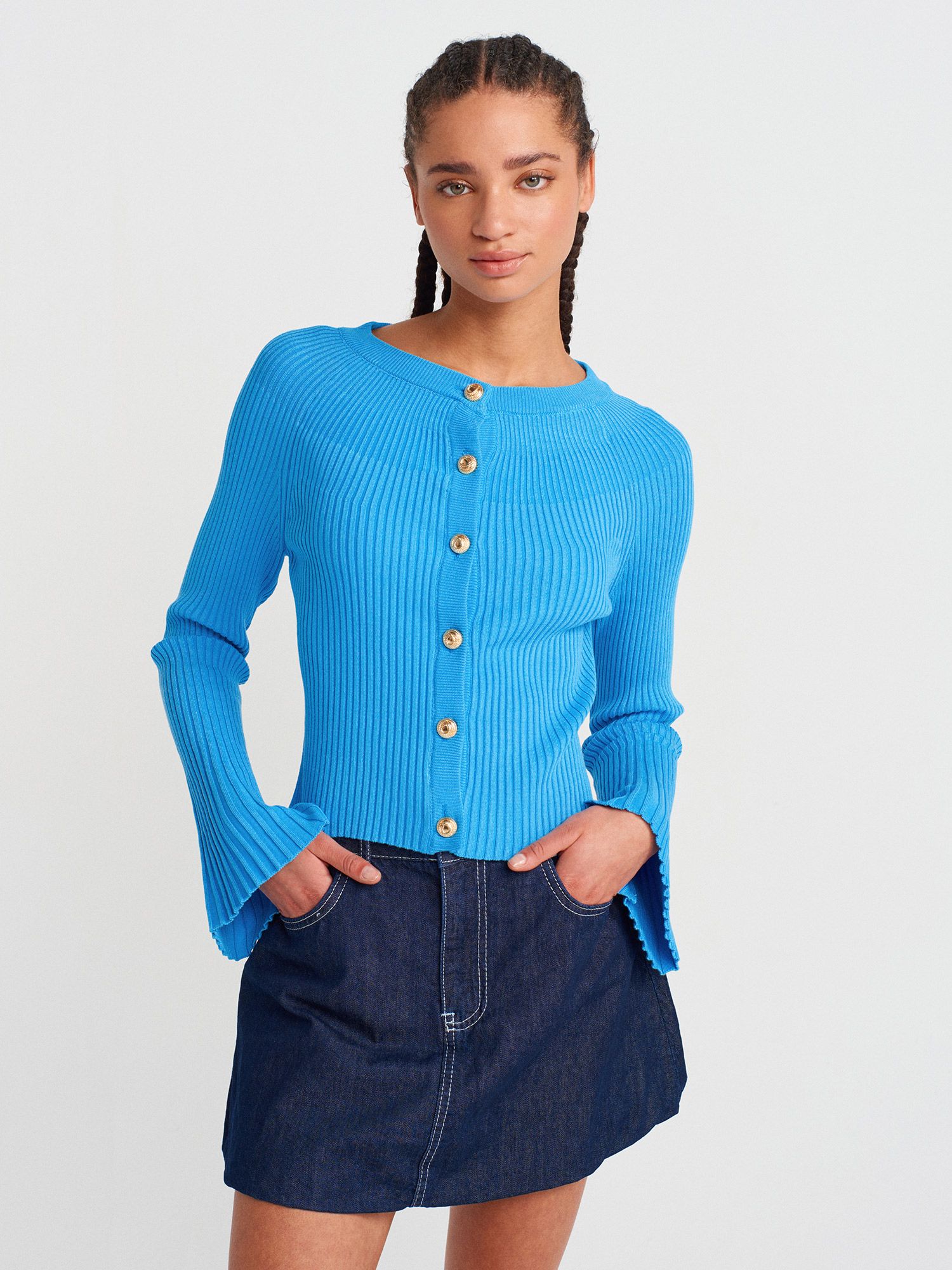 60246 İspanyol Kol Triko Hırka-Koyu Mavi