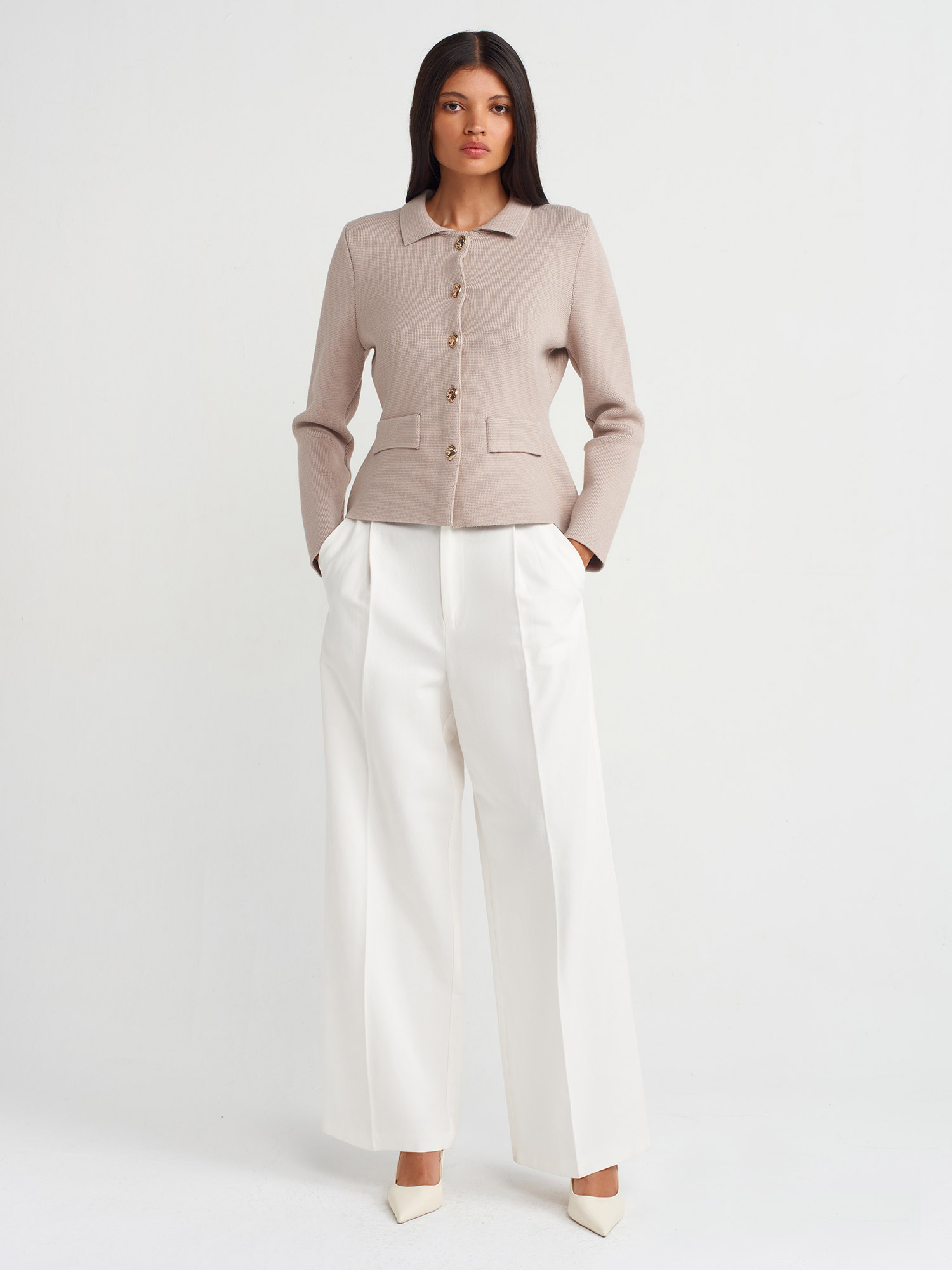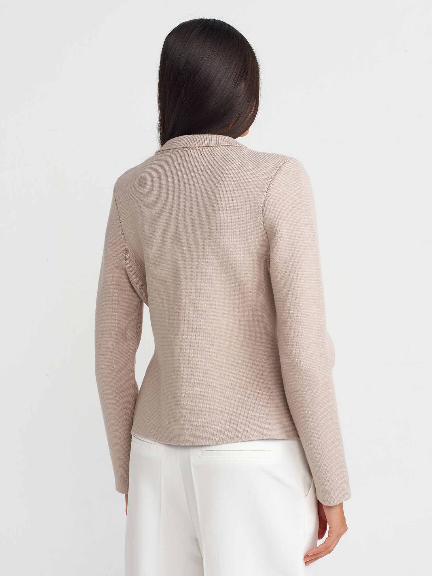 60254 Polo Yaka Düğmeli Triko Hırka-Vizon