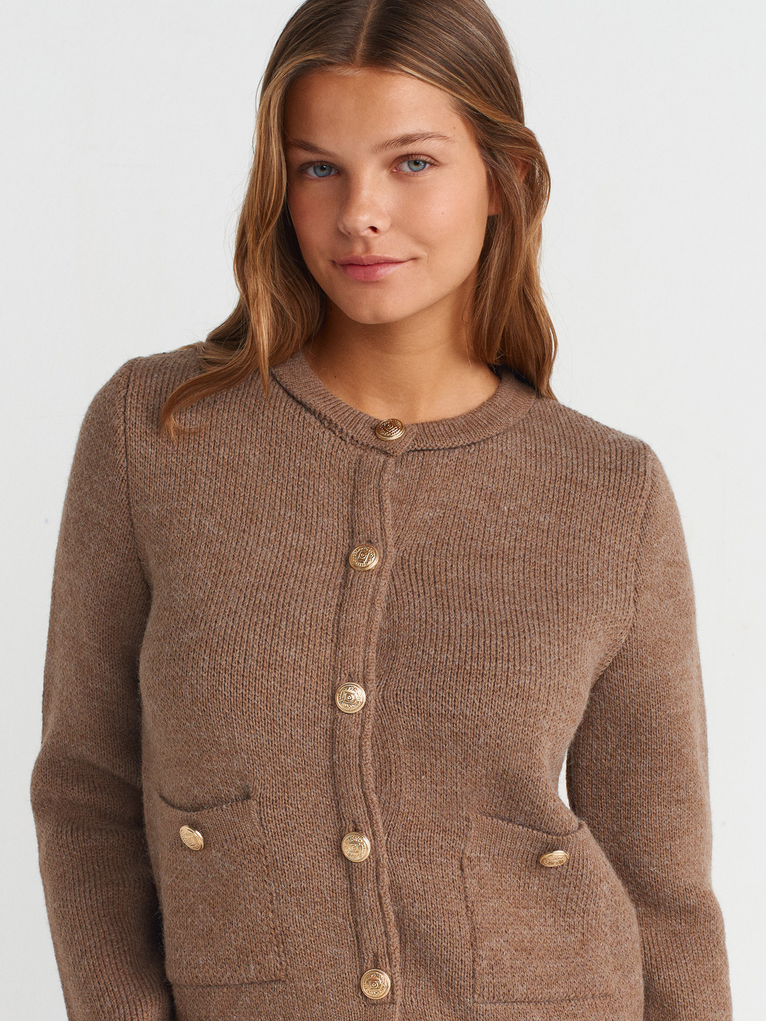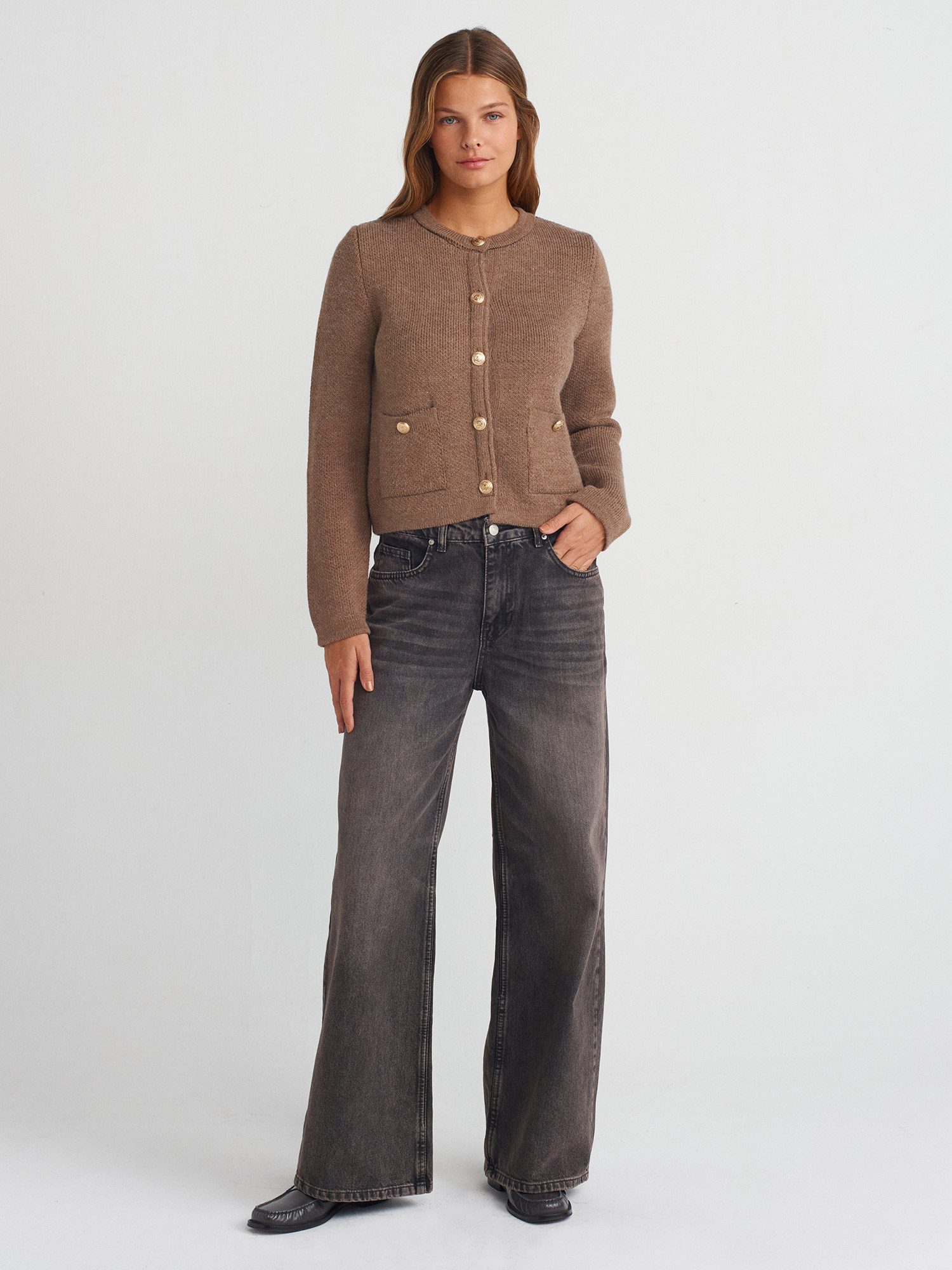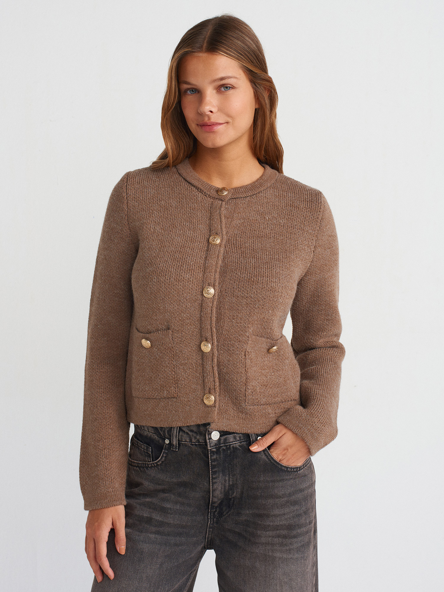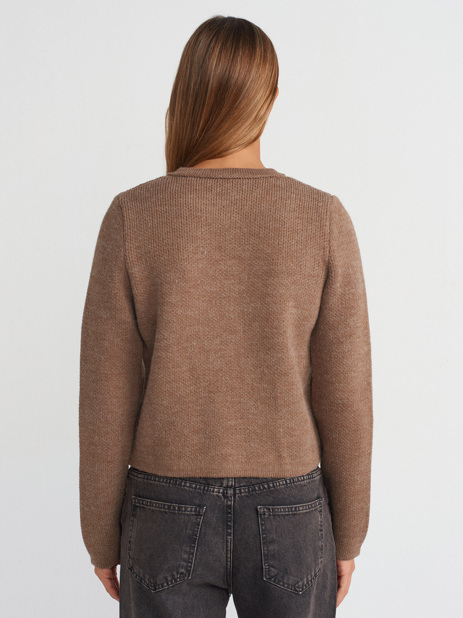 60262 Bisiklet Yaka Düğmeli Cepli Triko Hırka-Vizon