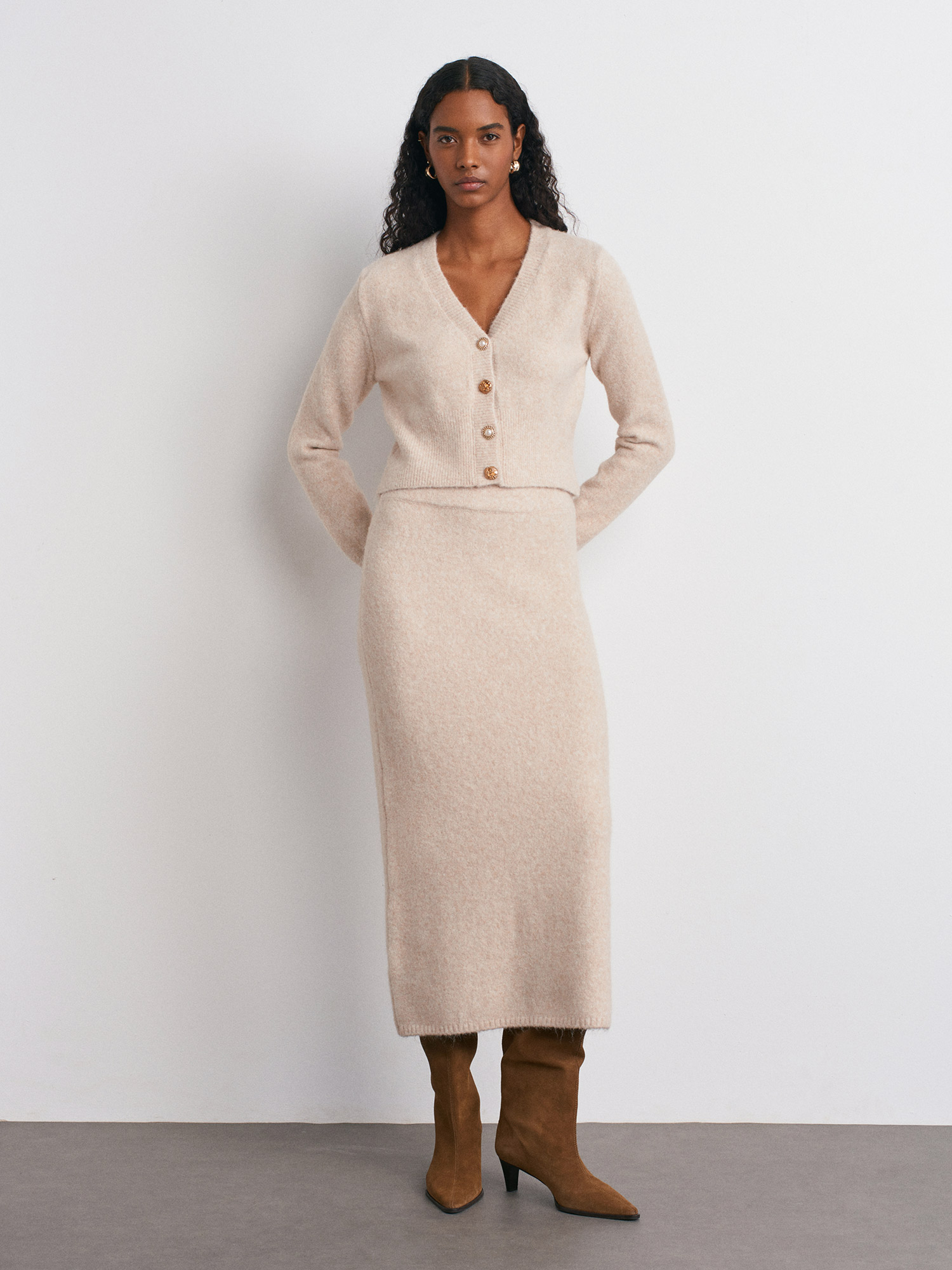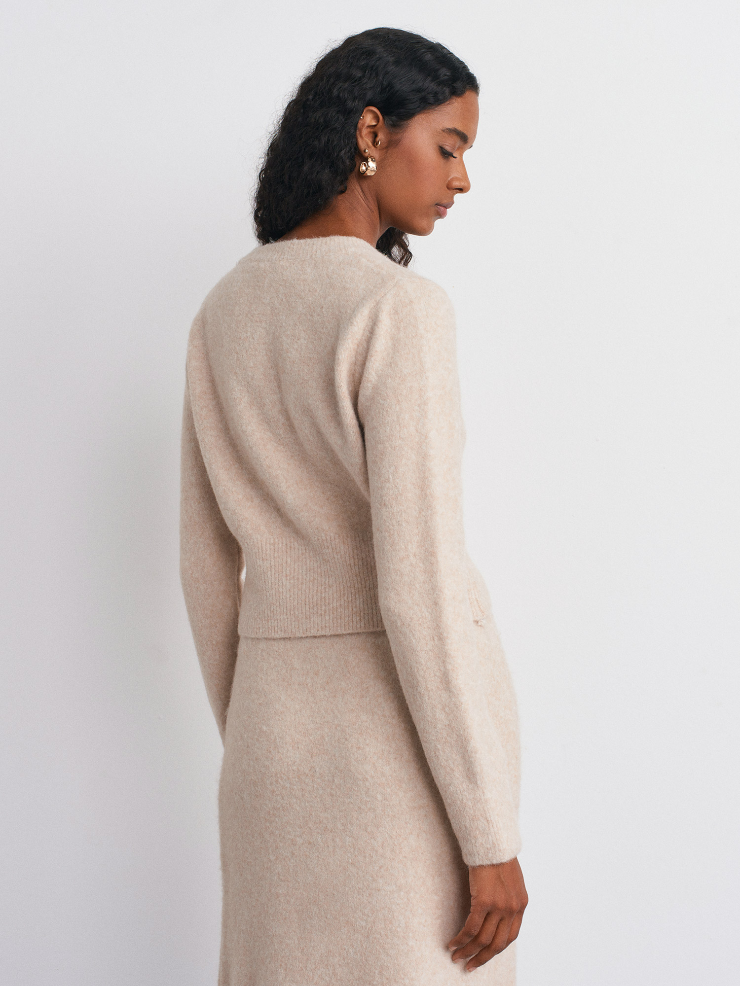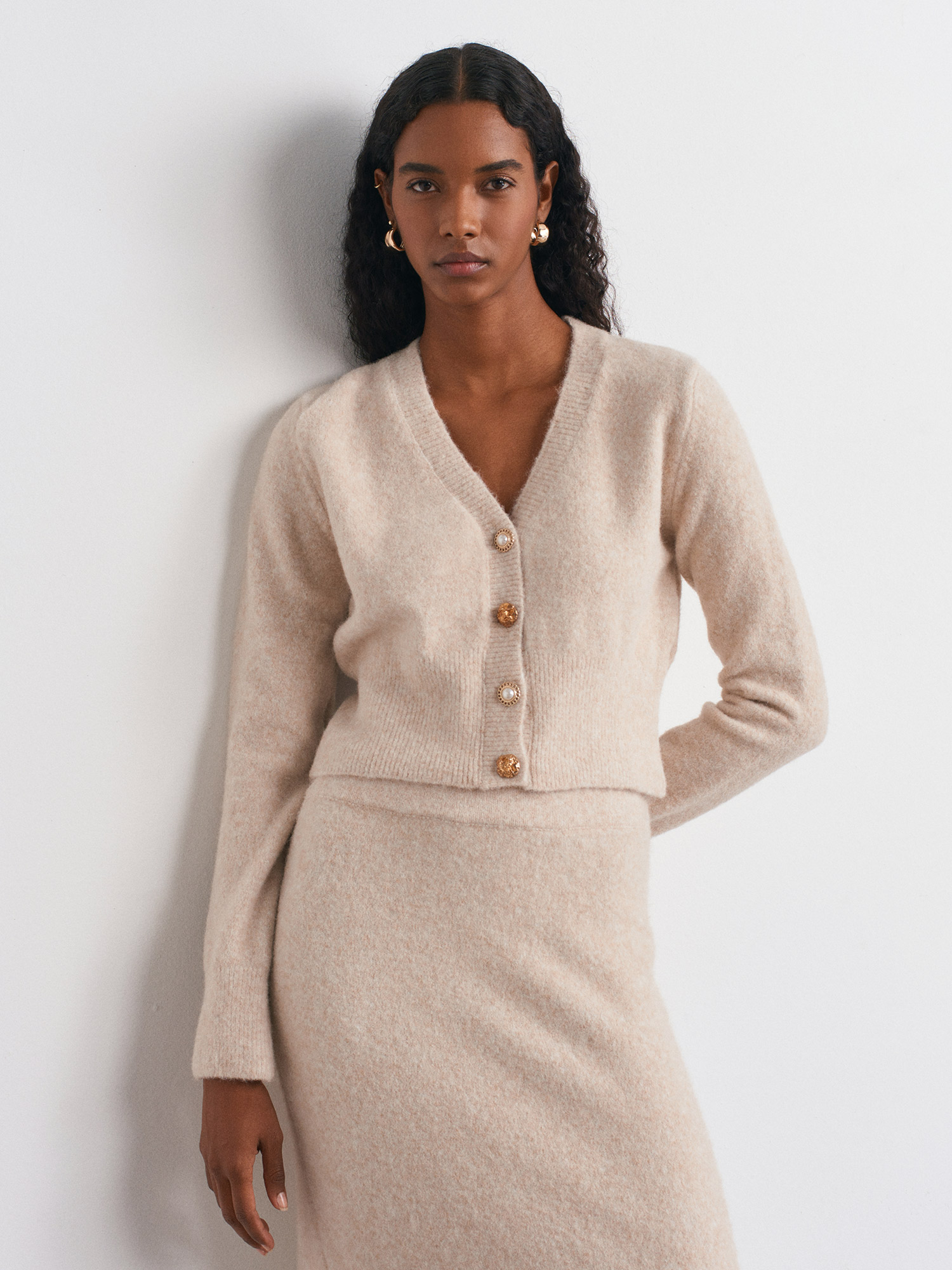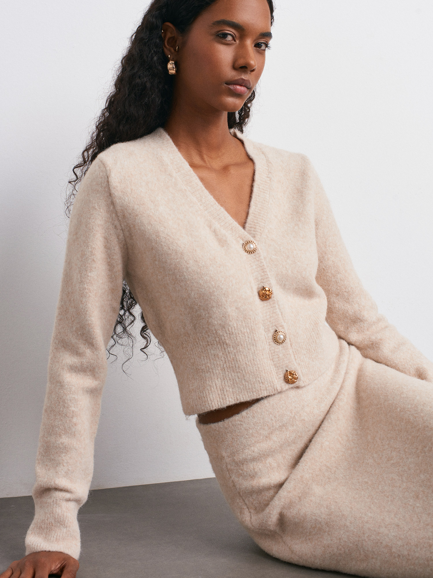 60273 Yün Karışımlı Düğmeli Triko Hırka-A.Bej Mel.