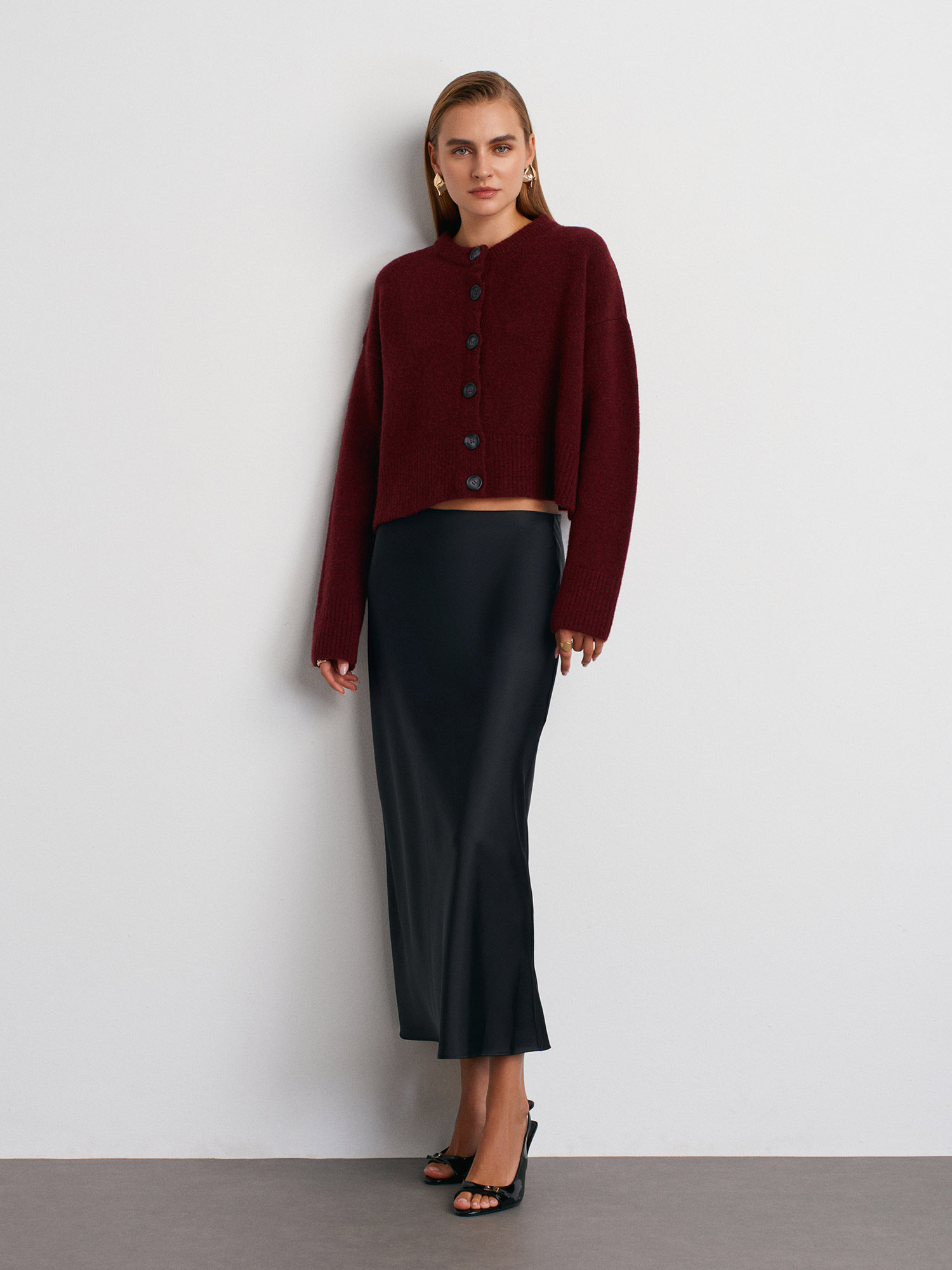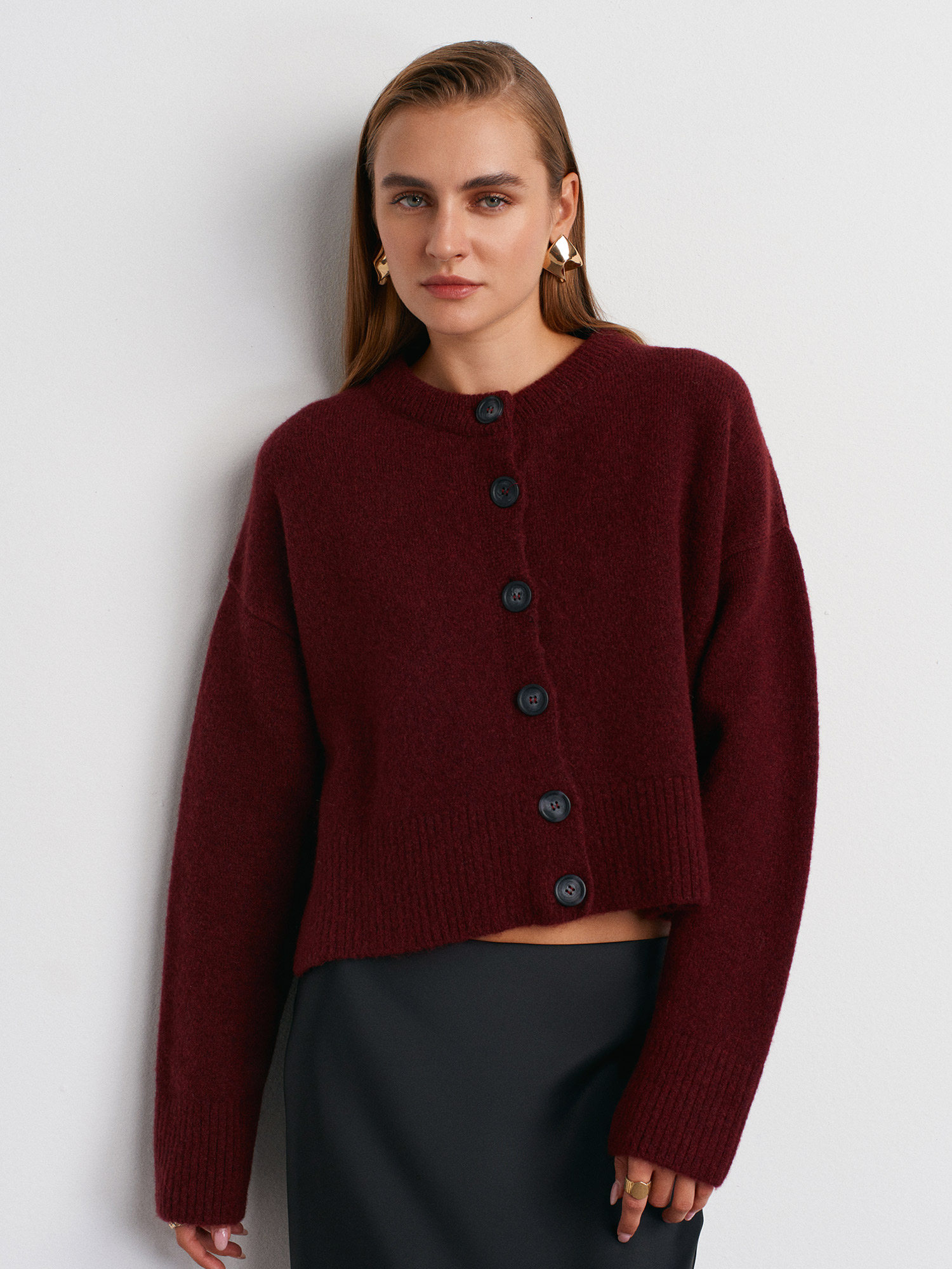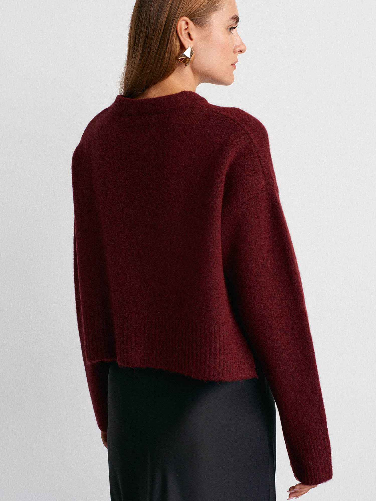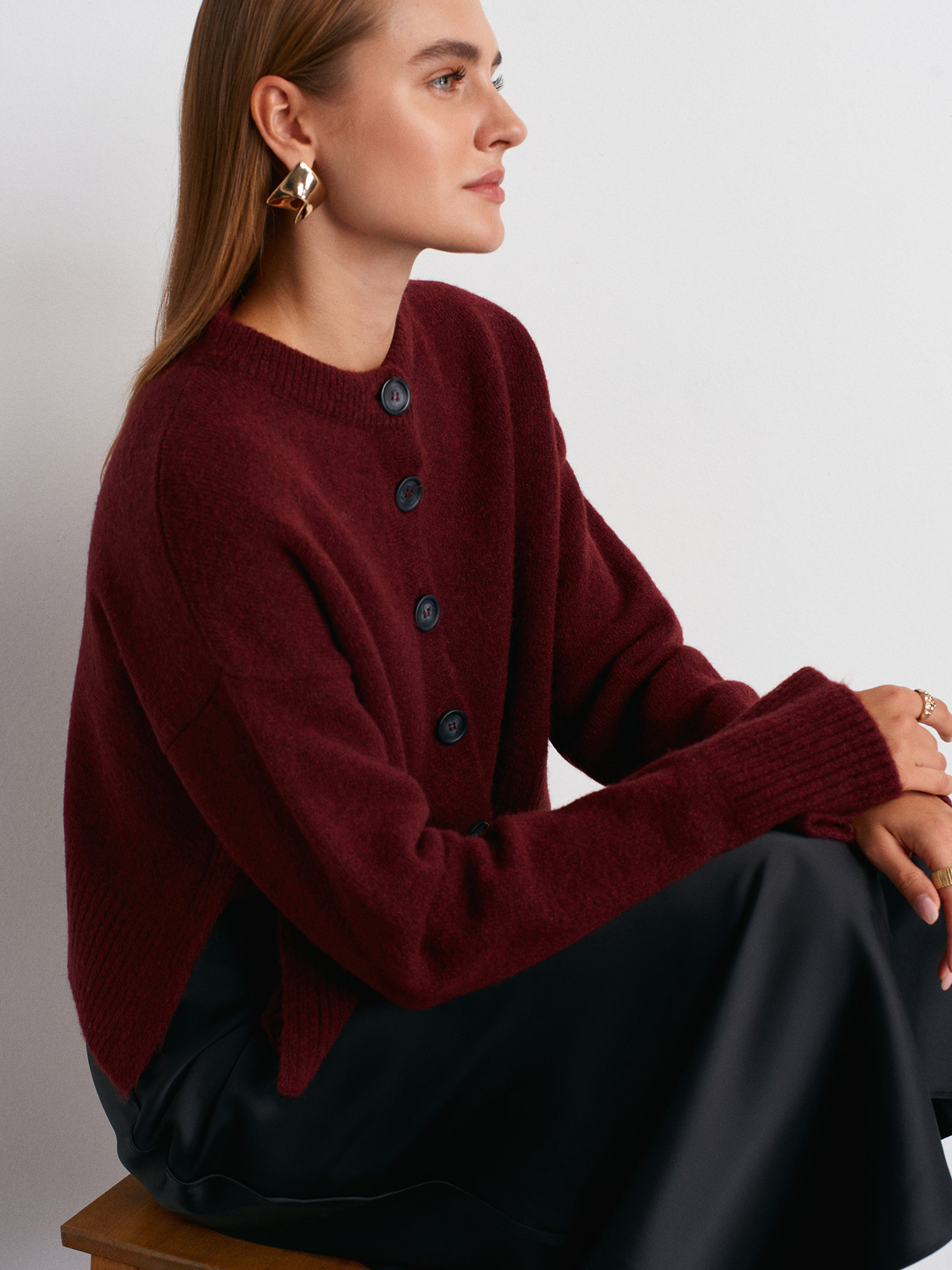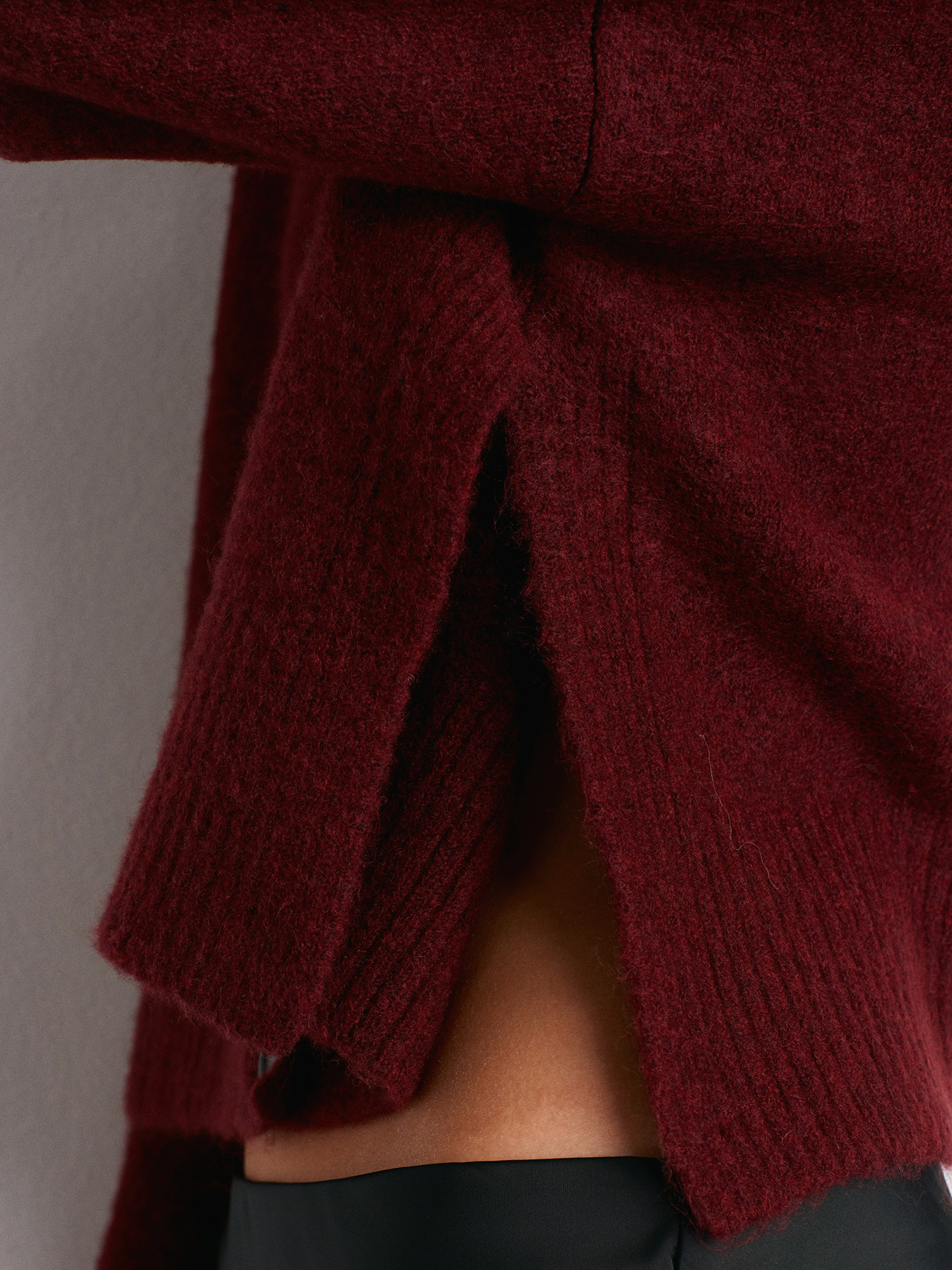 60280 Yanları Yırtmaçlı Yün Karışımlı Triko Hırka-Bordo M.
