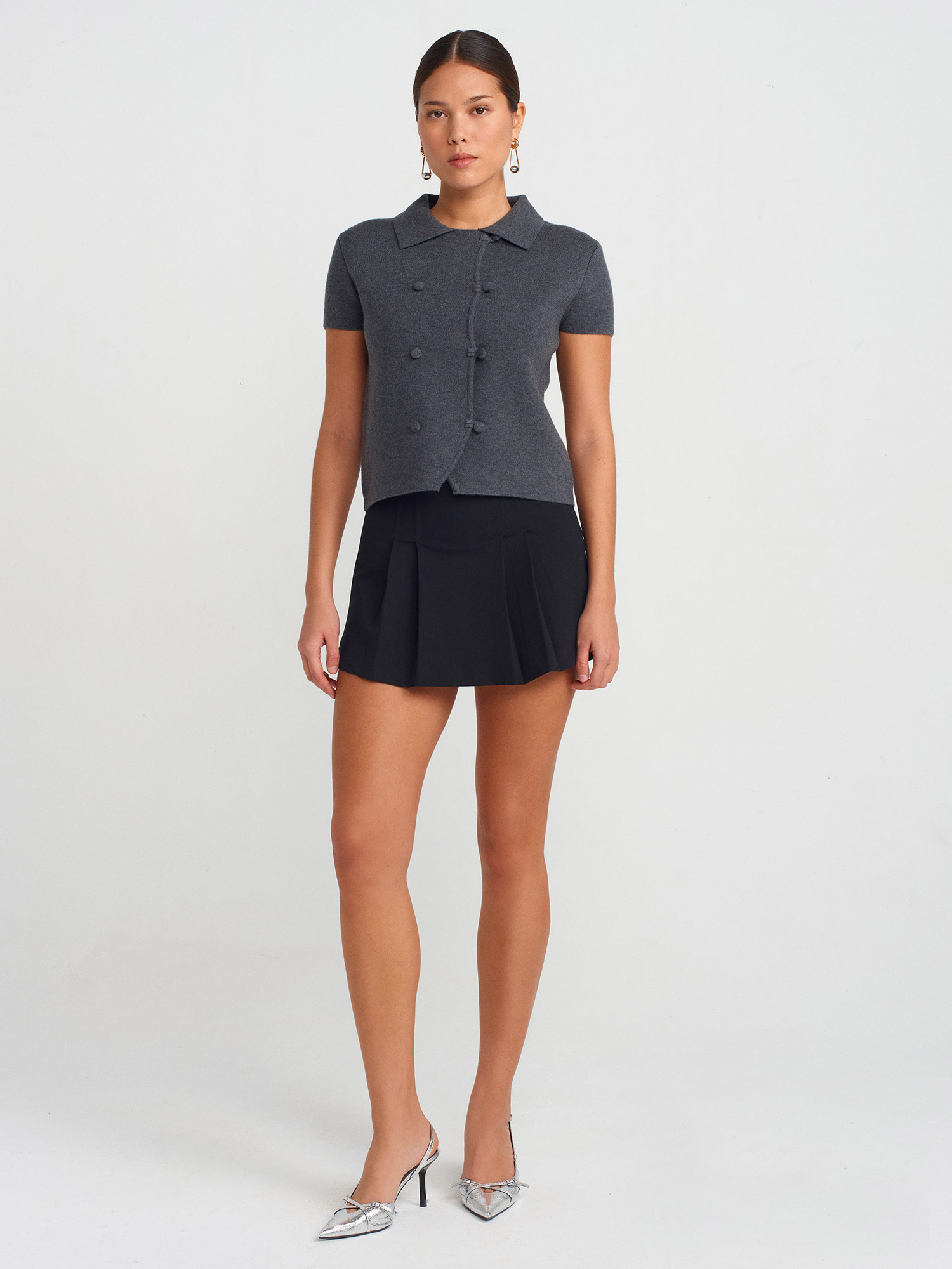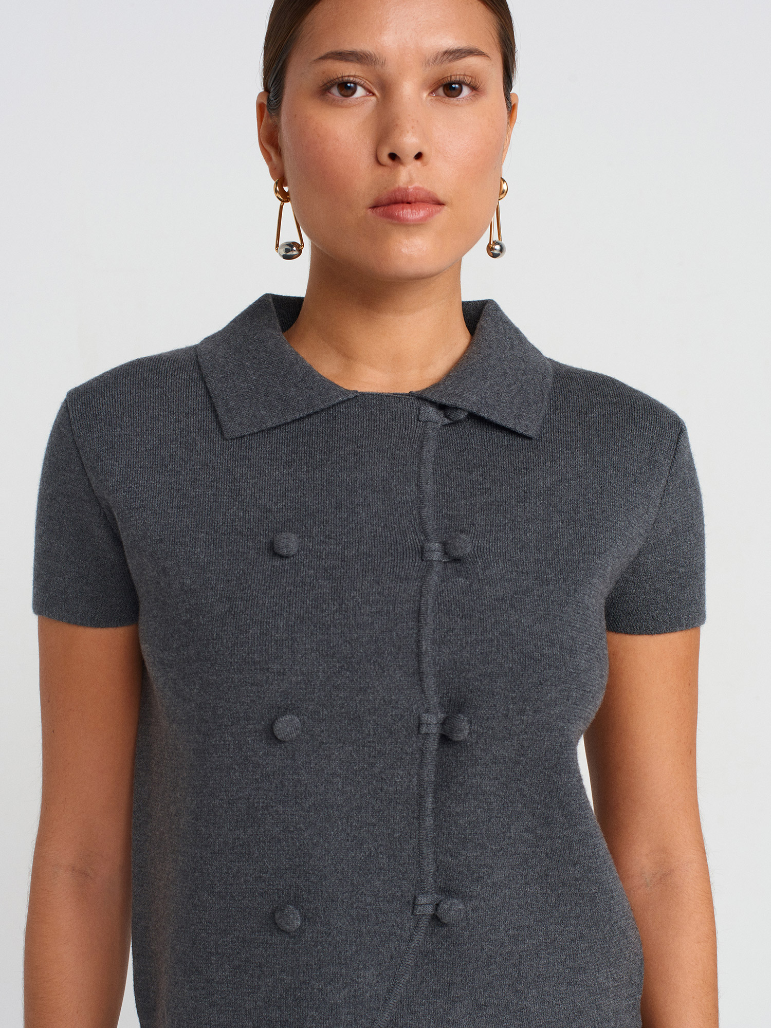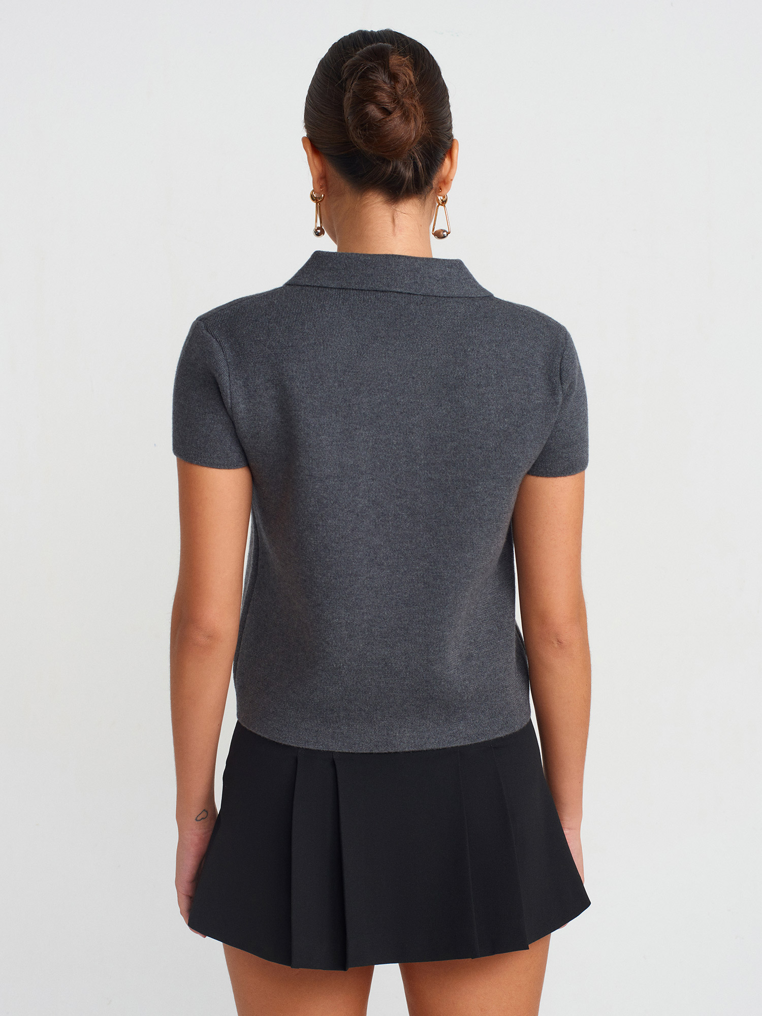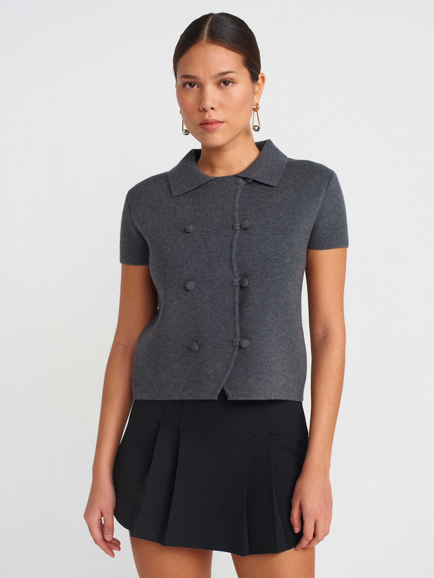 60281 Polo Yaka Düğmeli Triko Hırka-Füme M.