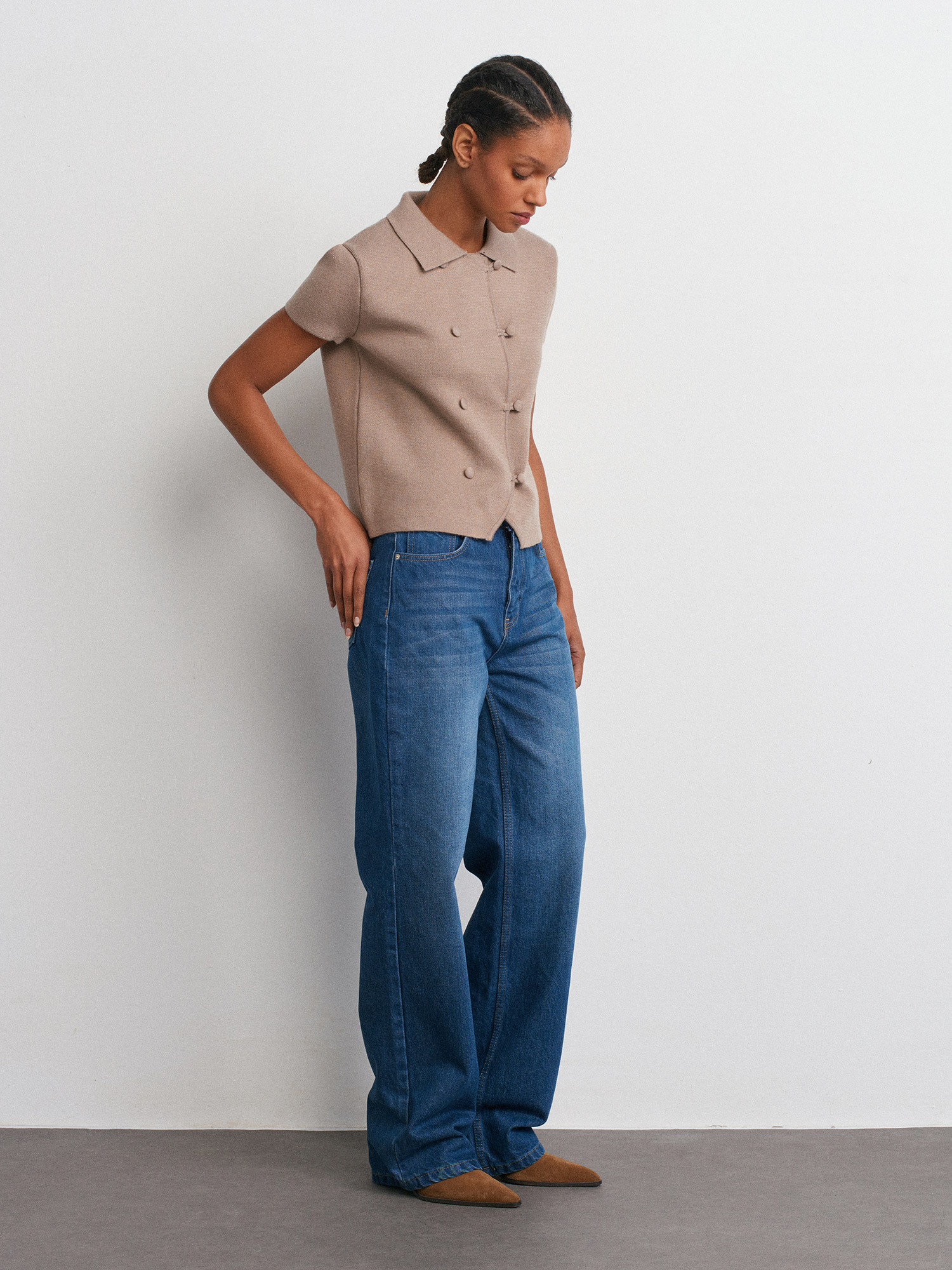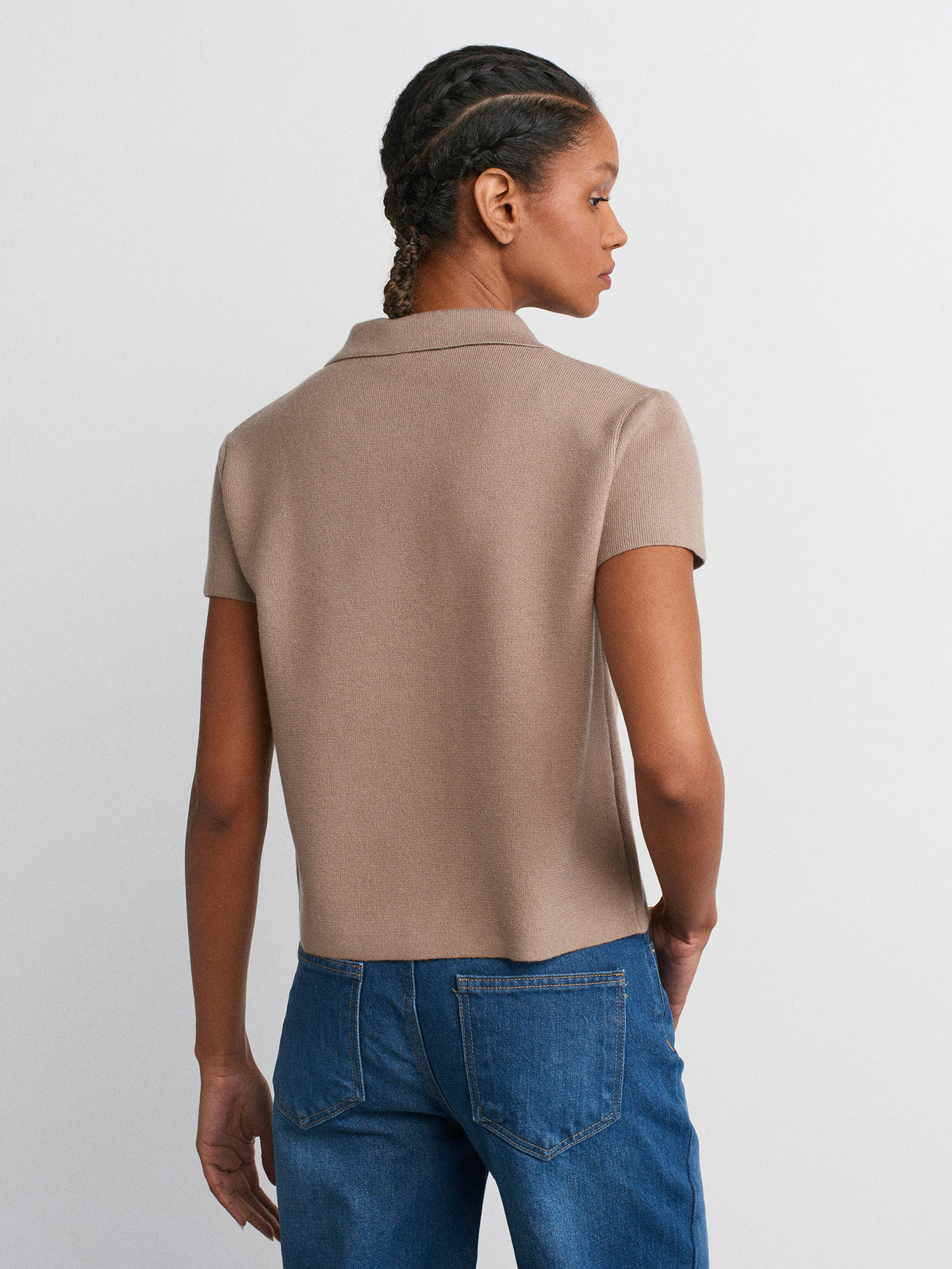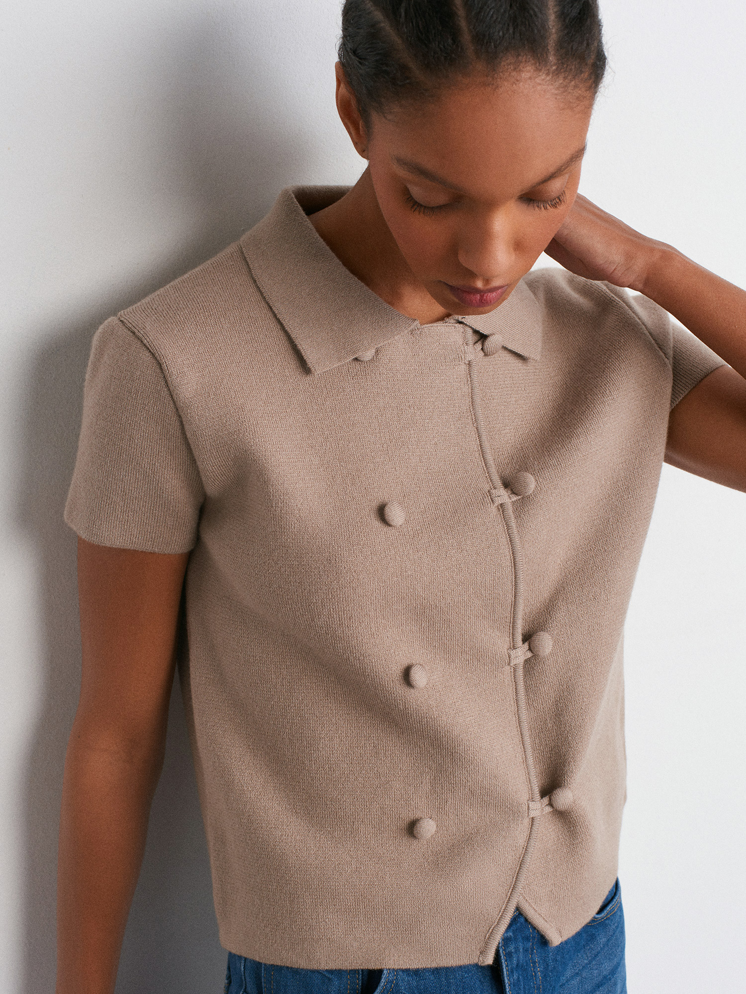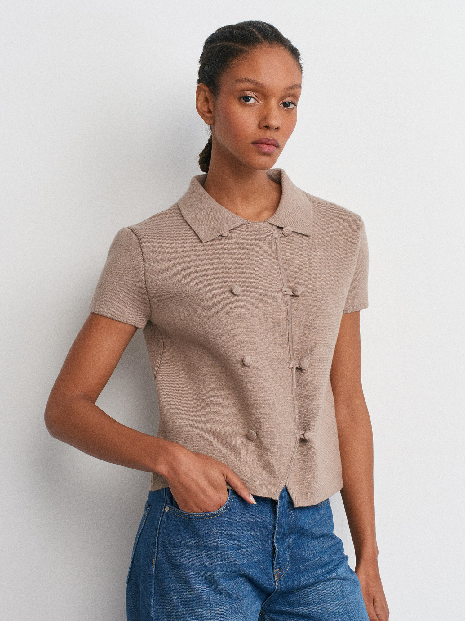 60281 Polo Yaka Düğmeli Triko Hırka-Koyu Vizon