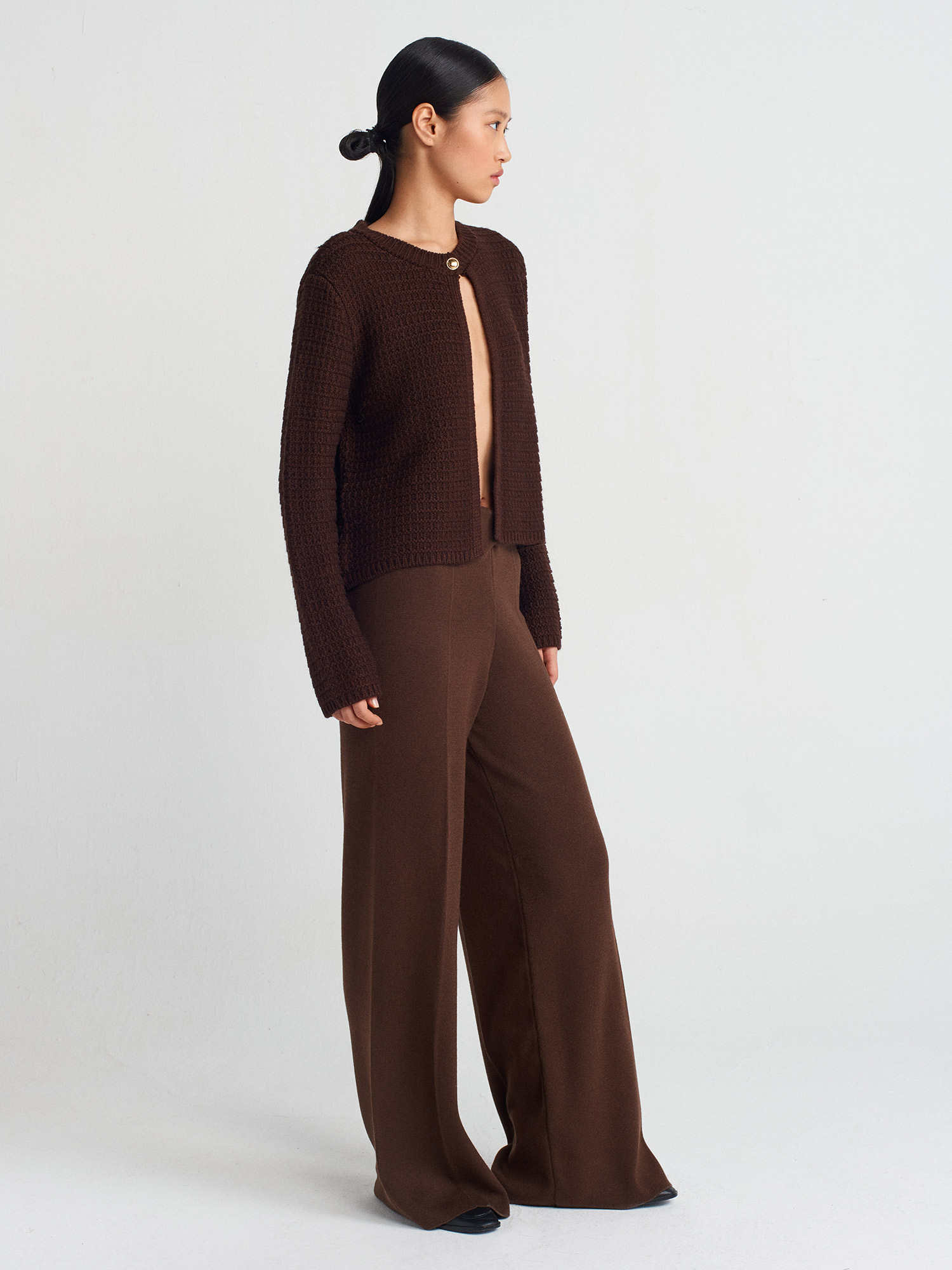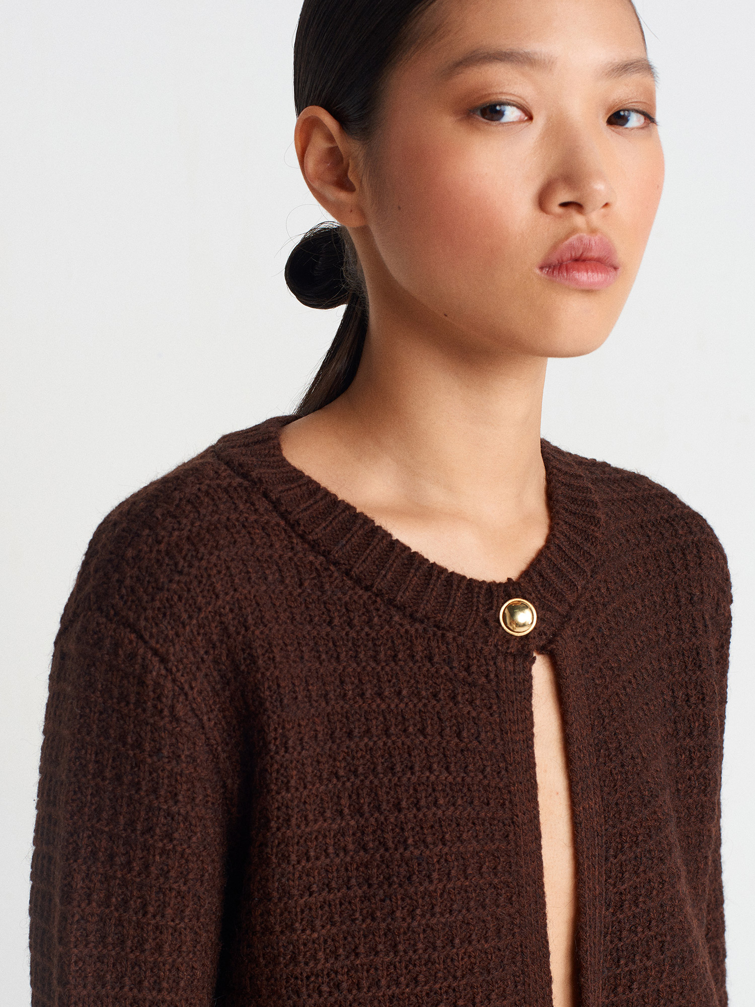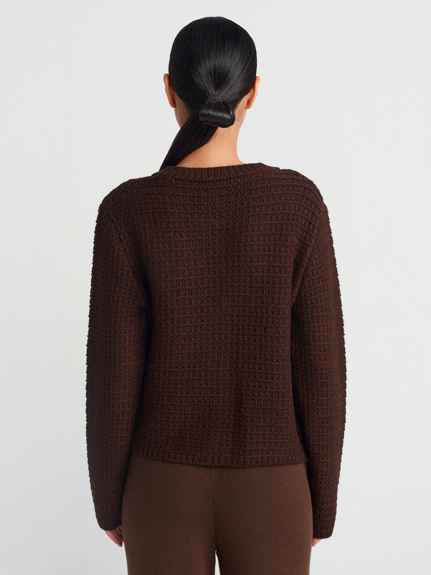 60298 Bisiklet Yaka Düğmeli Triko Hırka-Kahve