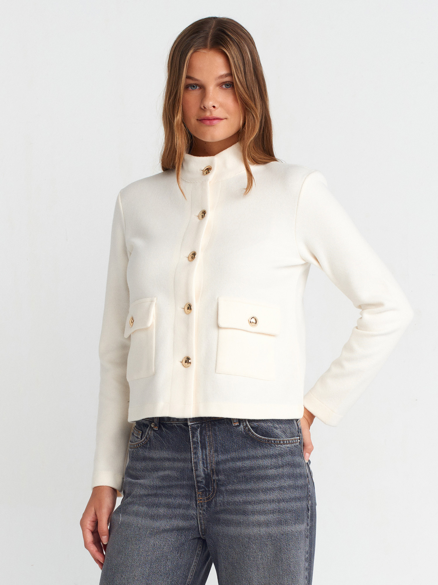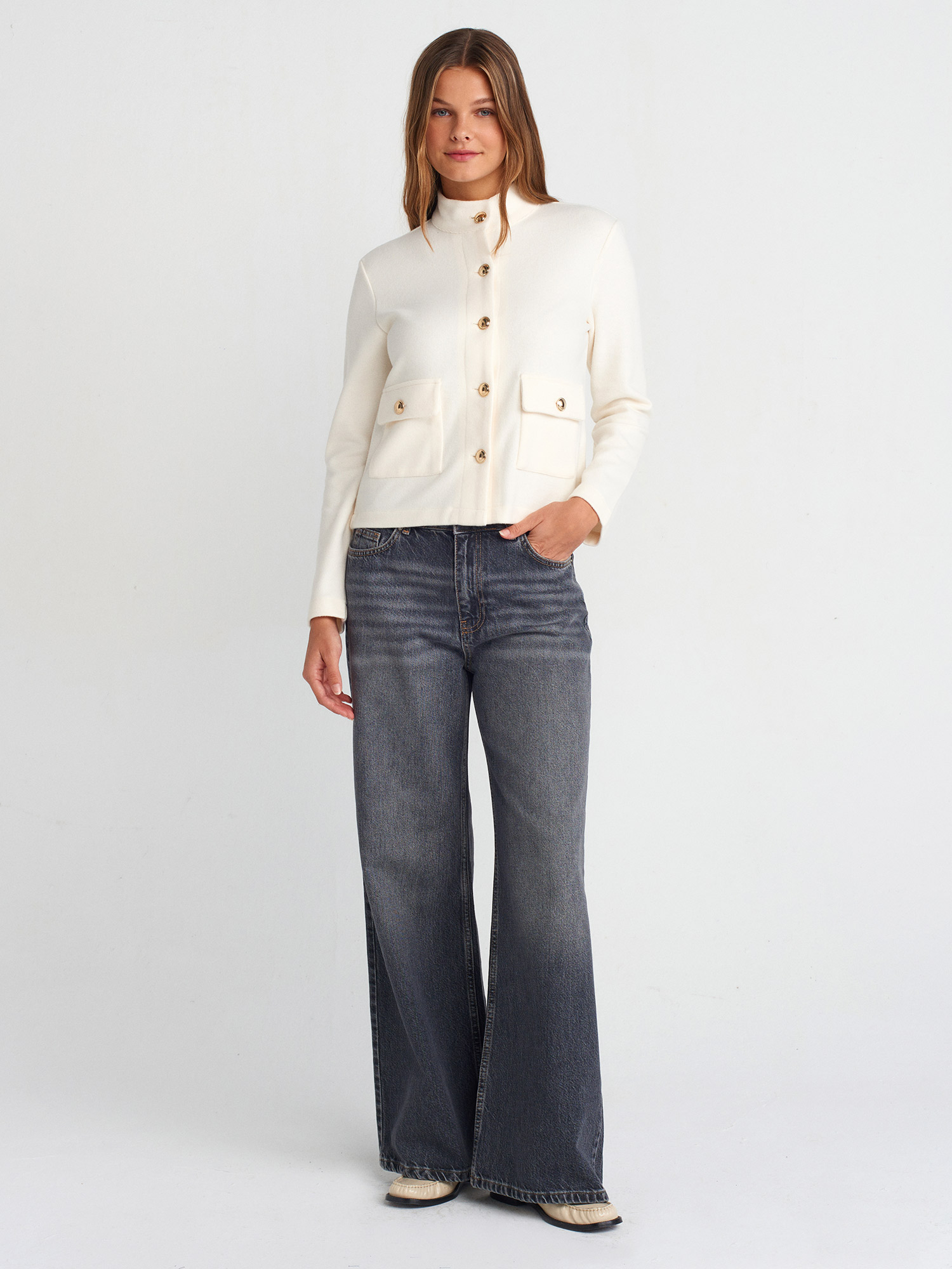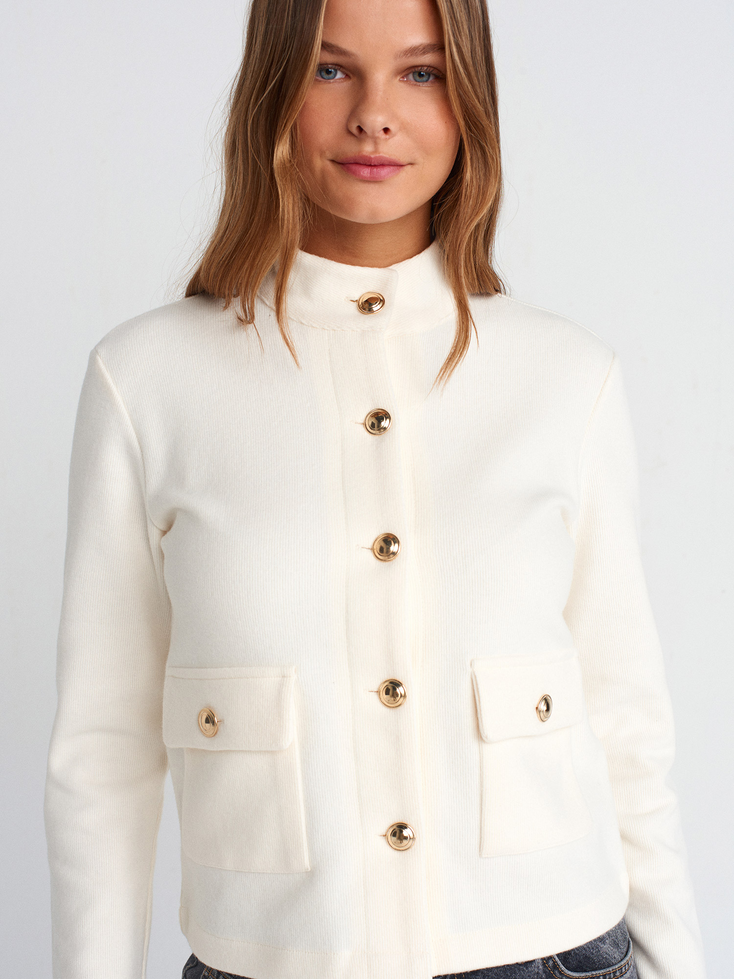 60406 Düğme Detaylı Selanik Hırka-Ekru