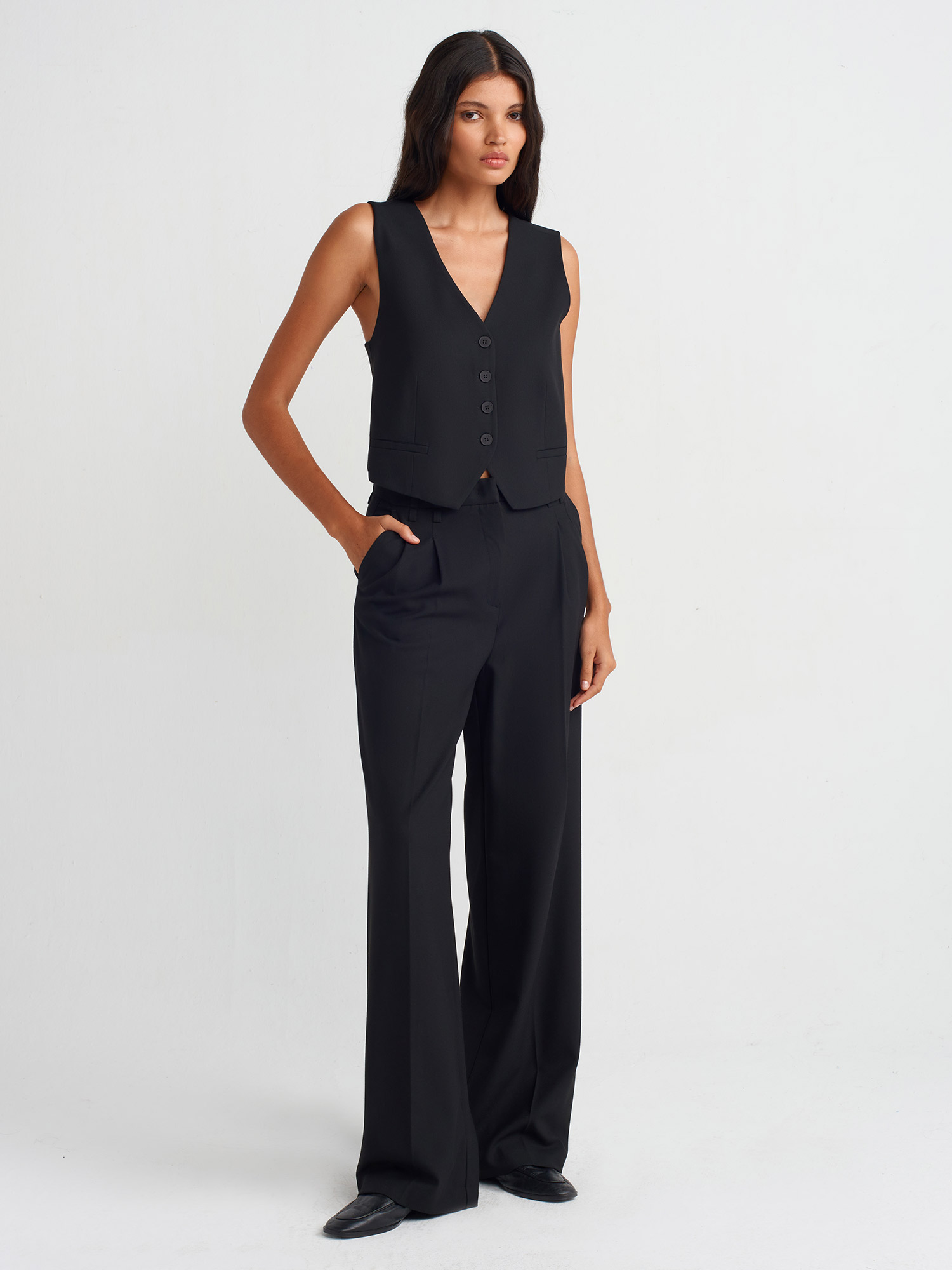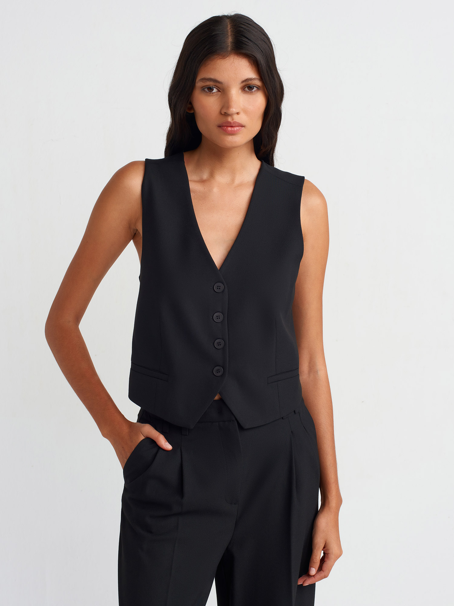 60545 Sırt Detaylı Blazer Yelek-Siyah