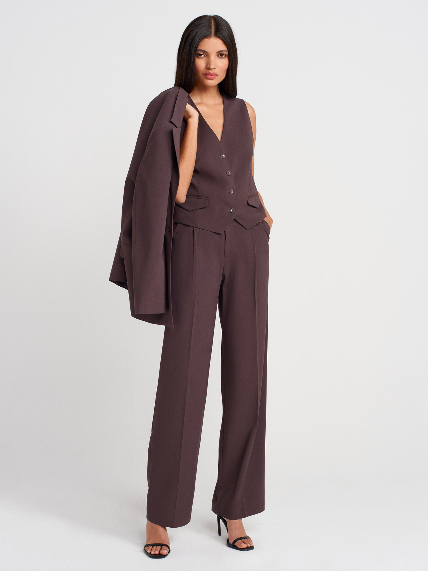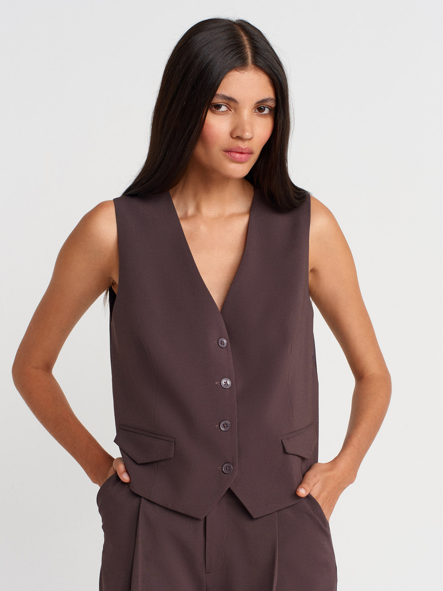 60582 Kontrast Sırtlı Yelek-Kahve