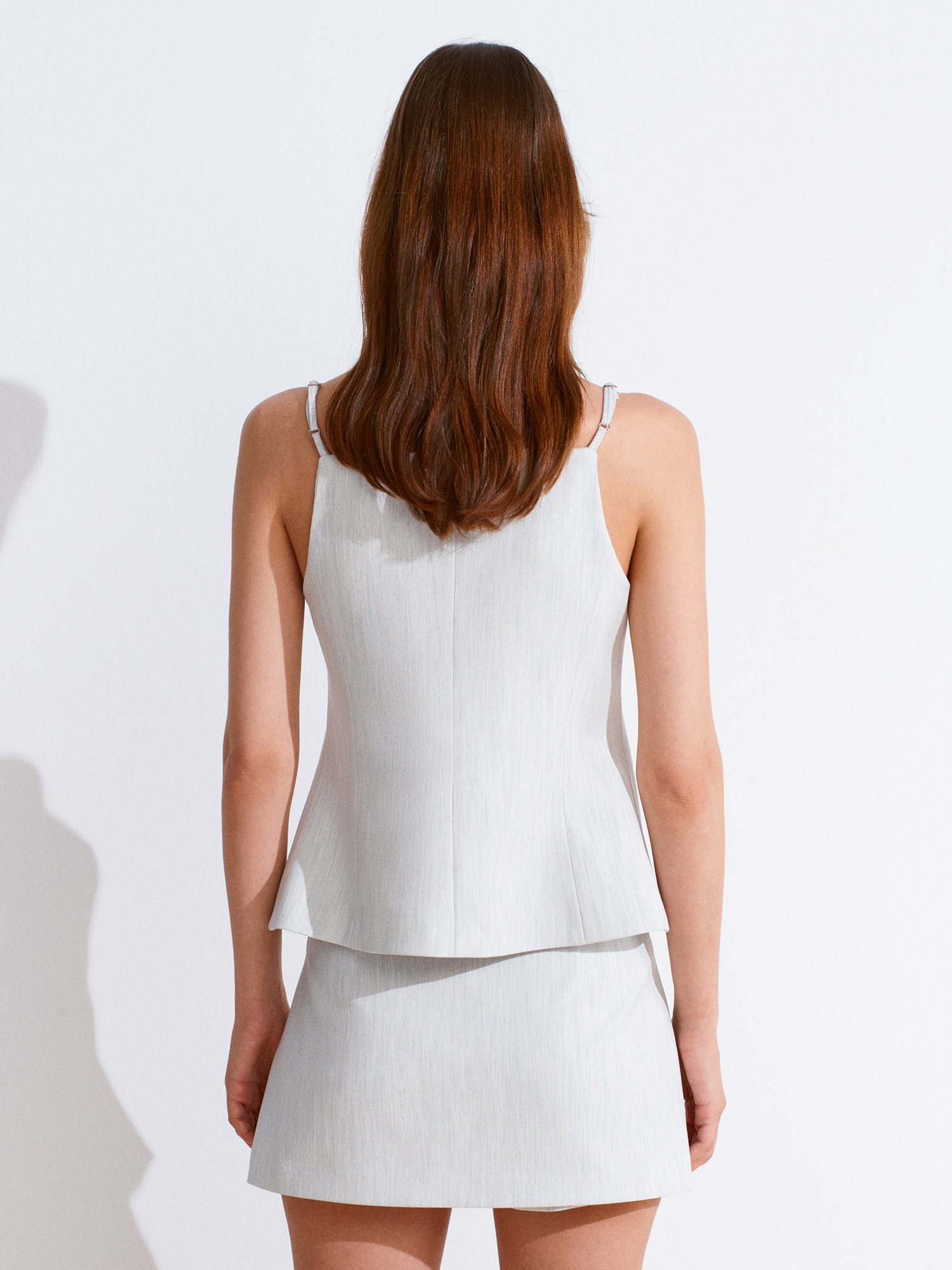 60585 Askılı Asimetrik Kesim Top-Açık Gri