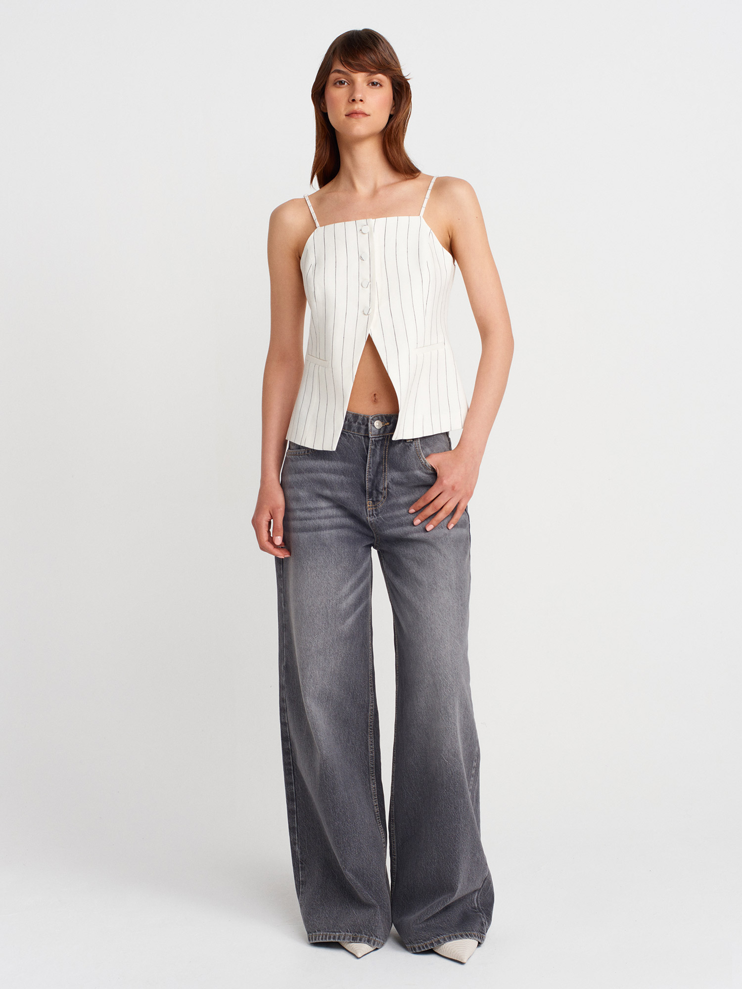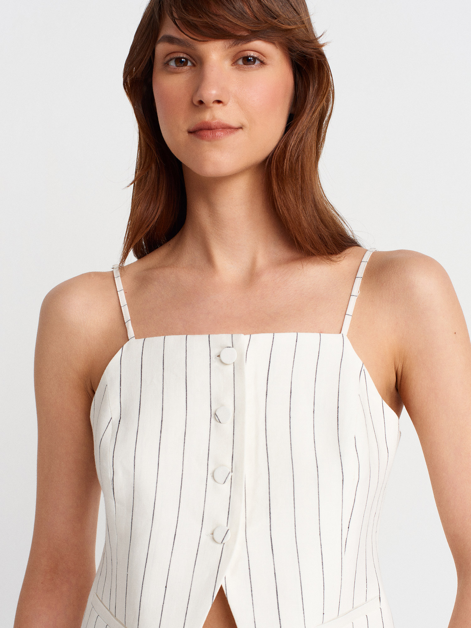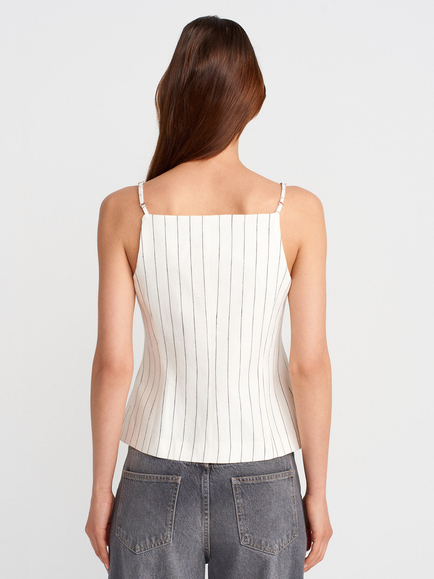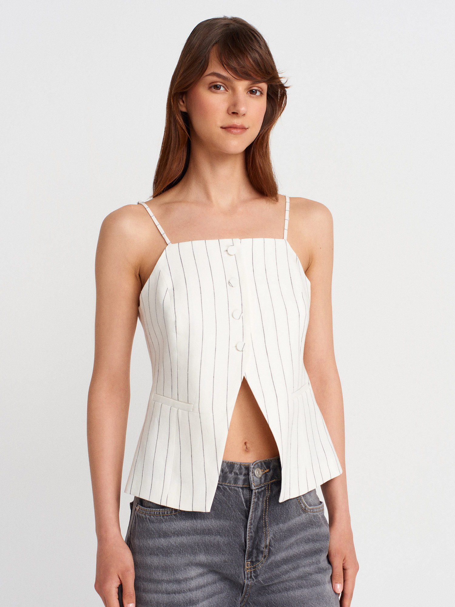 60585 Askılı Asimetrik Kesim Top-Beyaz