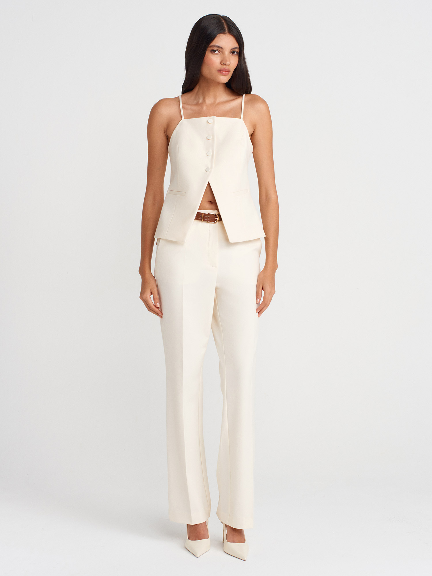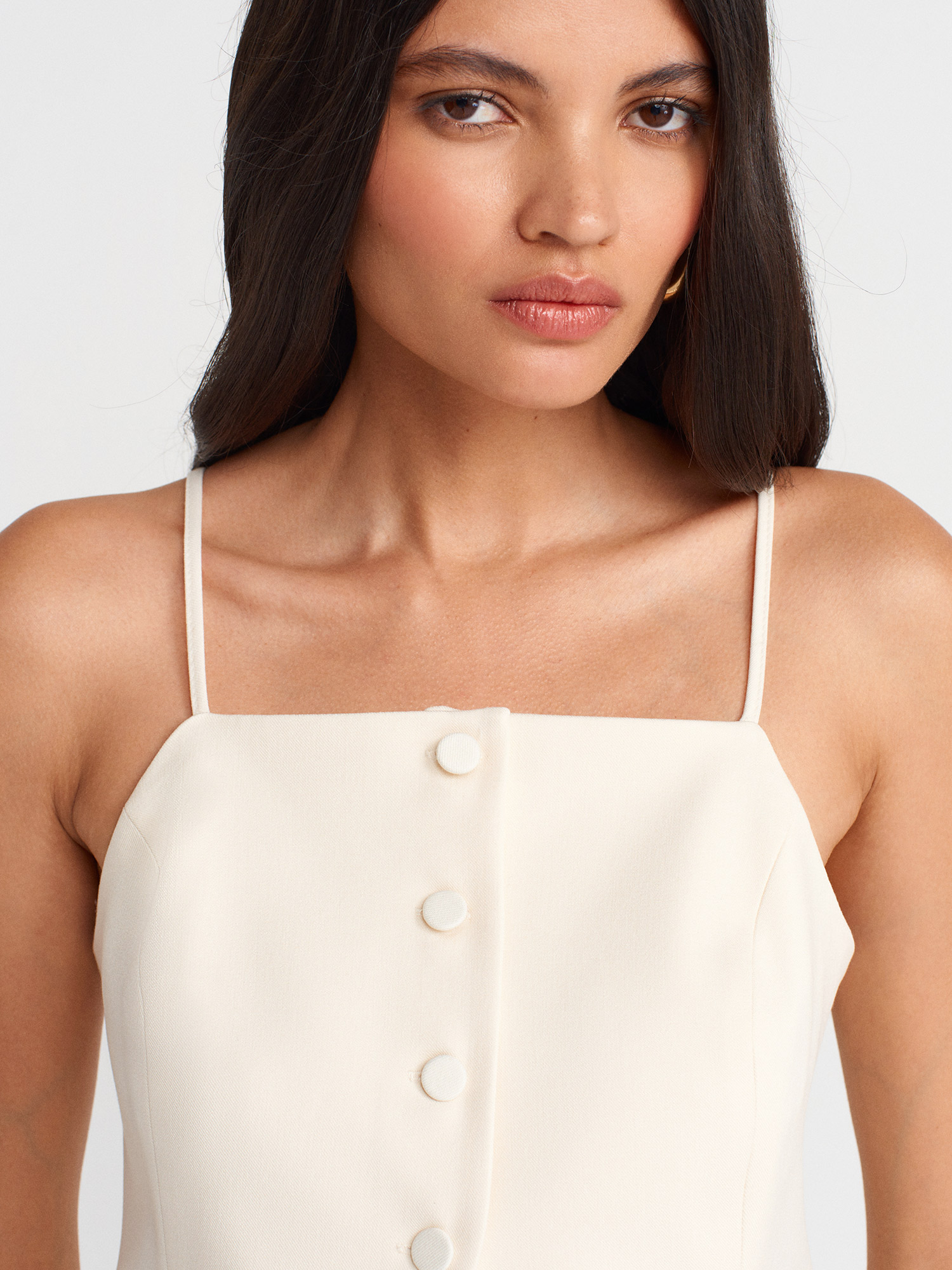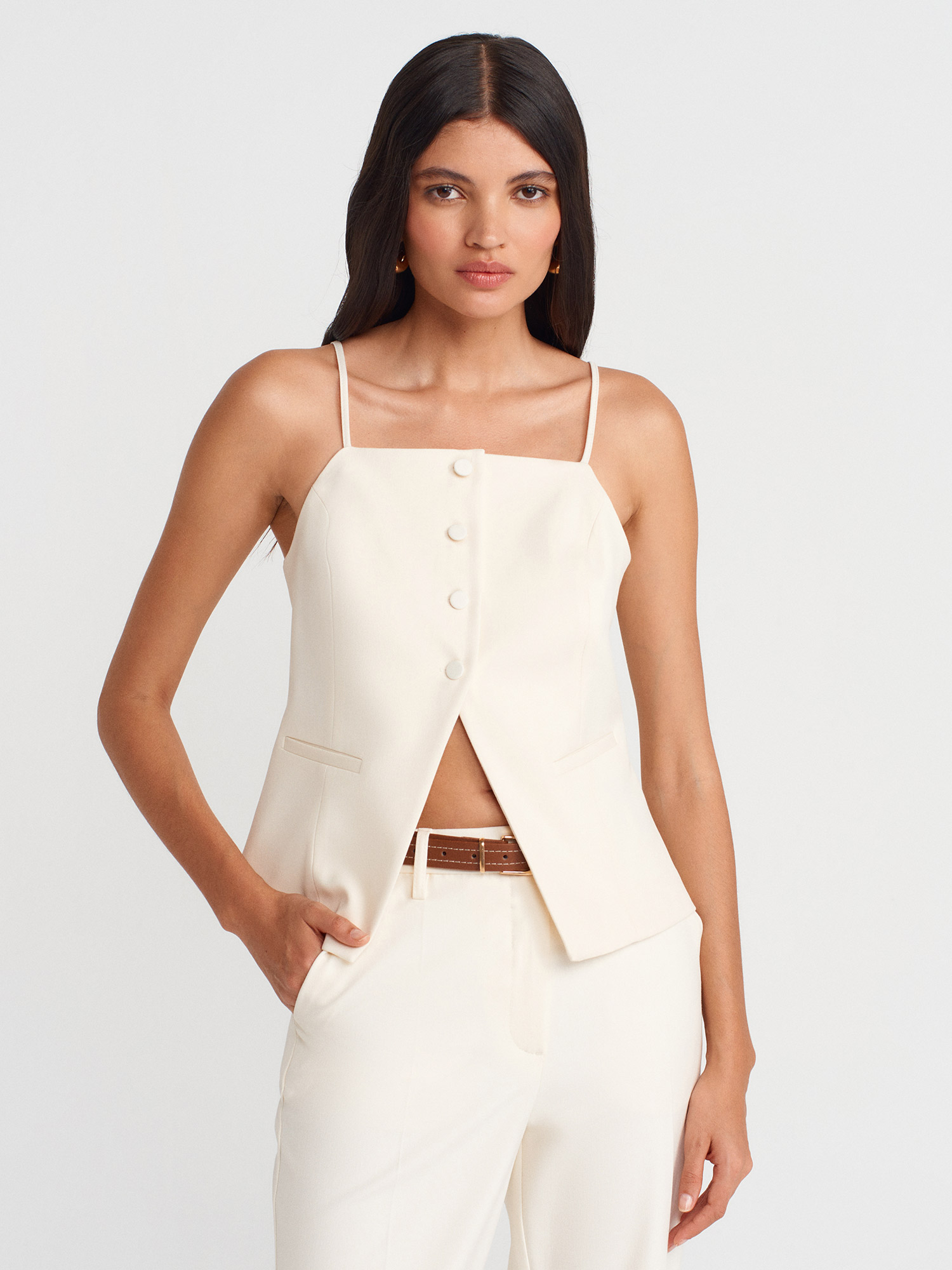 60585 Askılı Asimetrik Kesim Top-Ekru
