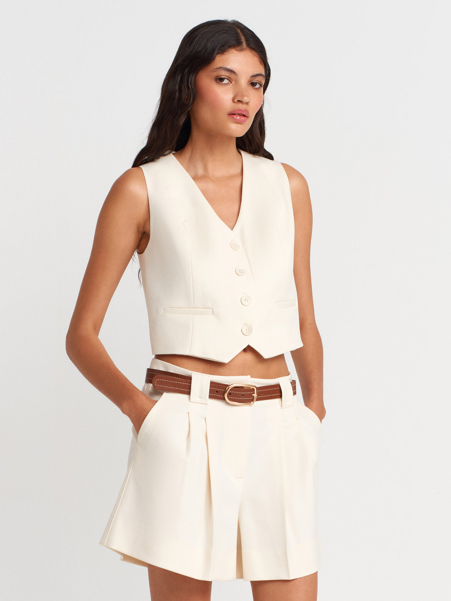60587 Kısa Özel Dikim Yelek-Beyaz