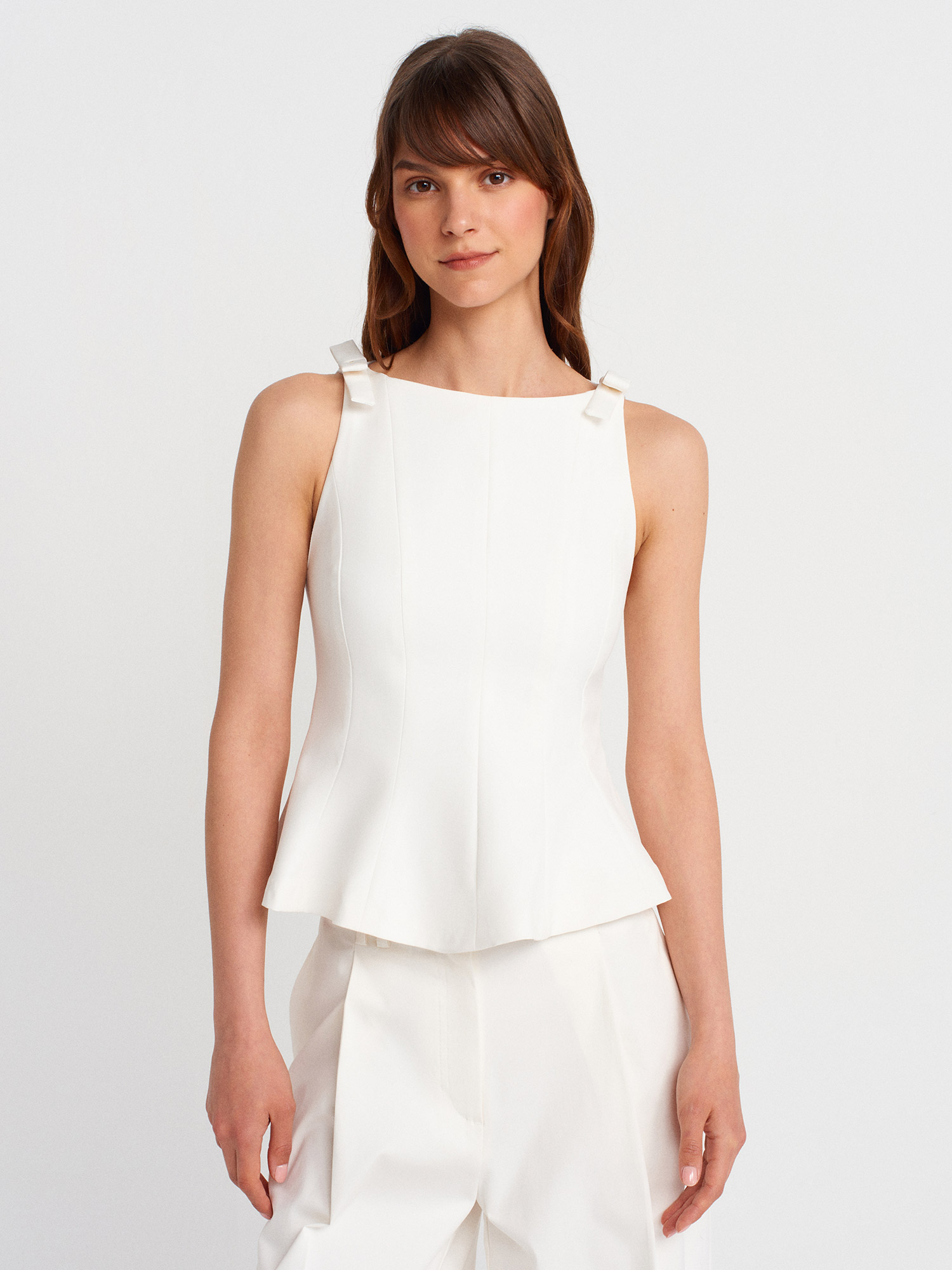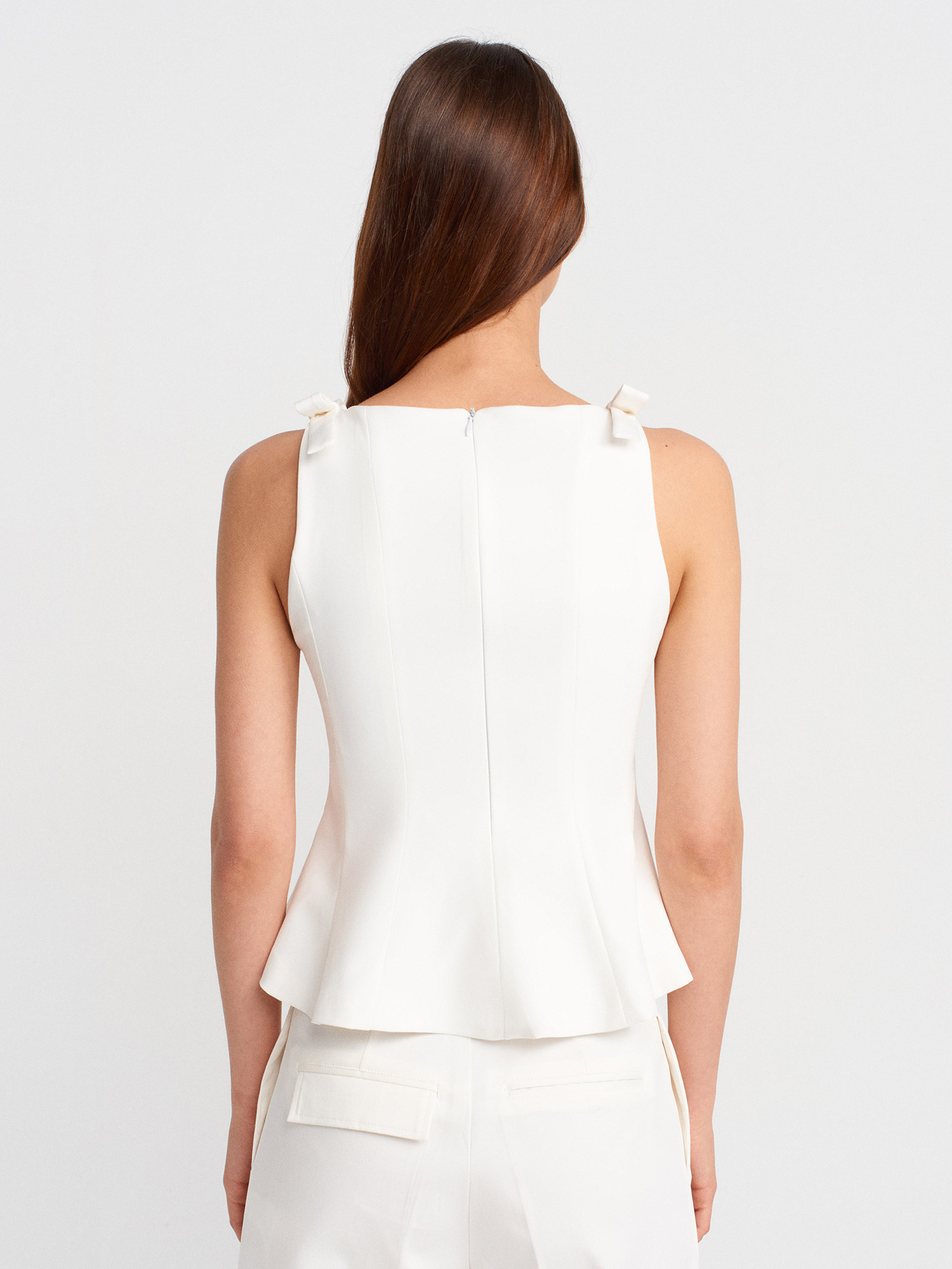 60588 Fiyonk Detaylı Top Yelek-Beyaz
