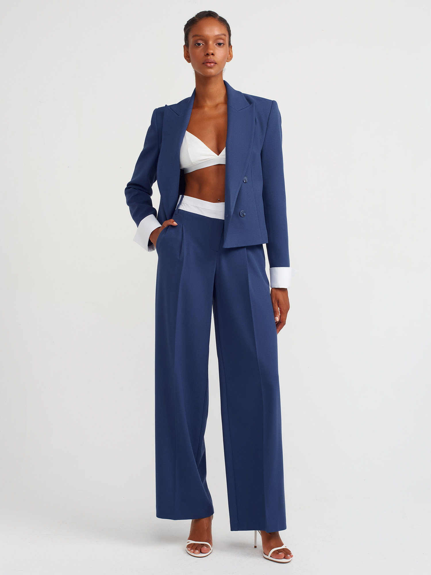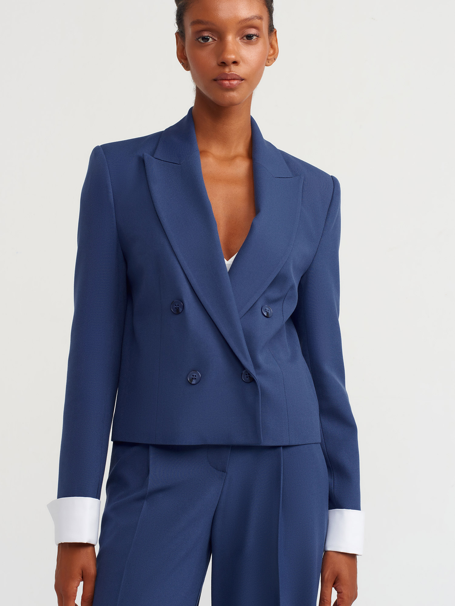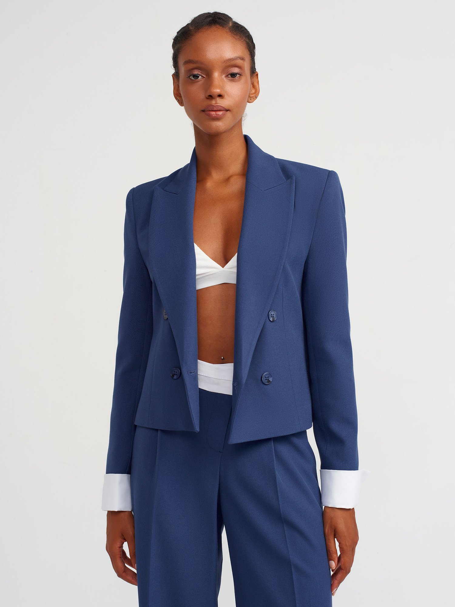60740 Kontras Manşetli Blazer Ceket-İndigo