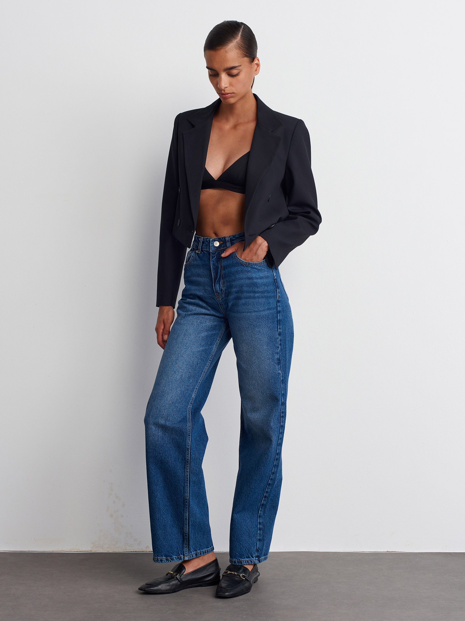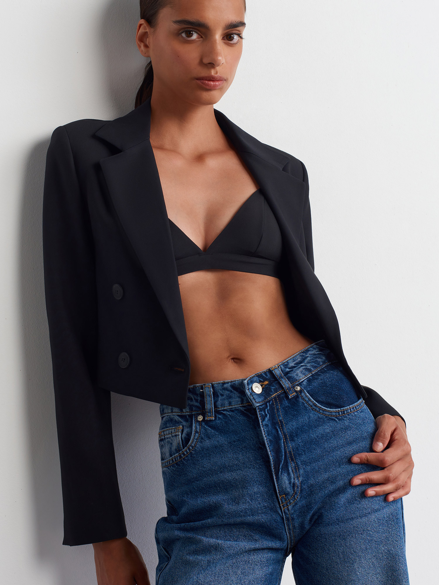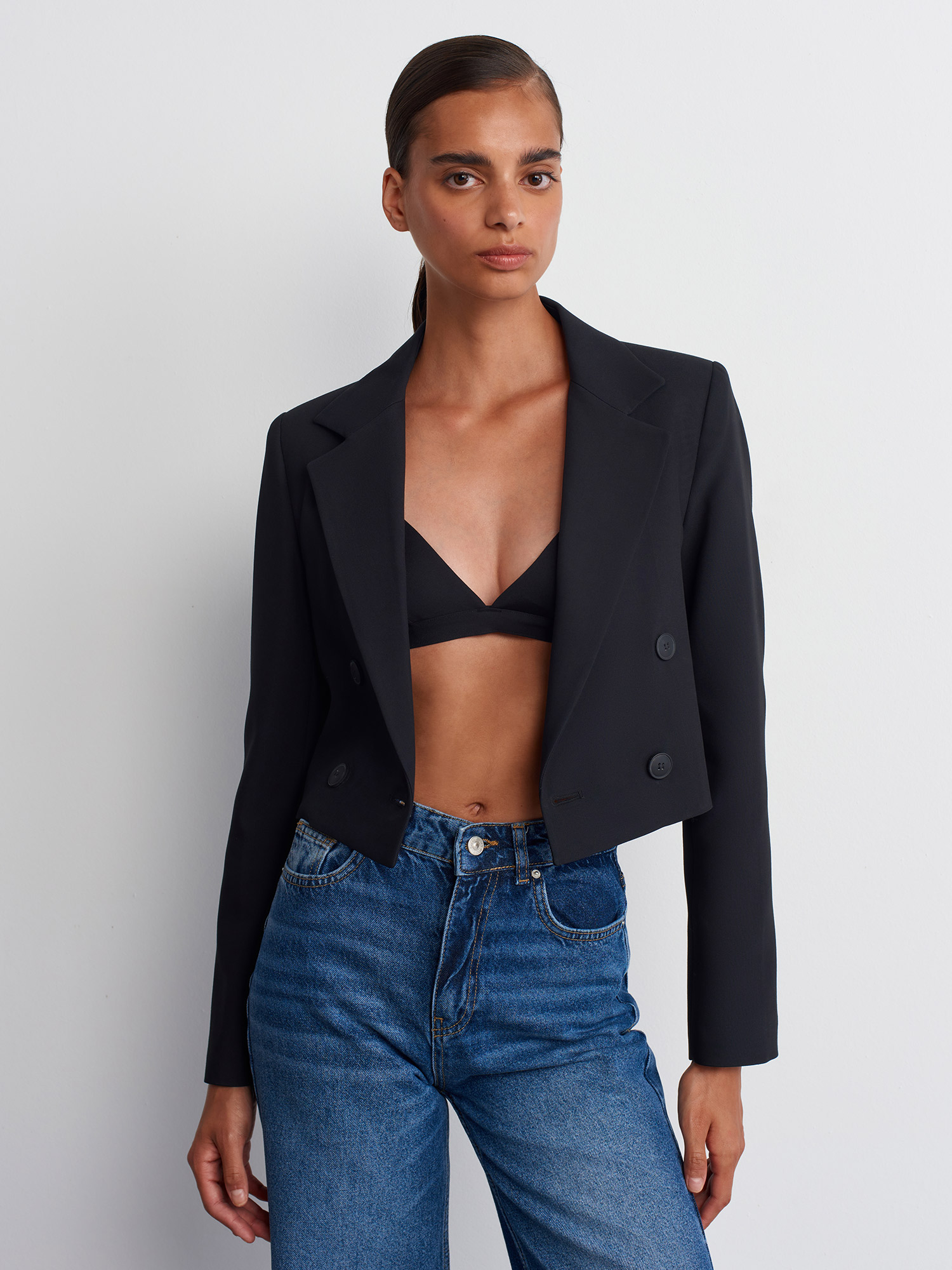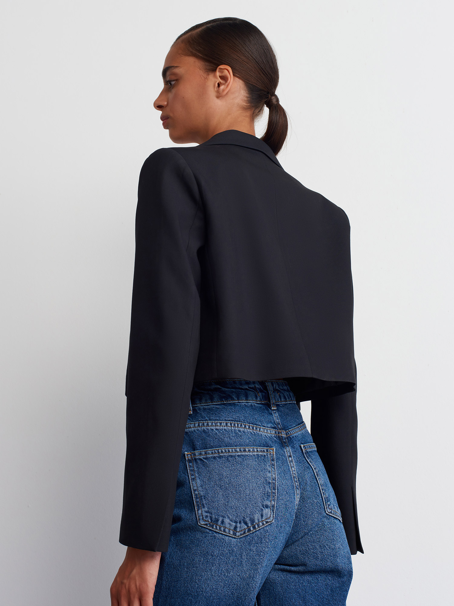 60742 Kruvaze Düğmeli Crop Blazer-Siyah