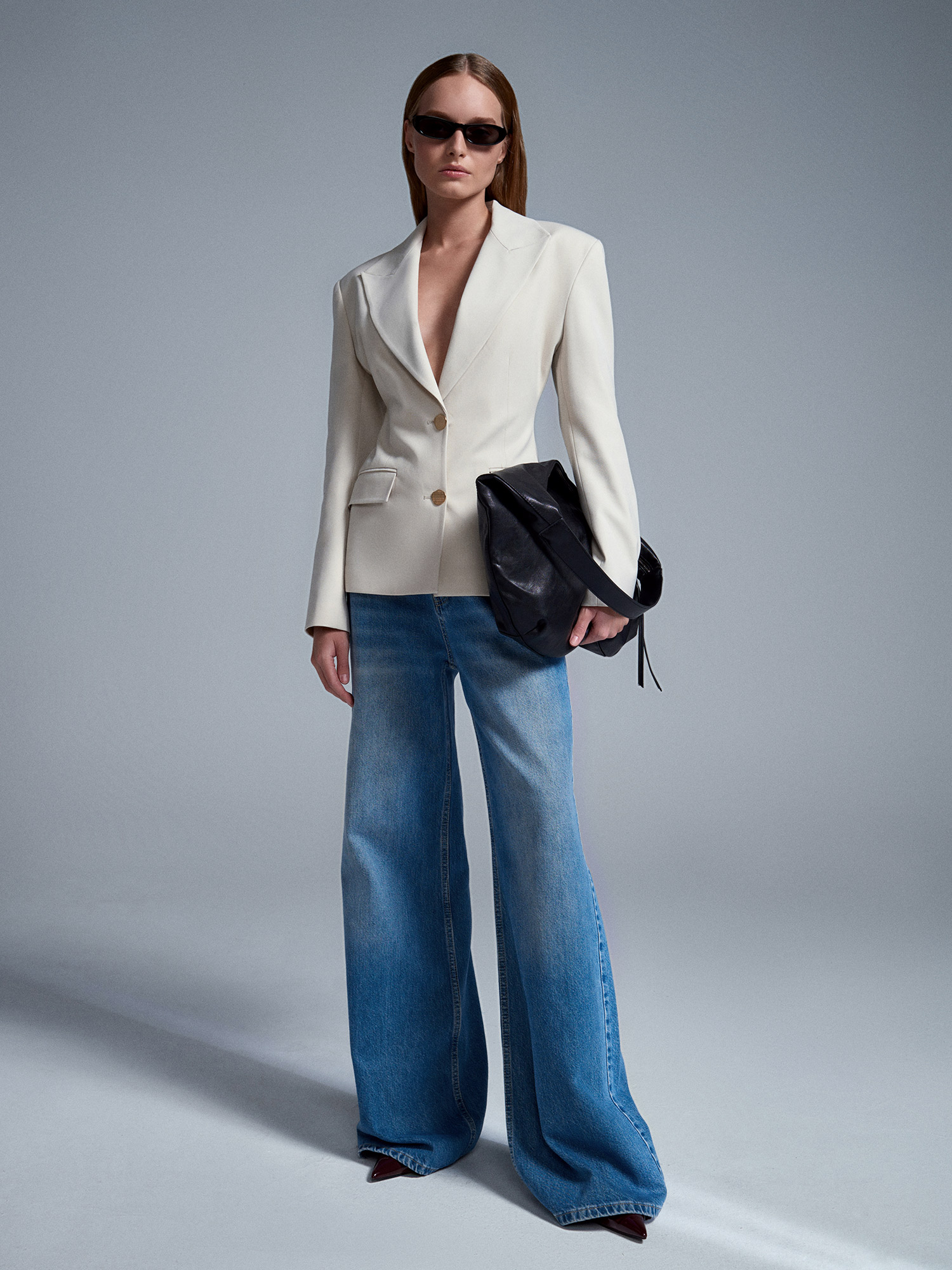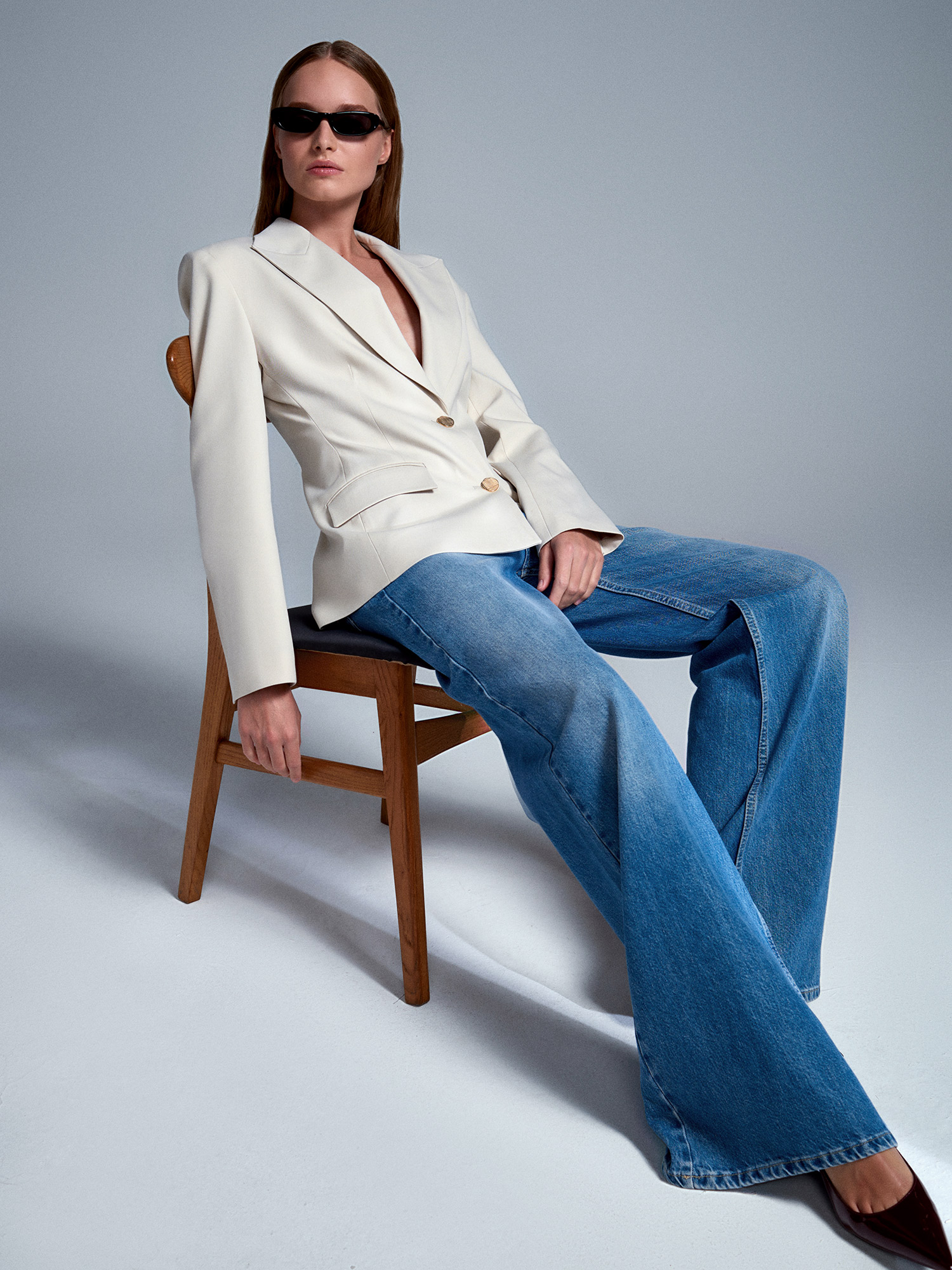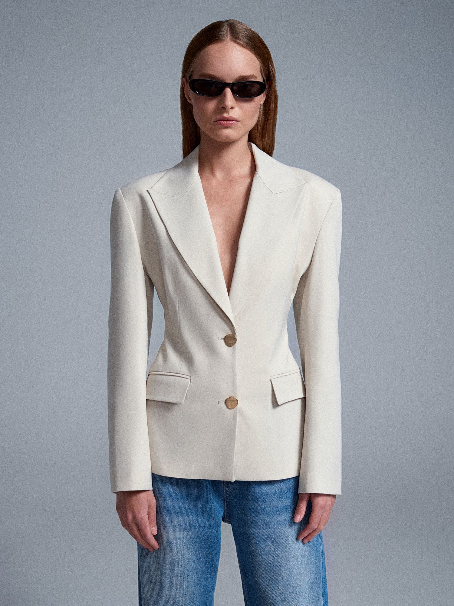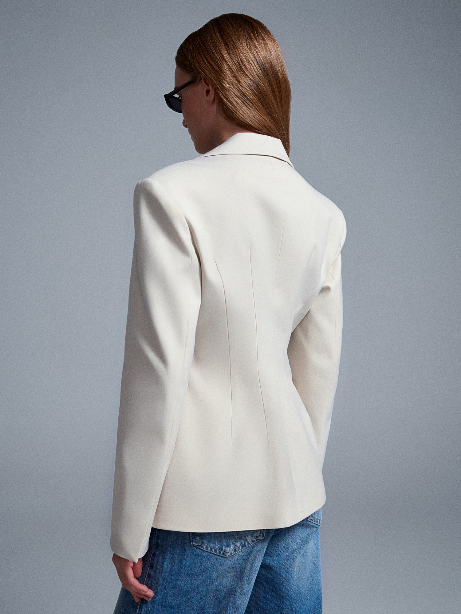 60774 Fitted Kesim Vatkalı Blazer-Ekru