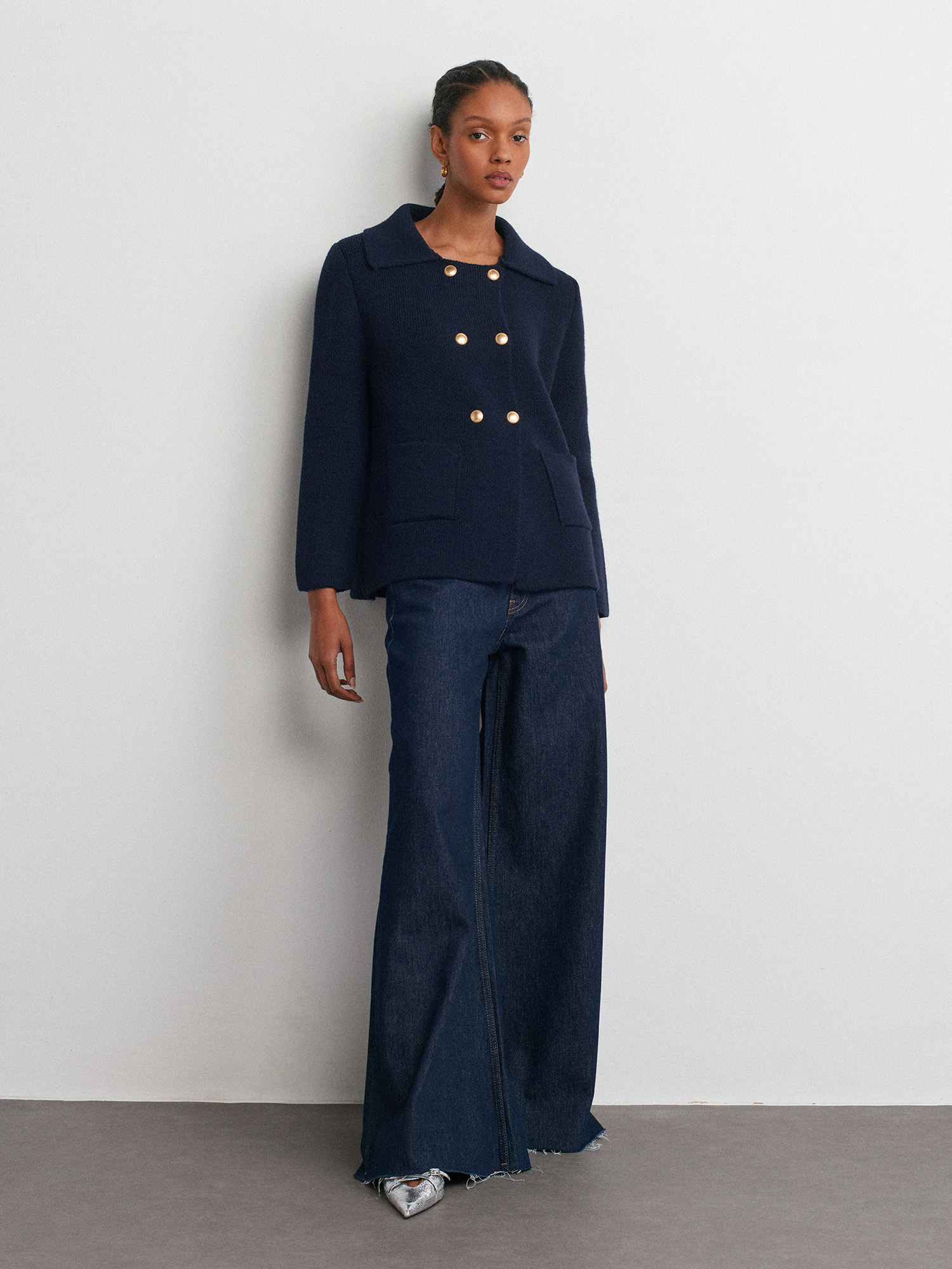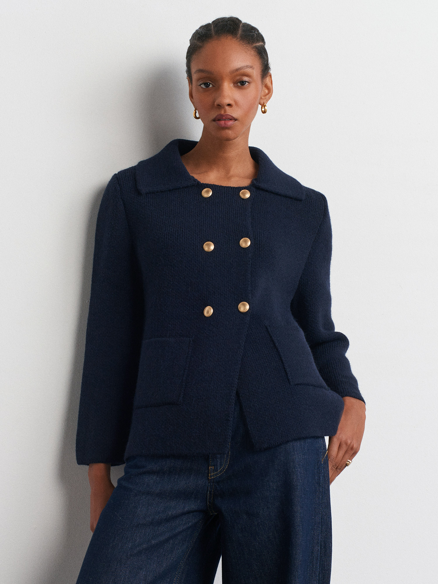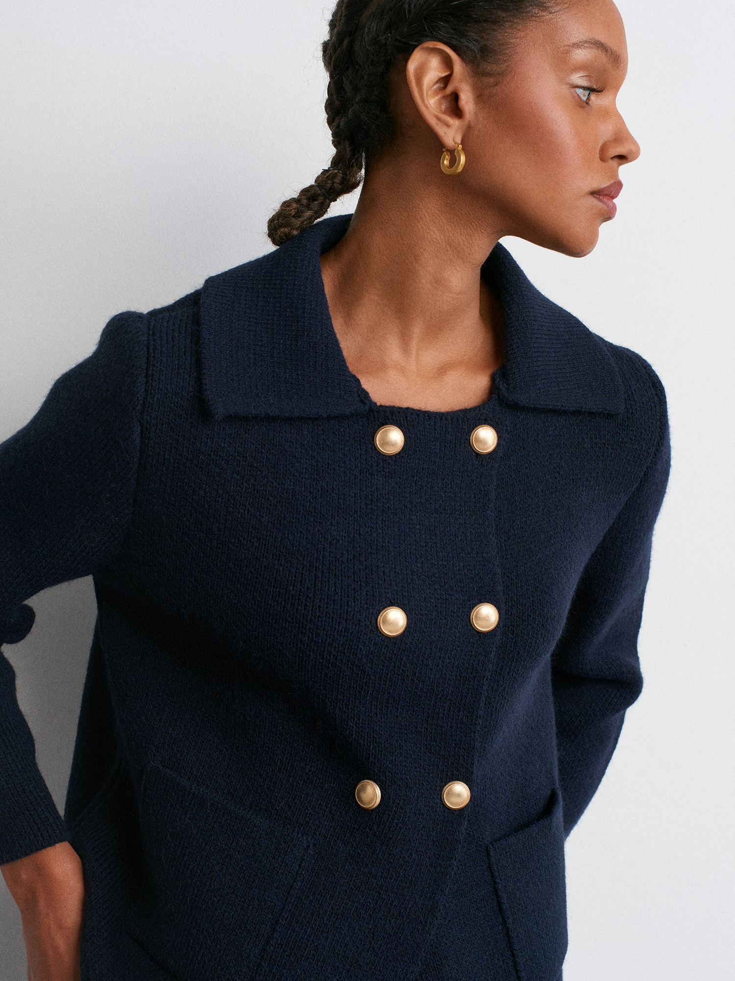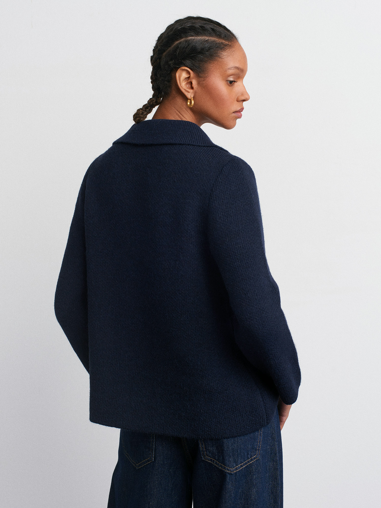 60921 Polo Yaka Düğmeli Cepli Triko Hırka-Lacivert