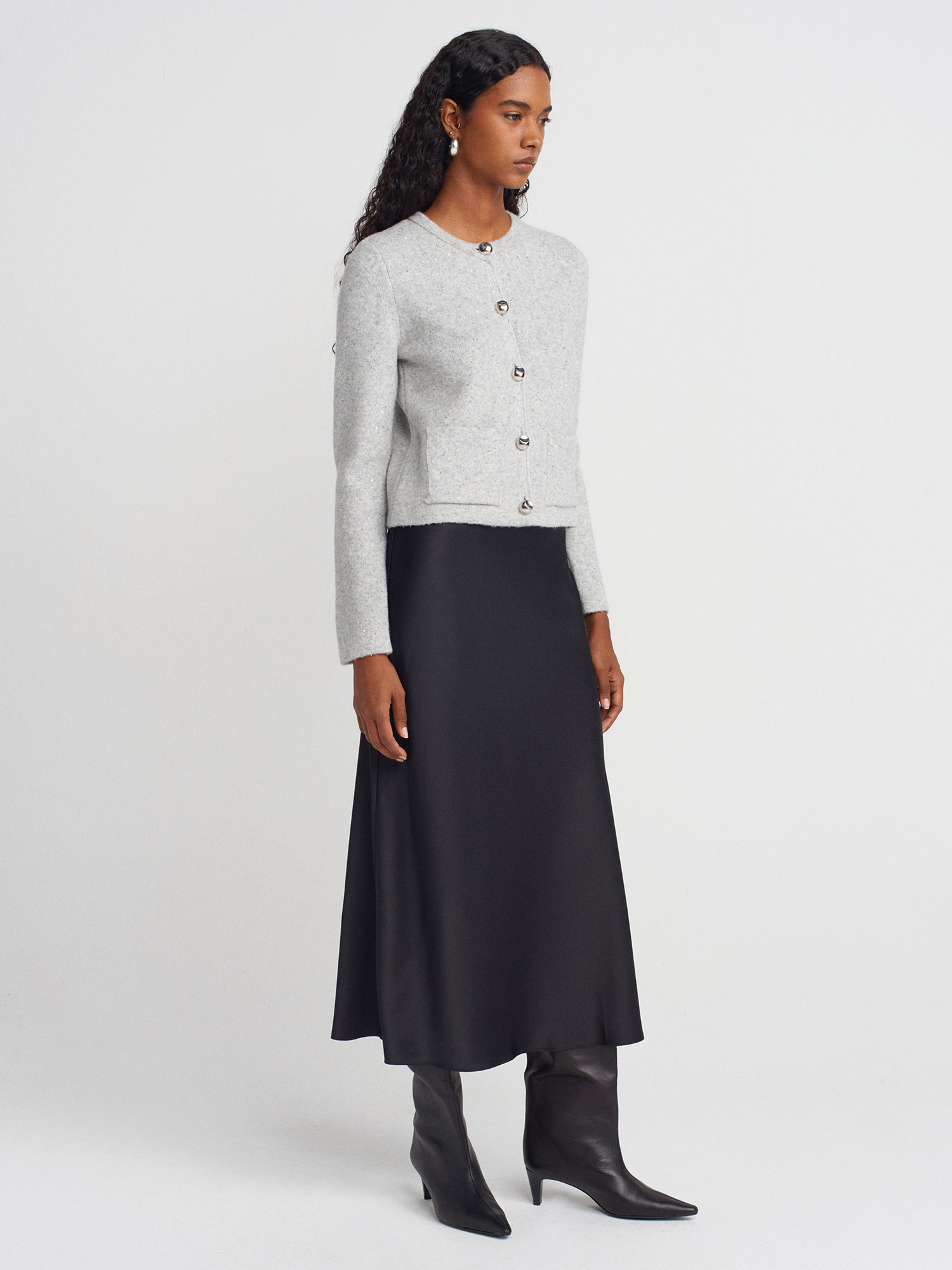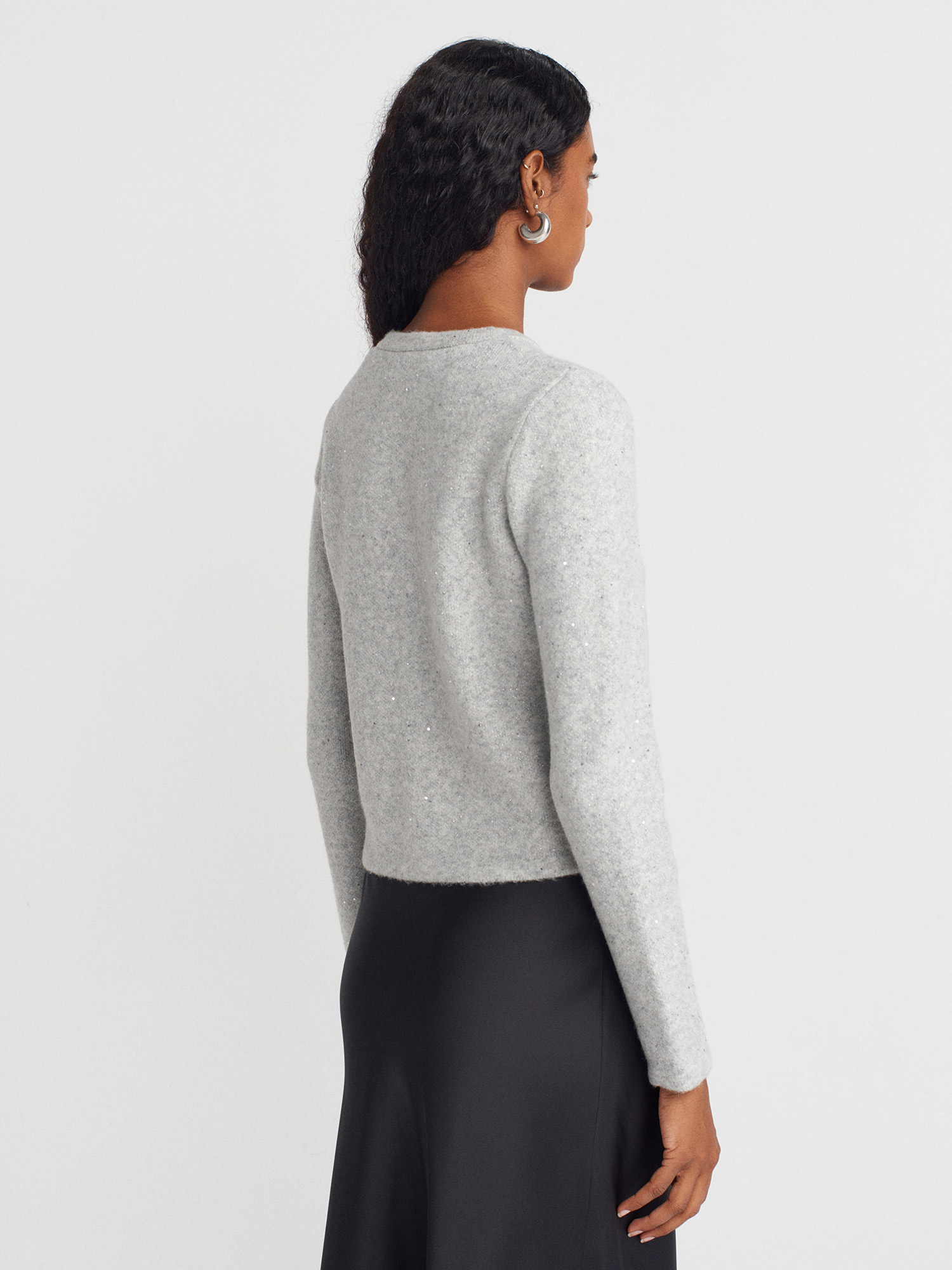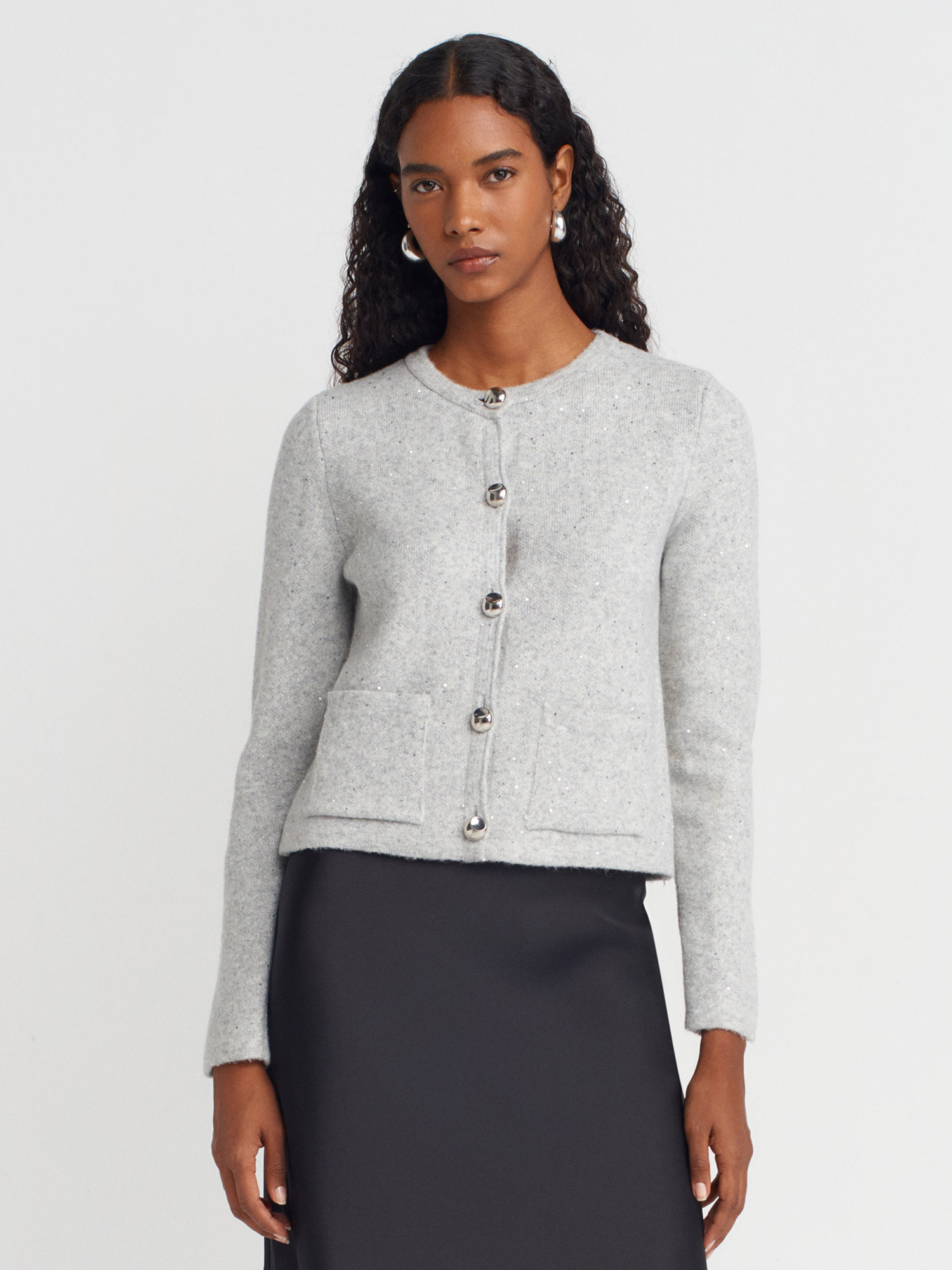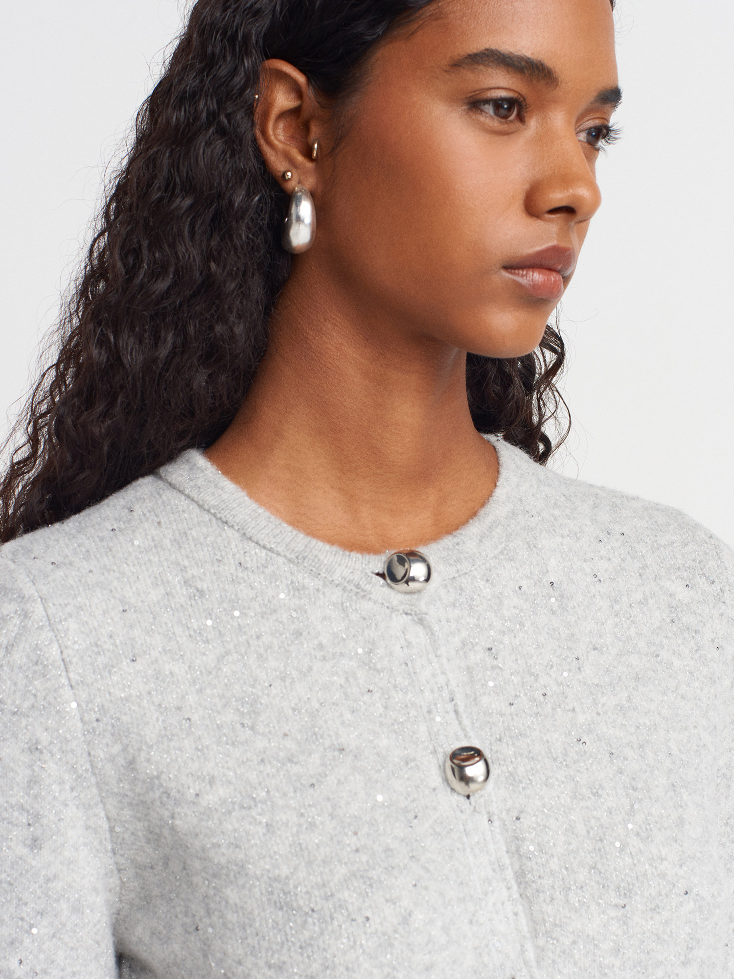 60935 Bisiklet Yaka Pullu Simli Düğmeli Triko Hırka-Gri