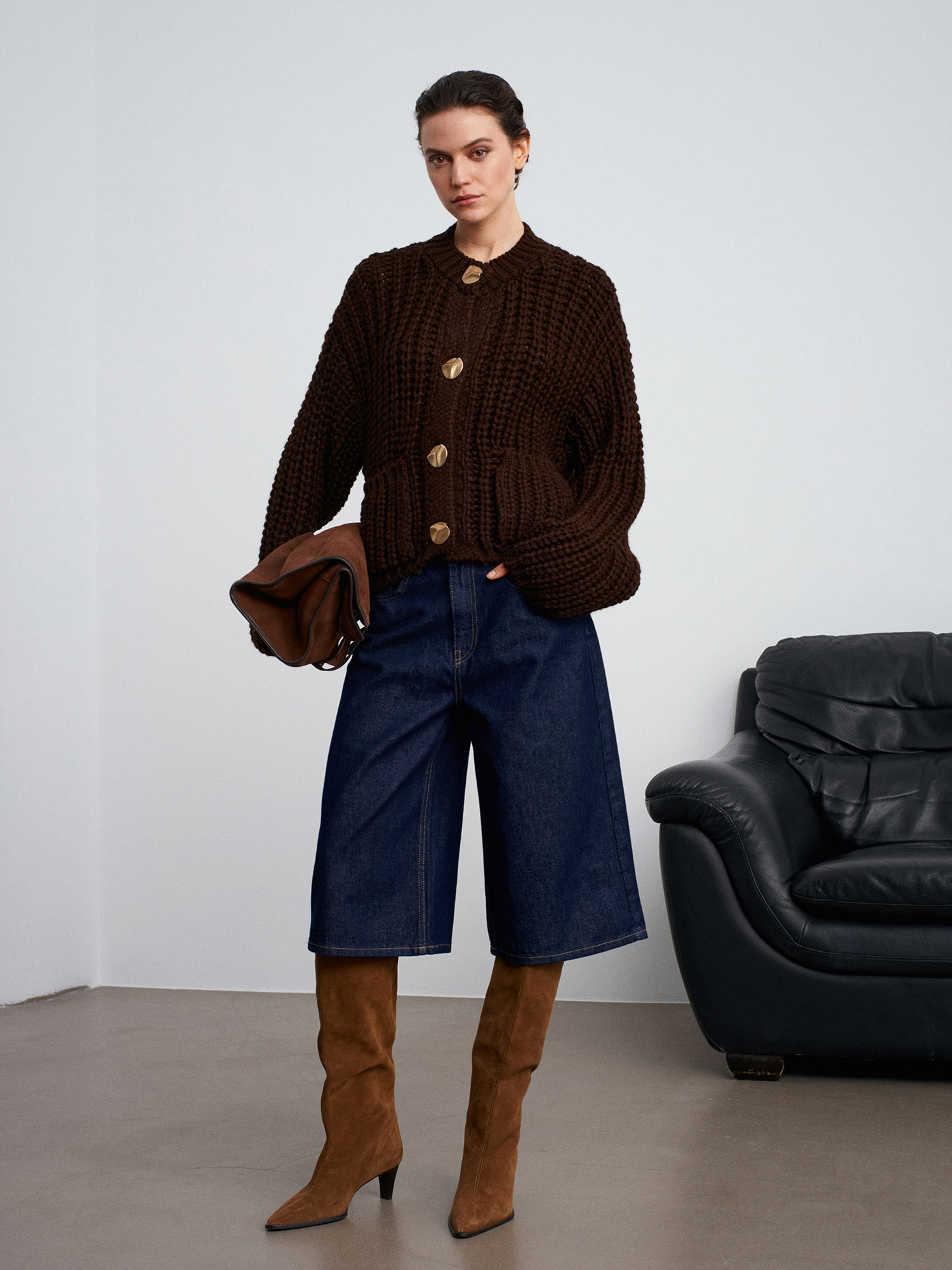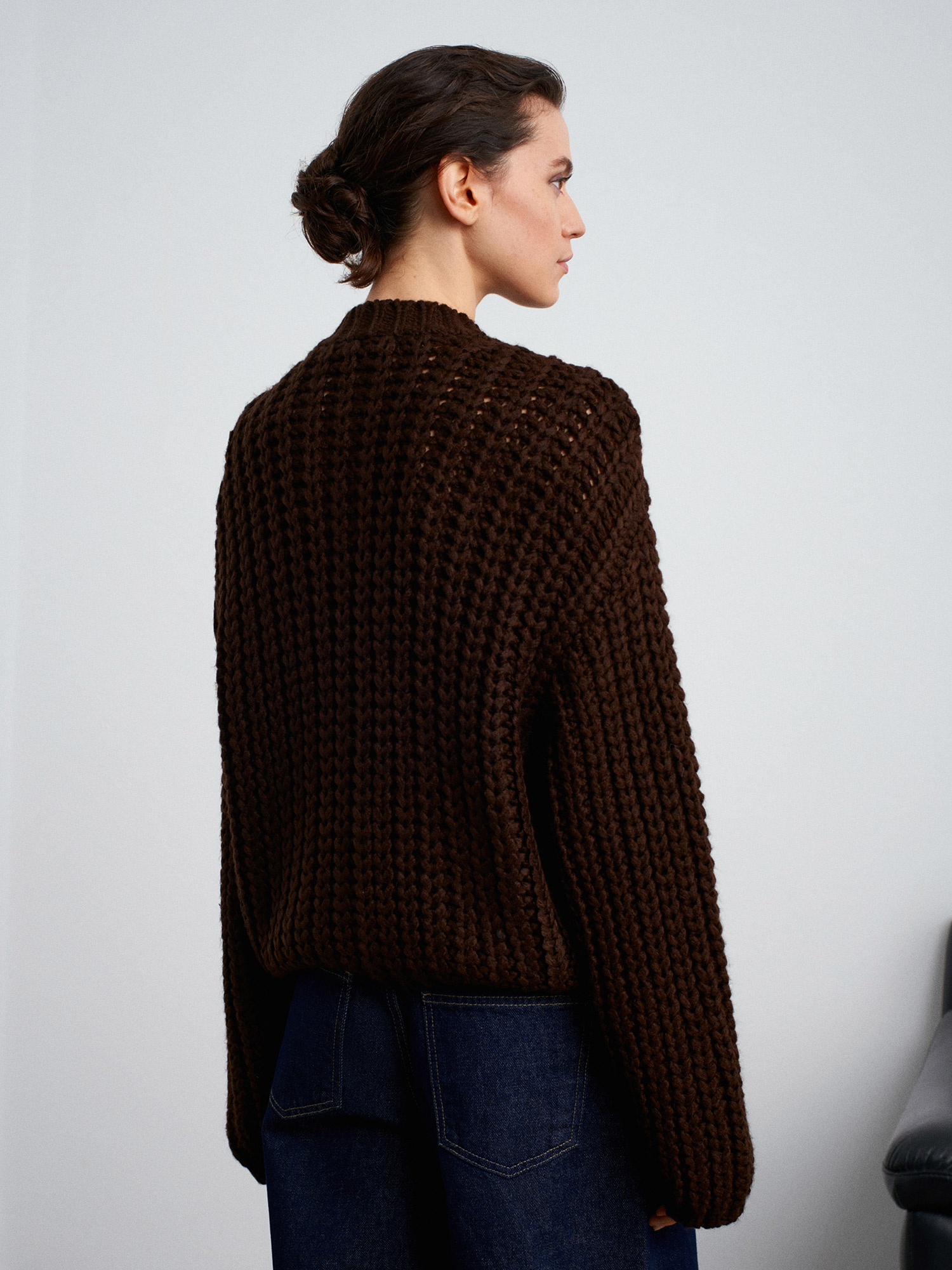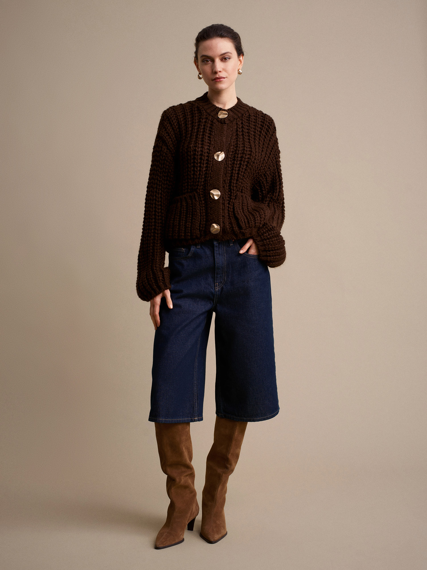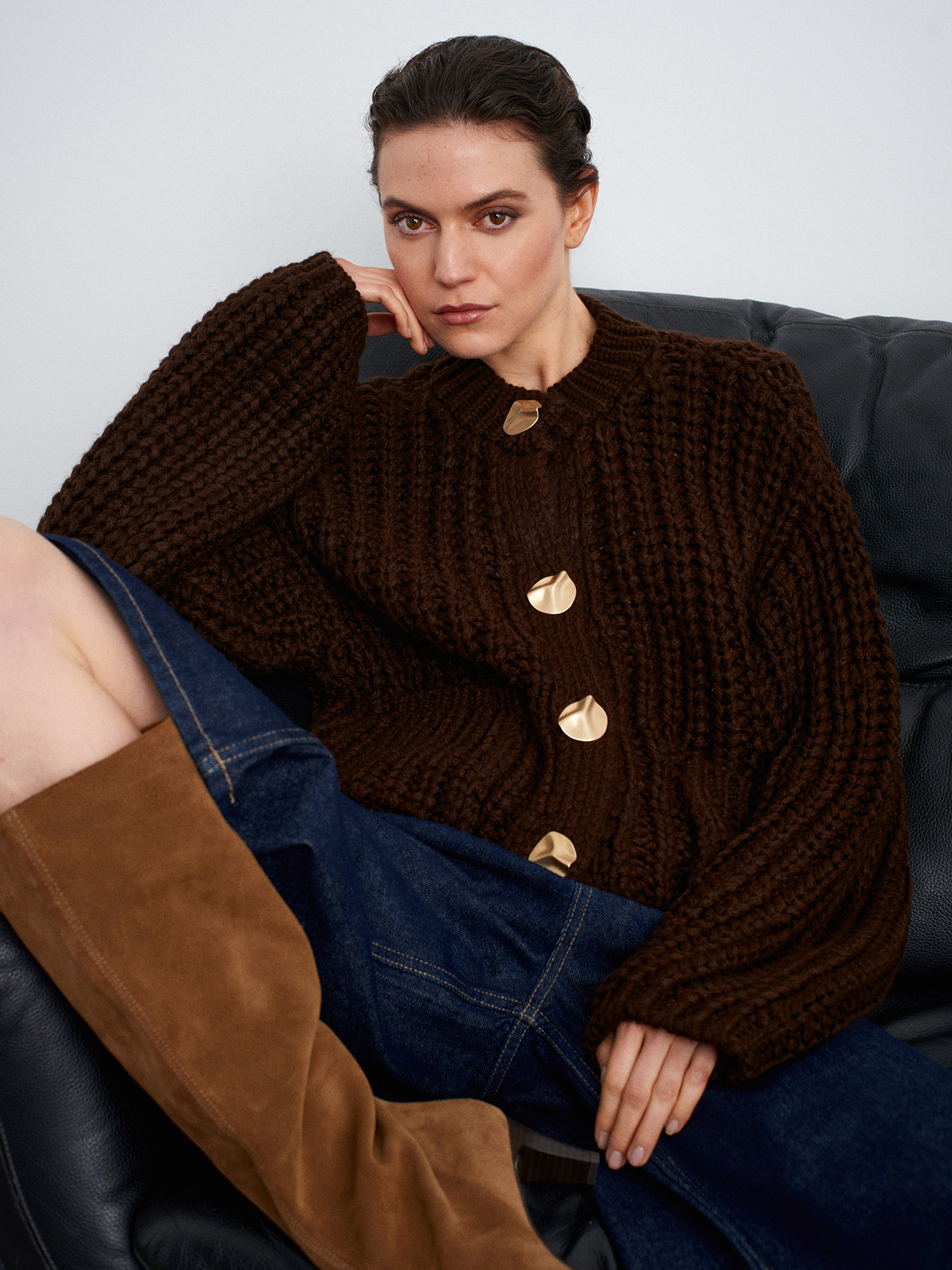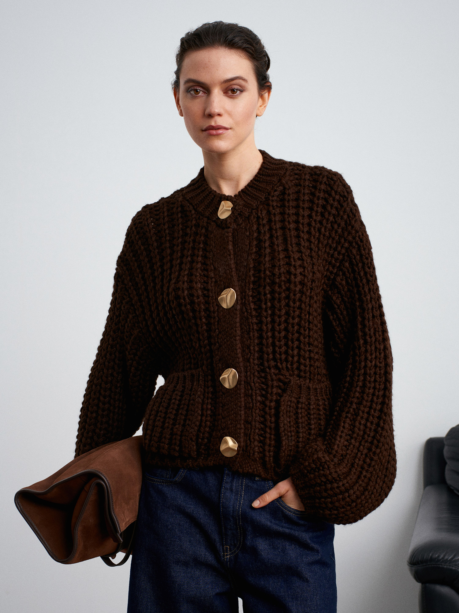 60960 Cep Detaylı Örgü Triko Hırka-Koyu Kahve