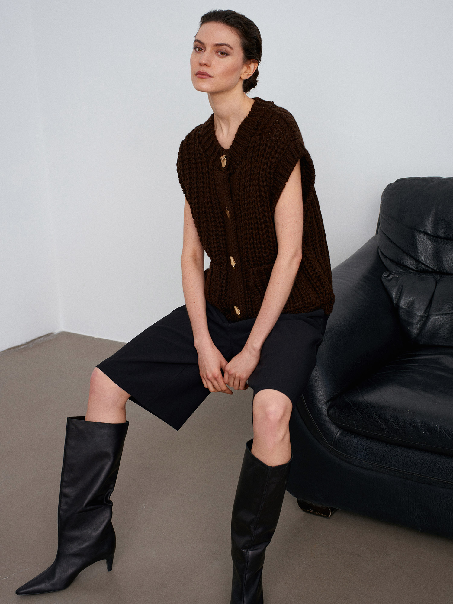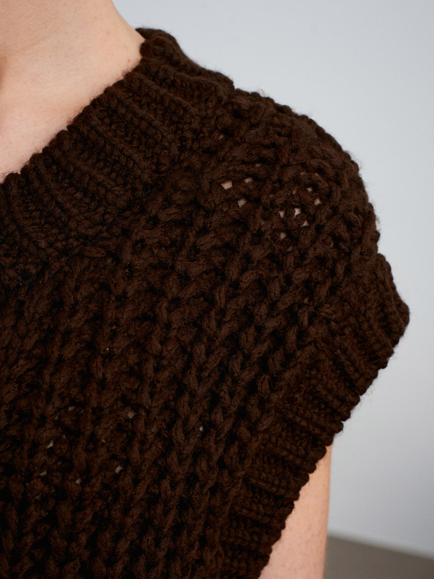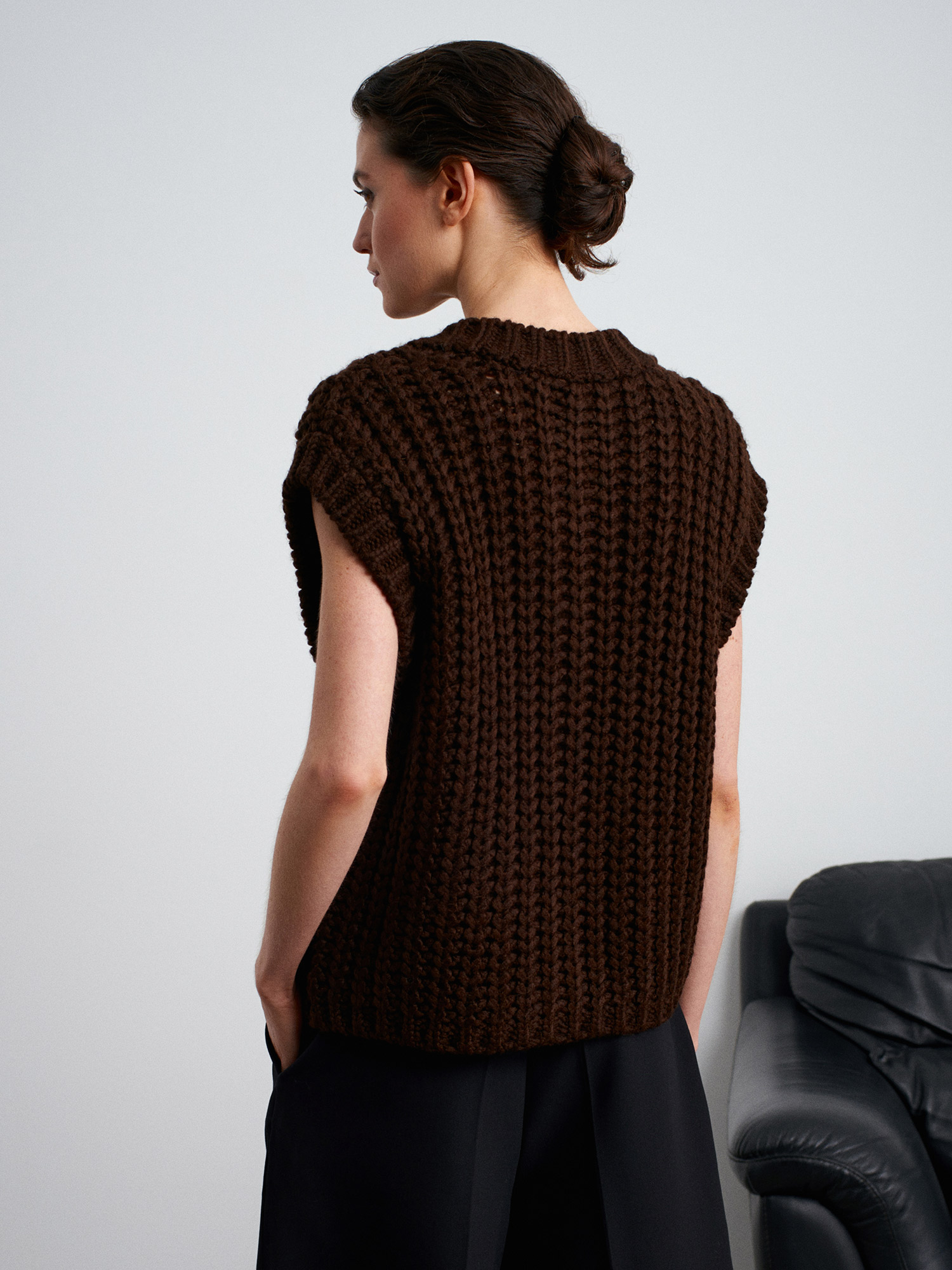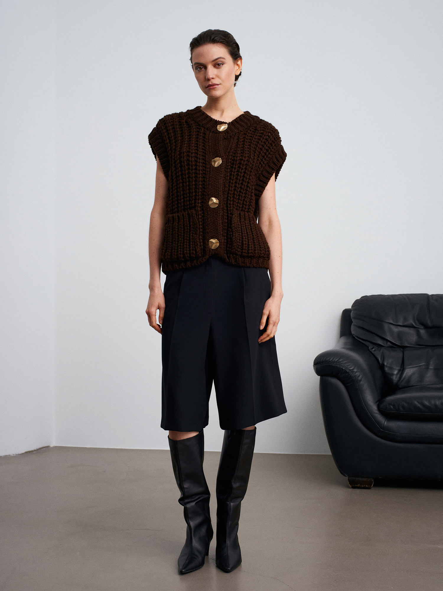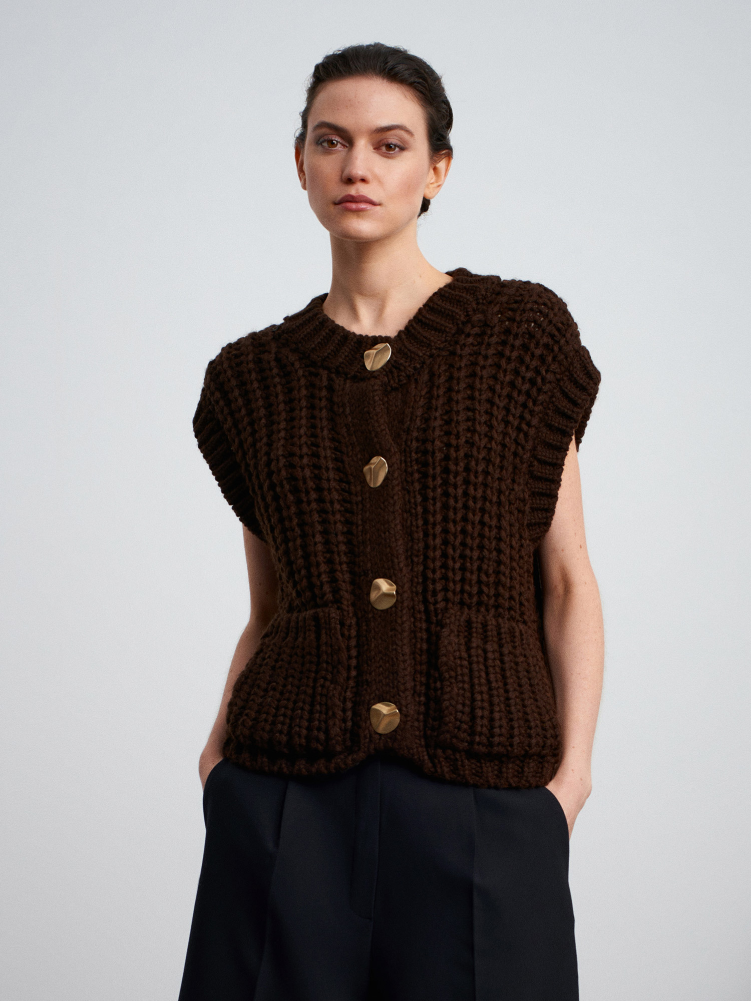 60961 Cep Detaylı Örgü Triko Süveter-Koyu Kahve