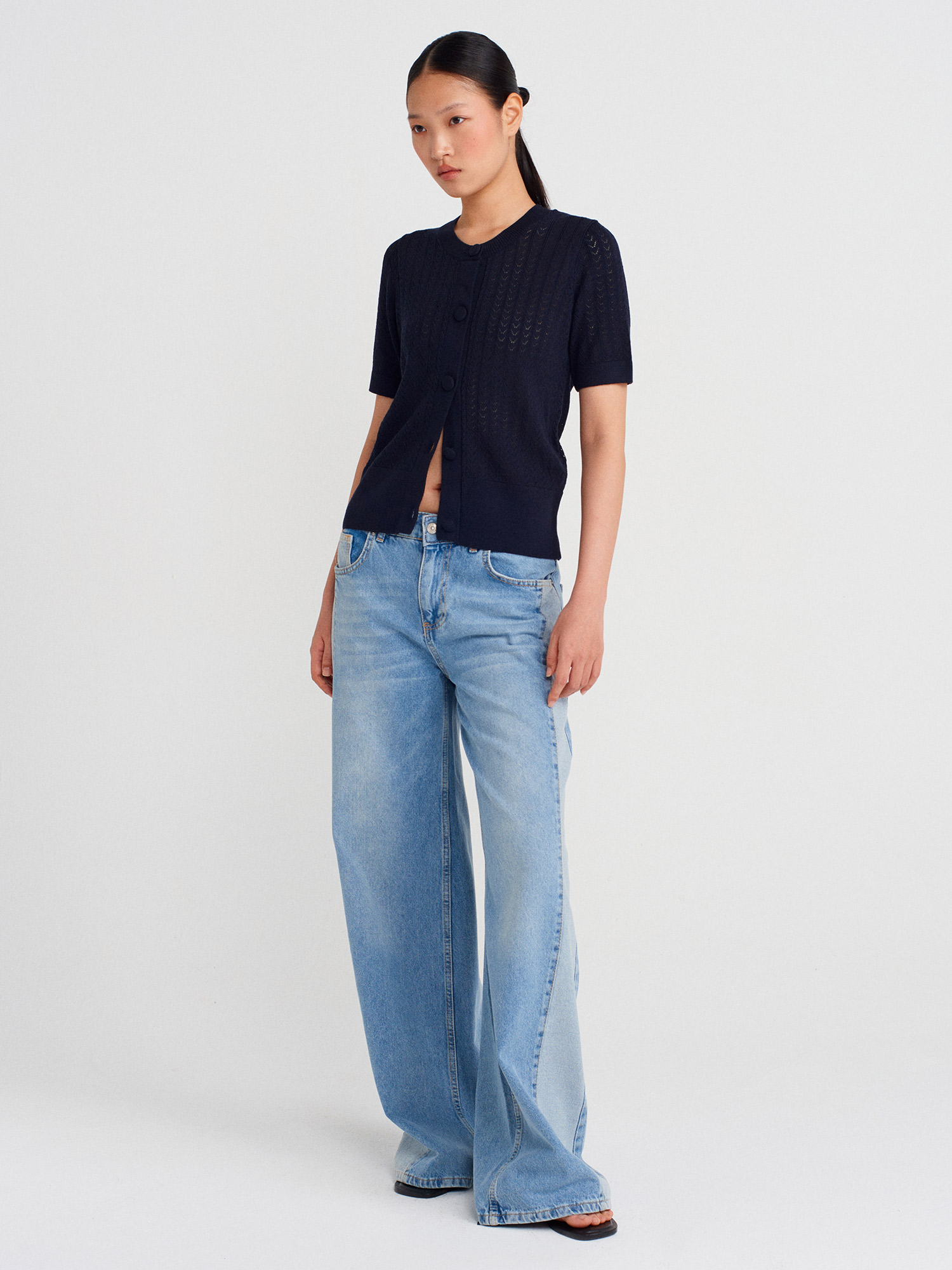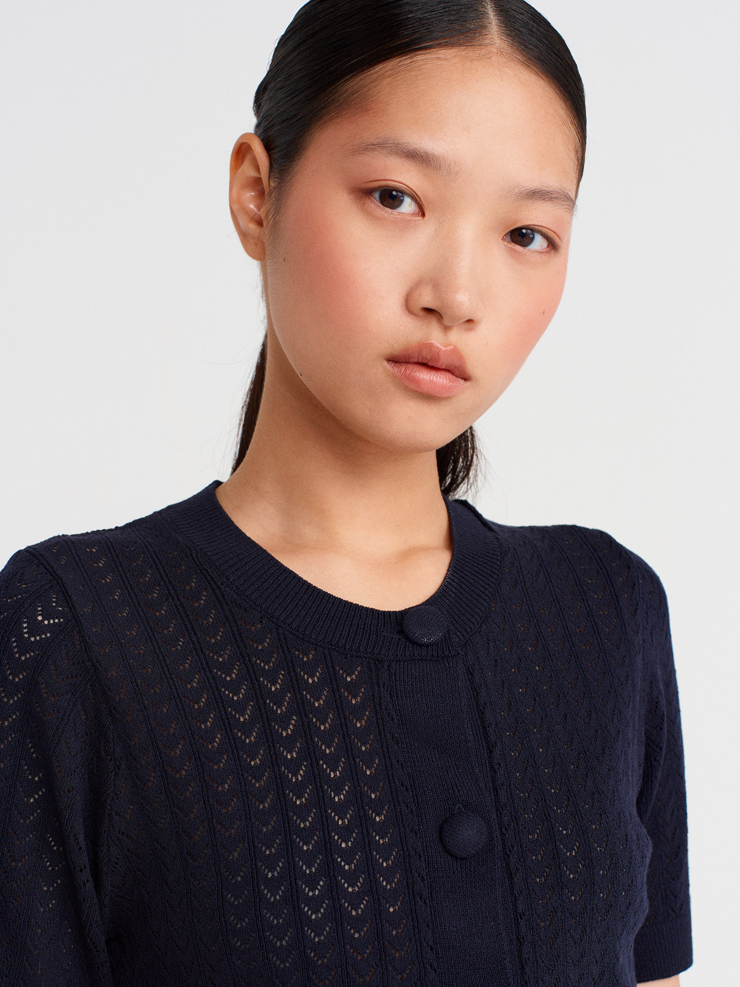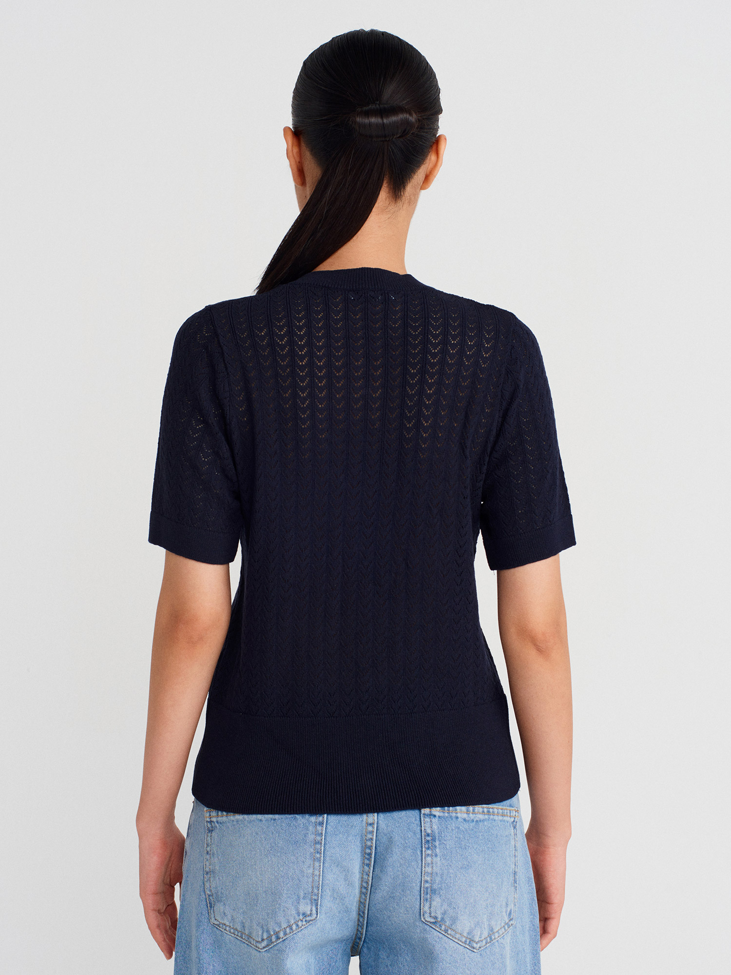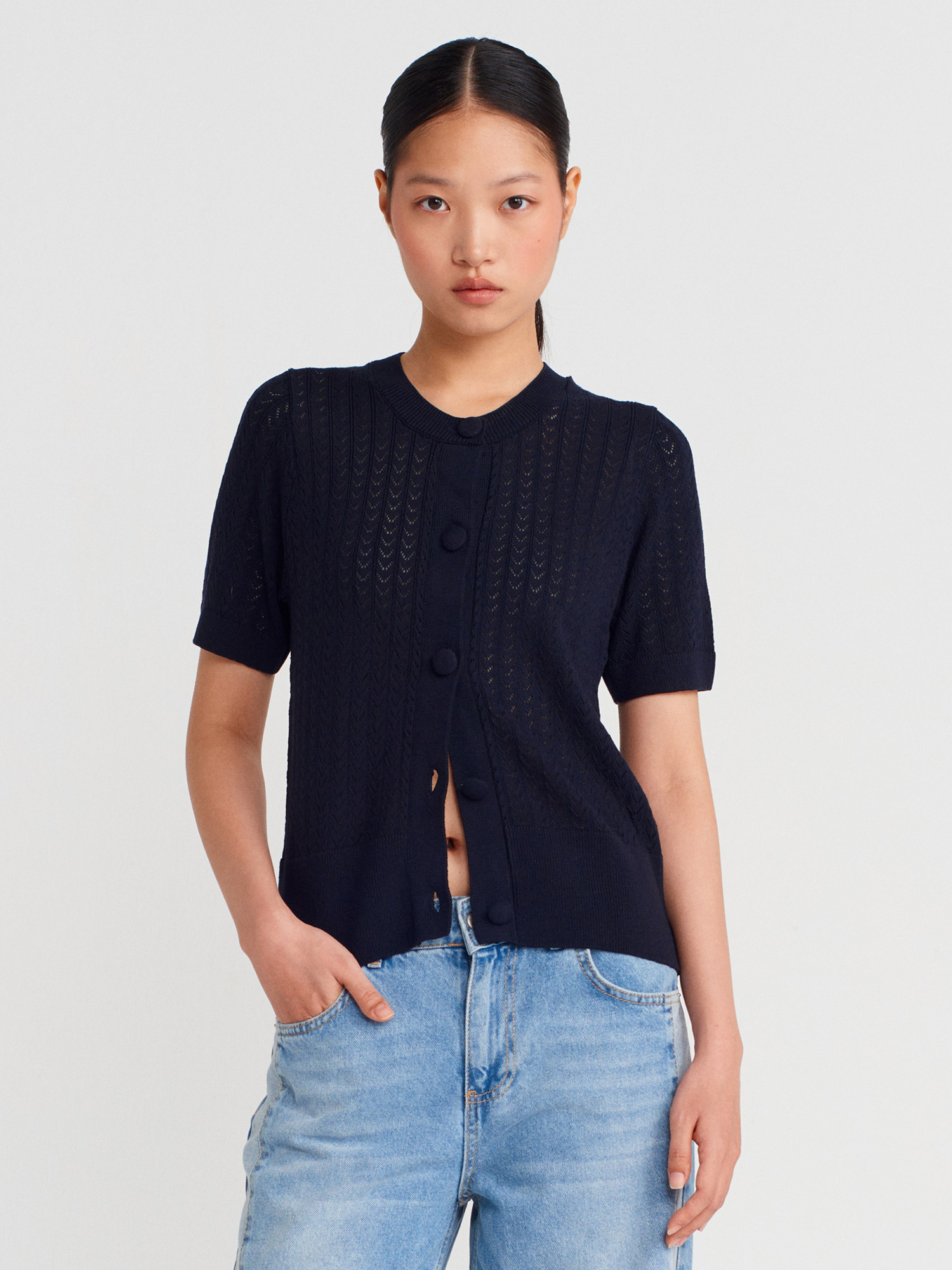 60974 Bisiklet Yaka Ajurlu Düğmeli Triko Hırka-Lacivert