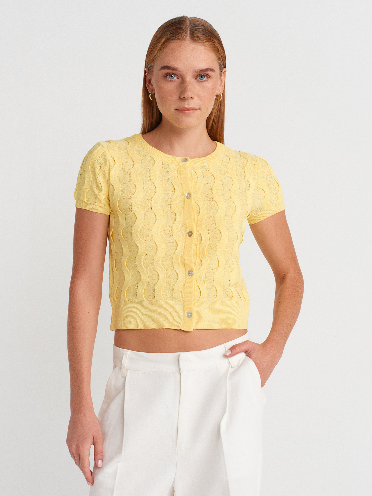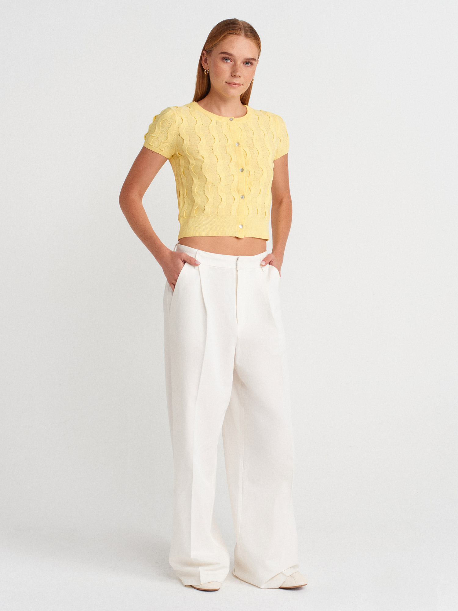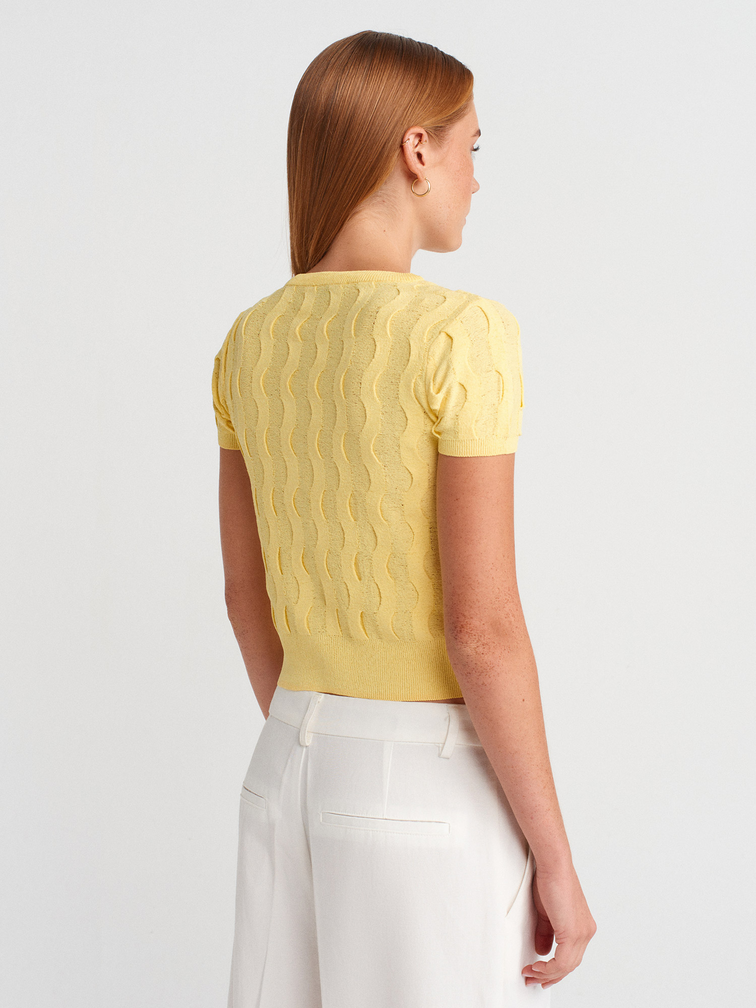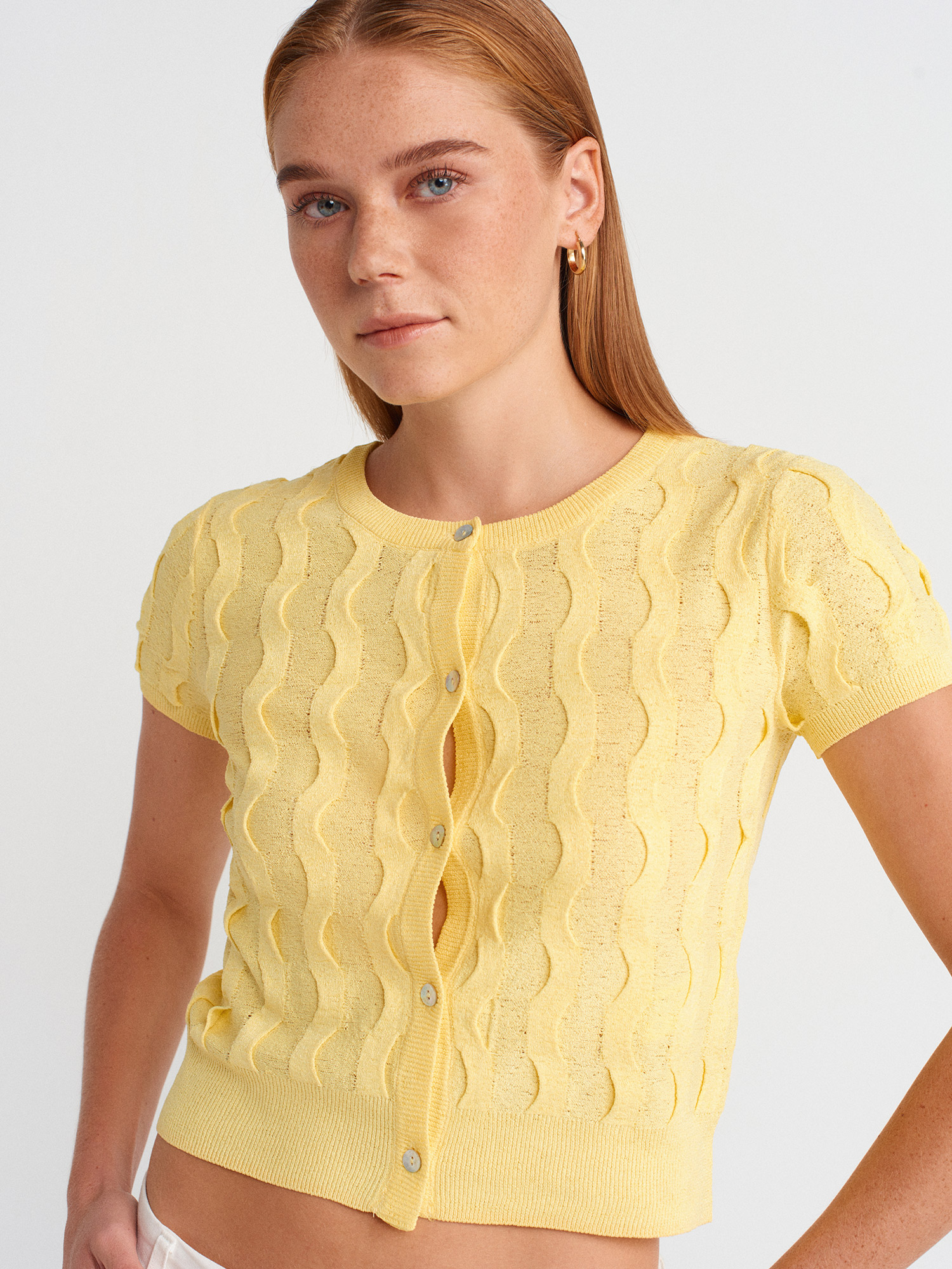 60980 Bisiklet Yaka Dokulu Düğmeli Triko Hırka-Sarı