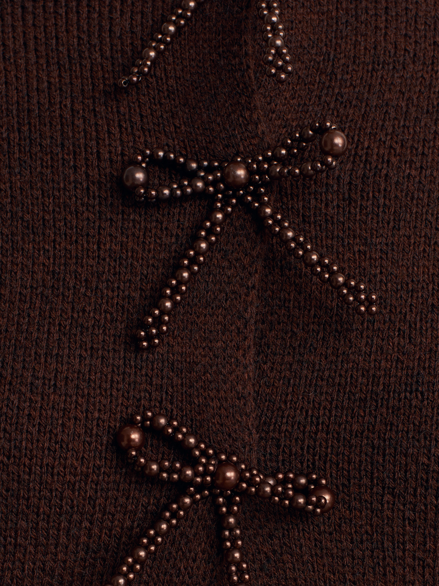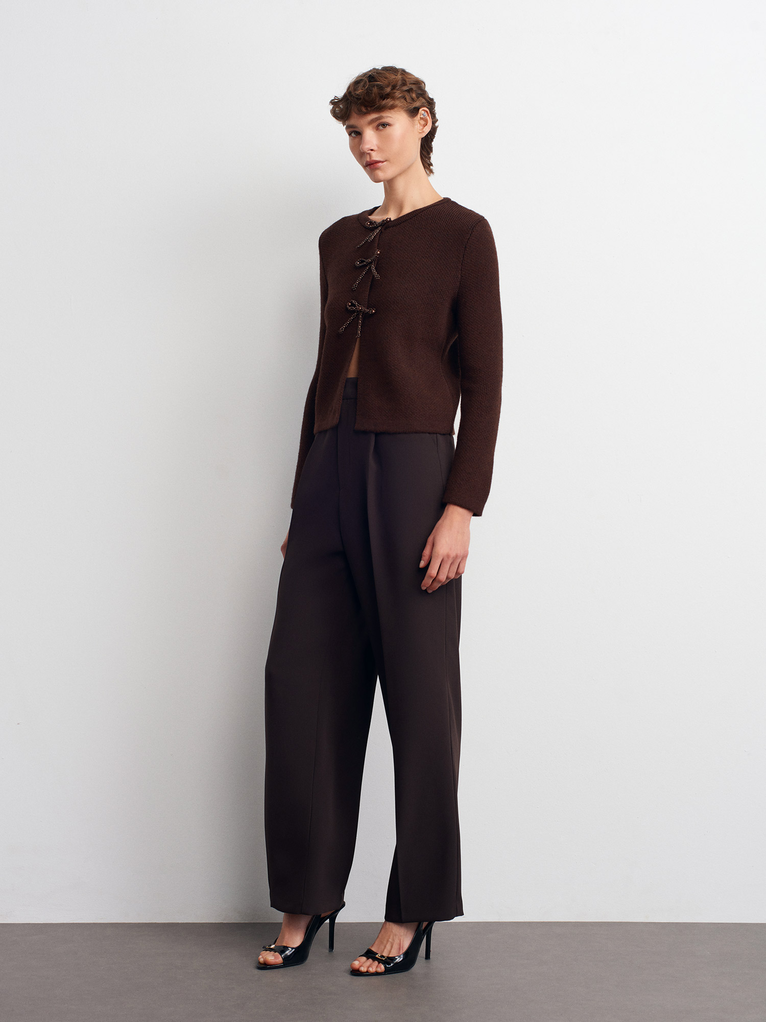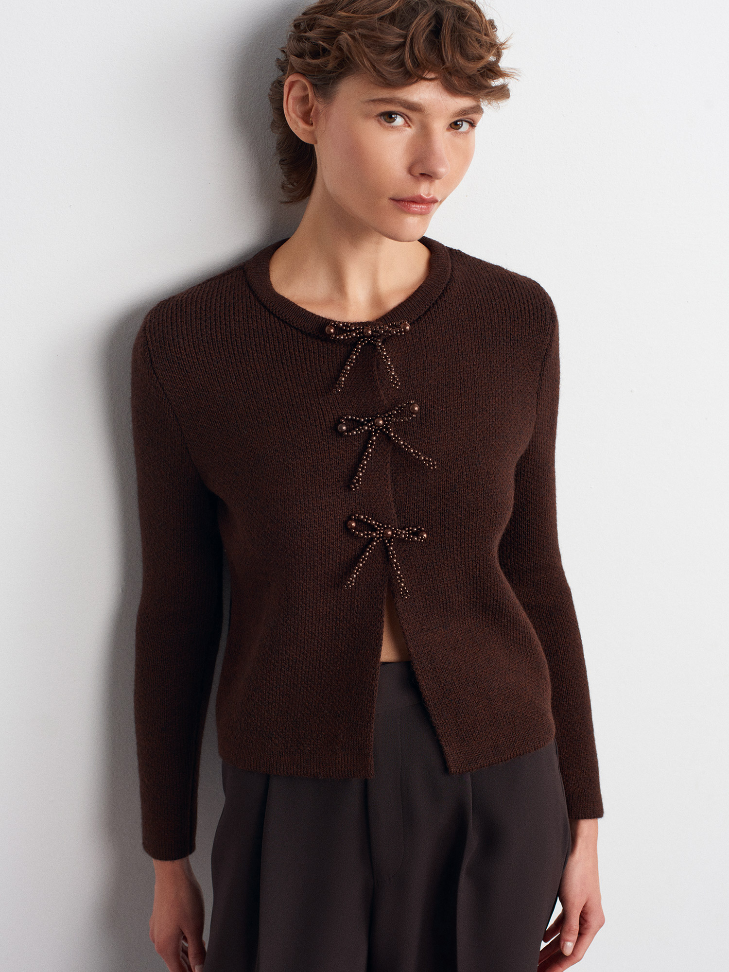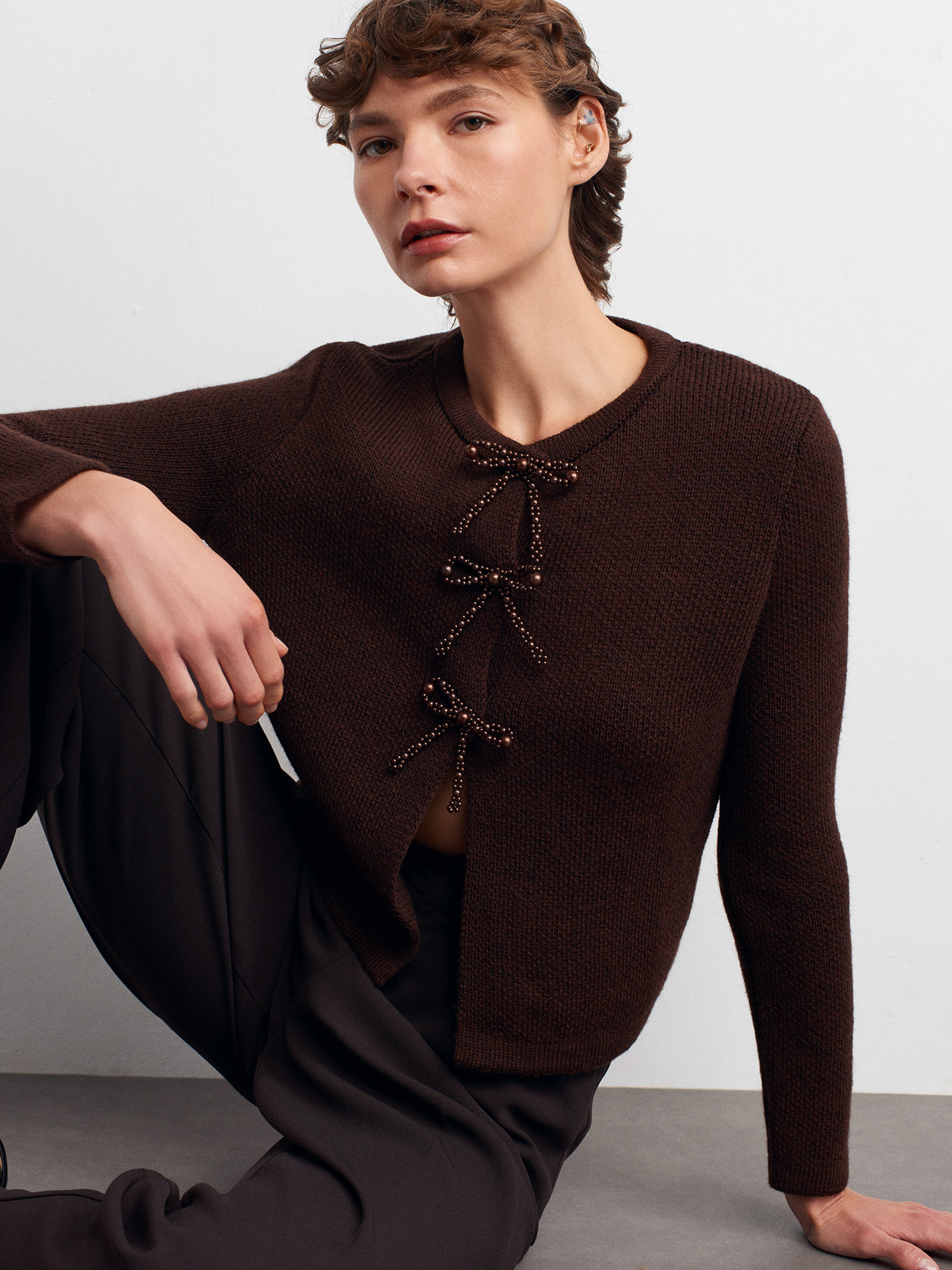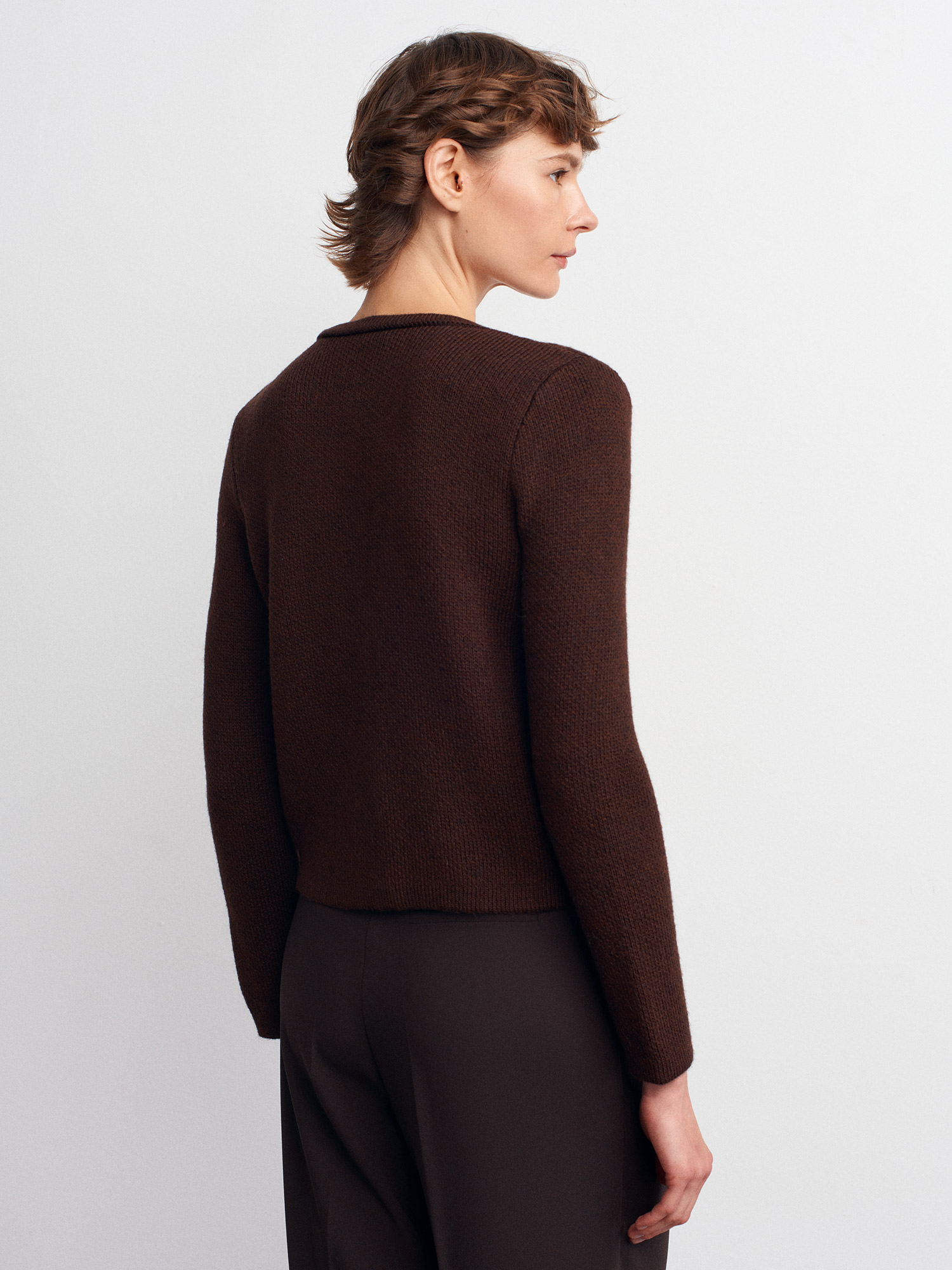 60983 Fiyonk Detaylı Triko Hırka-Kahve