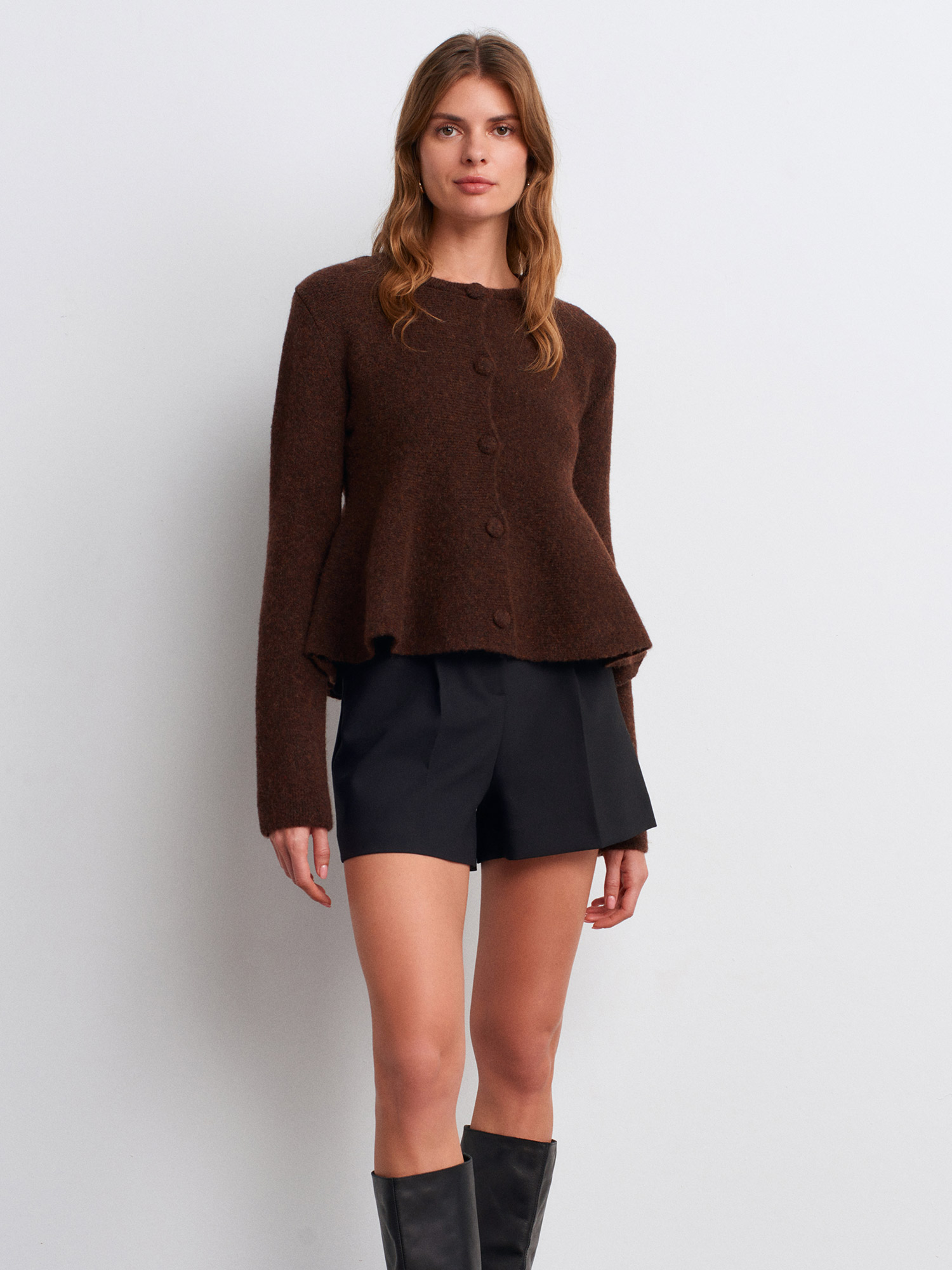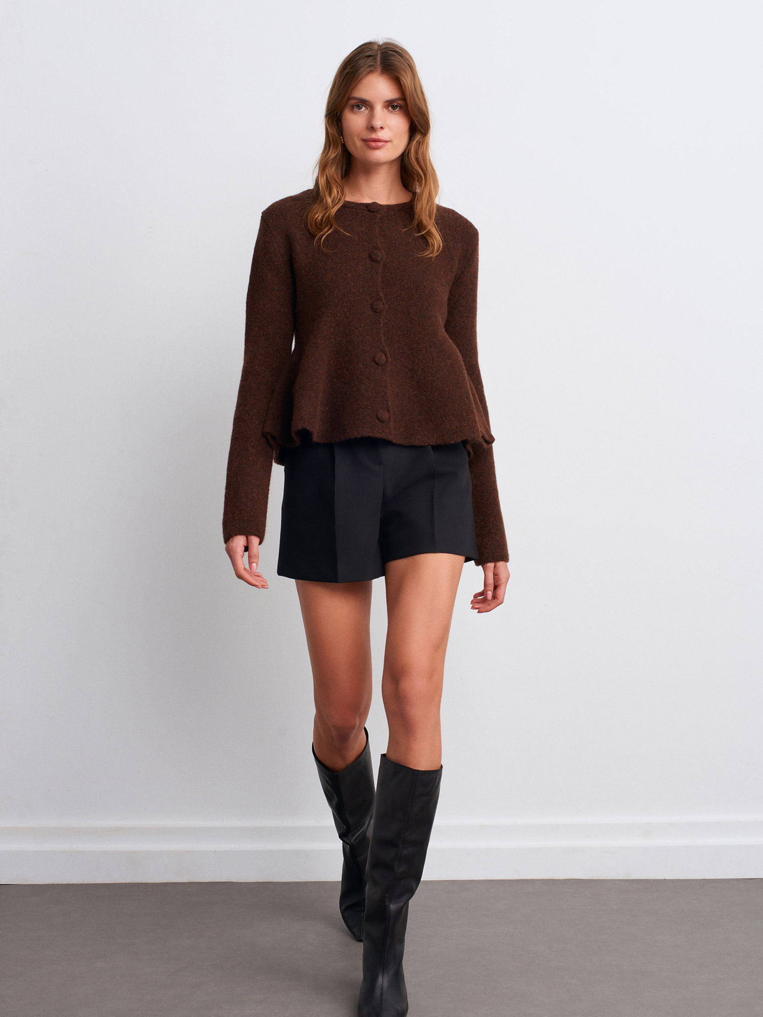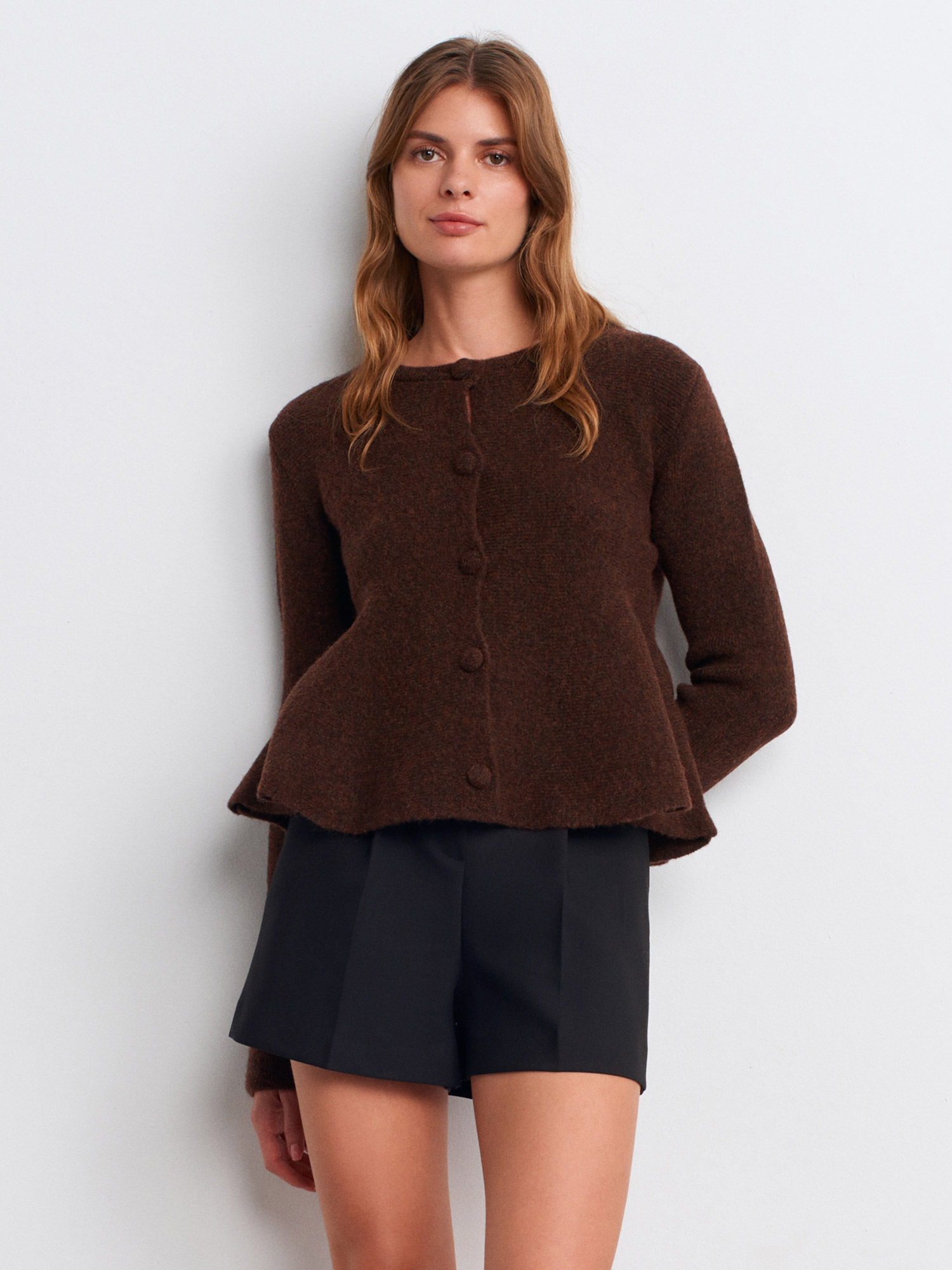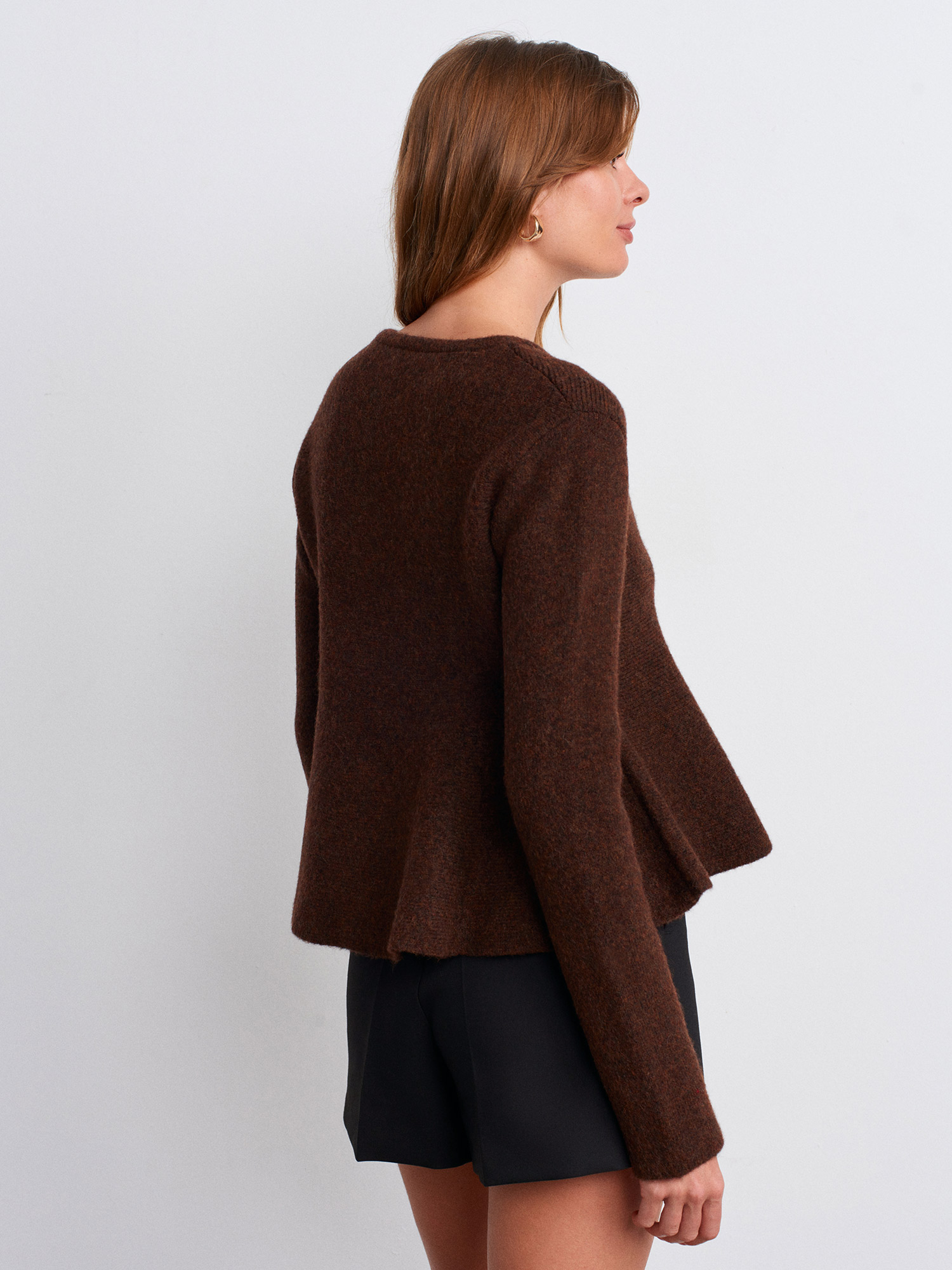 60985 Yün Karışımlı Triko Hırka-Kahve M.