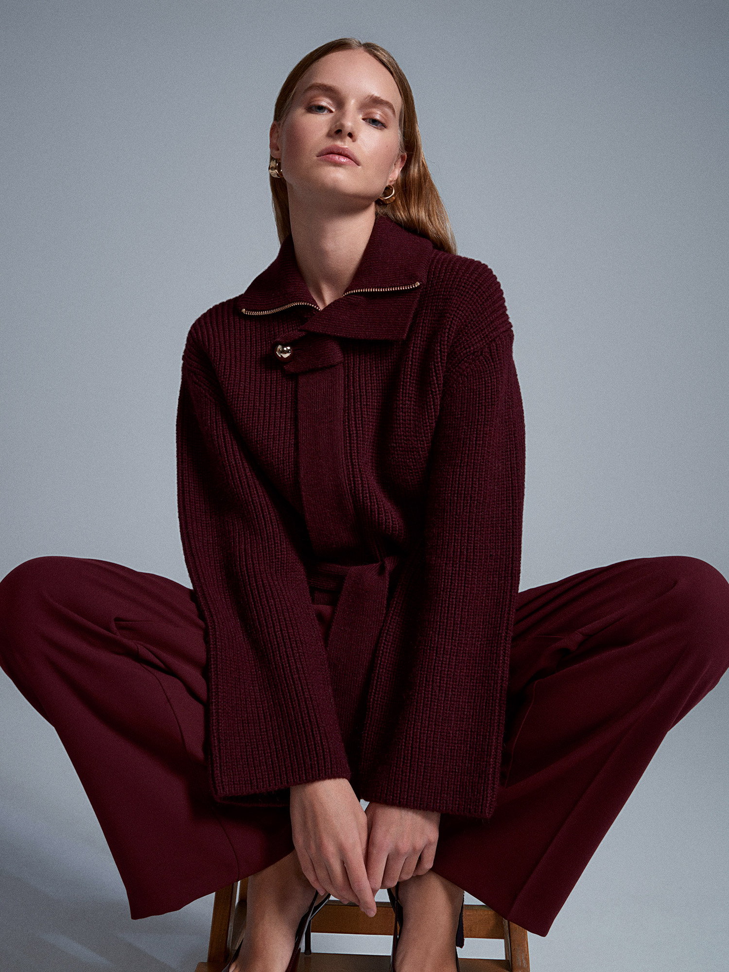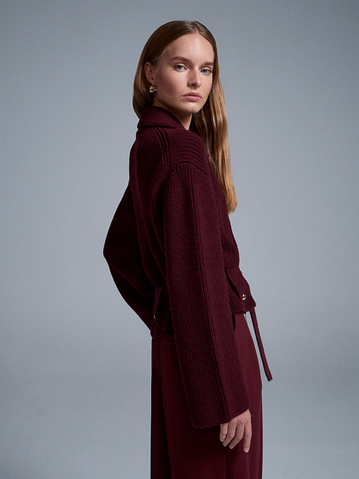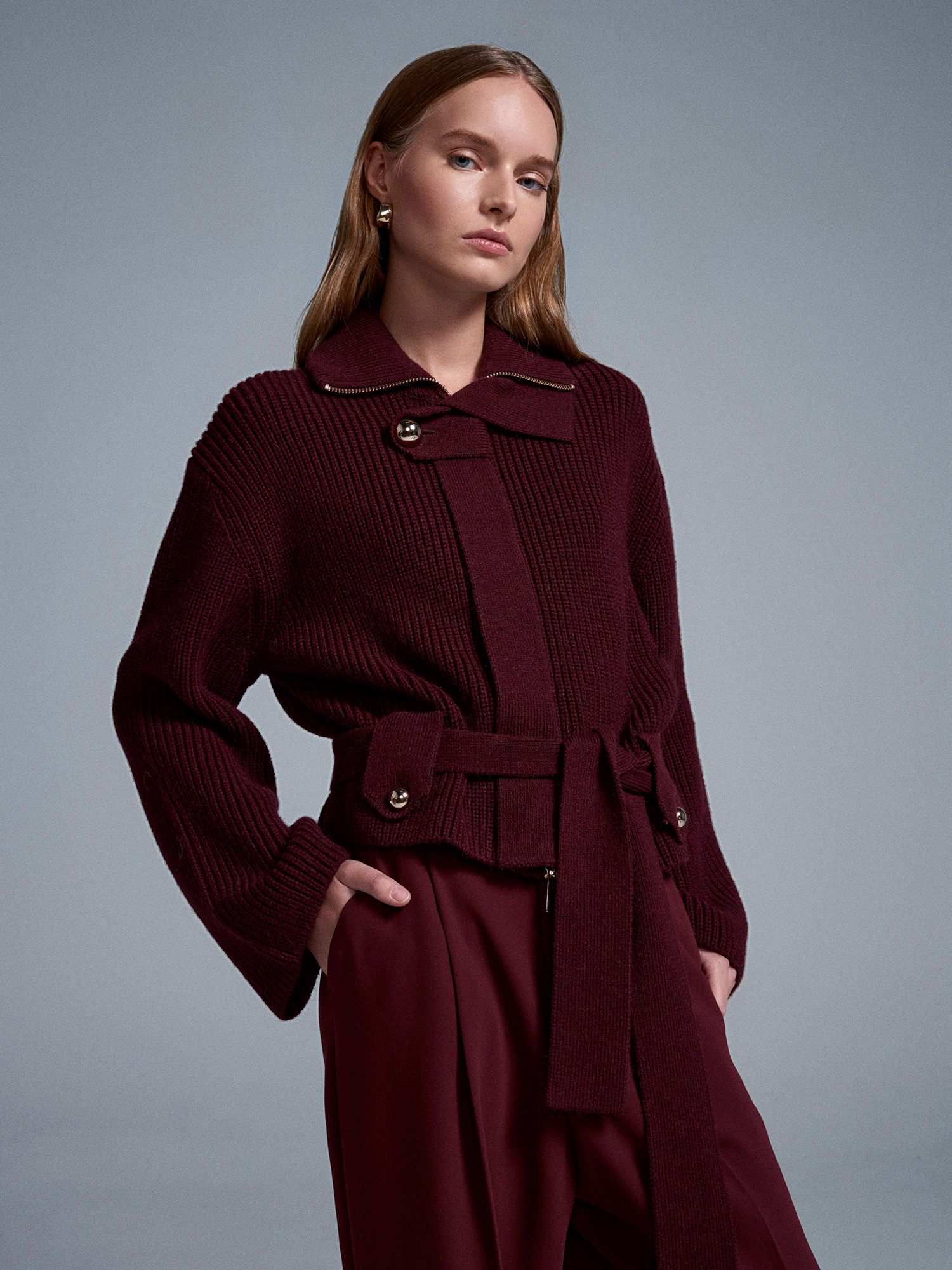 60988 Yün Karışımlı Triko Hırka-Bordo