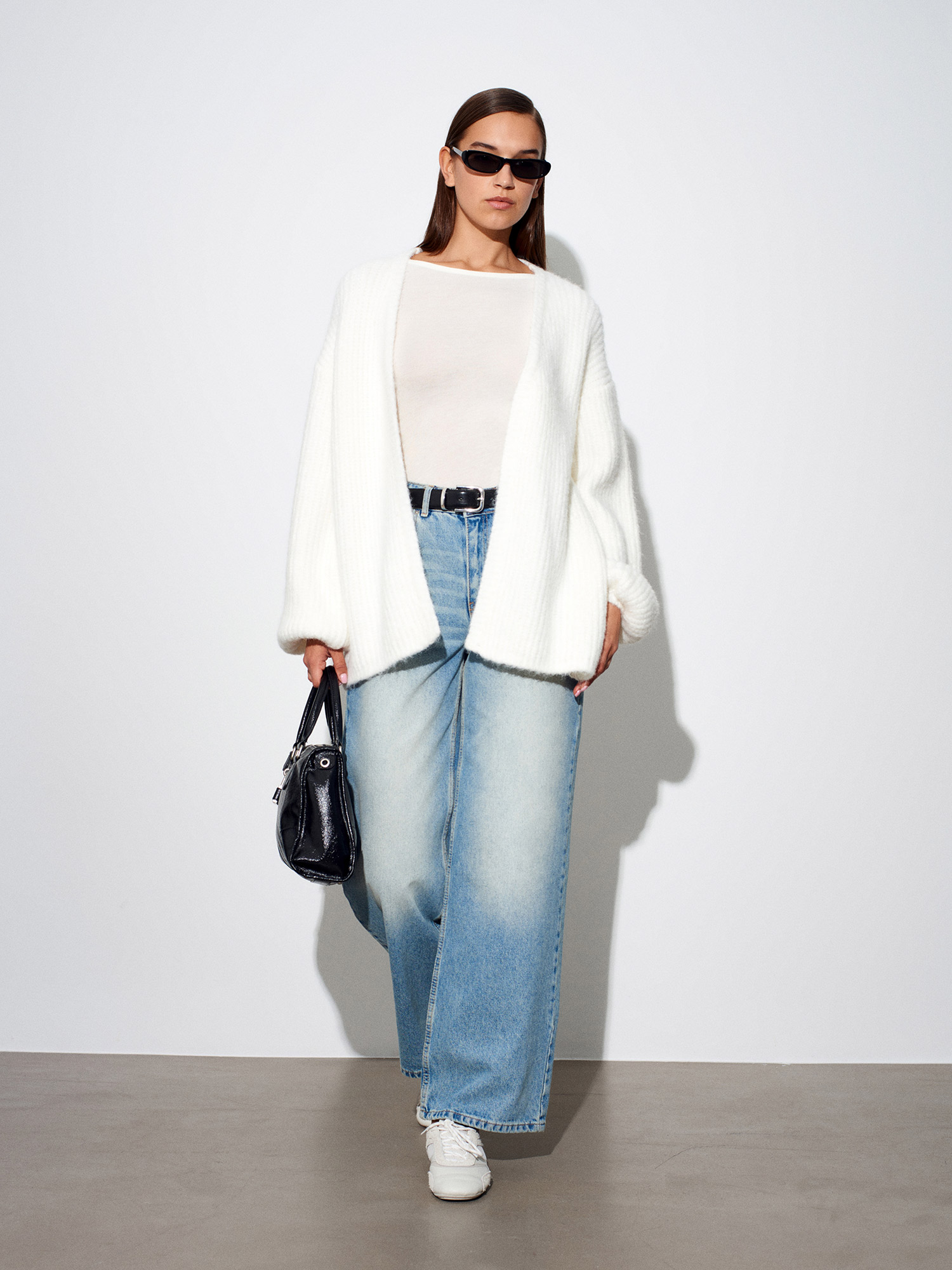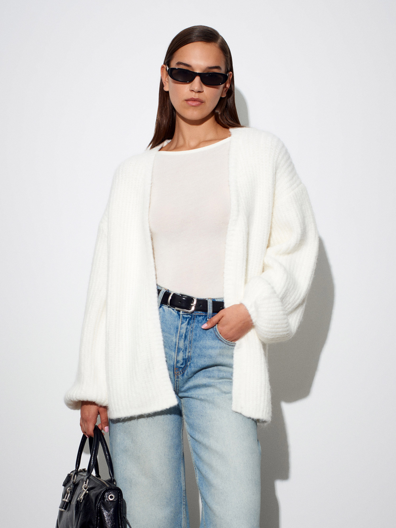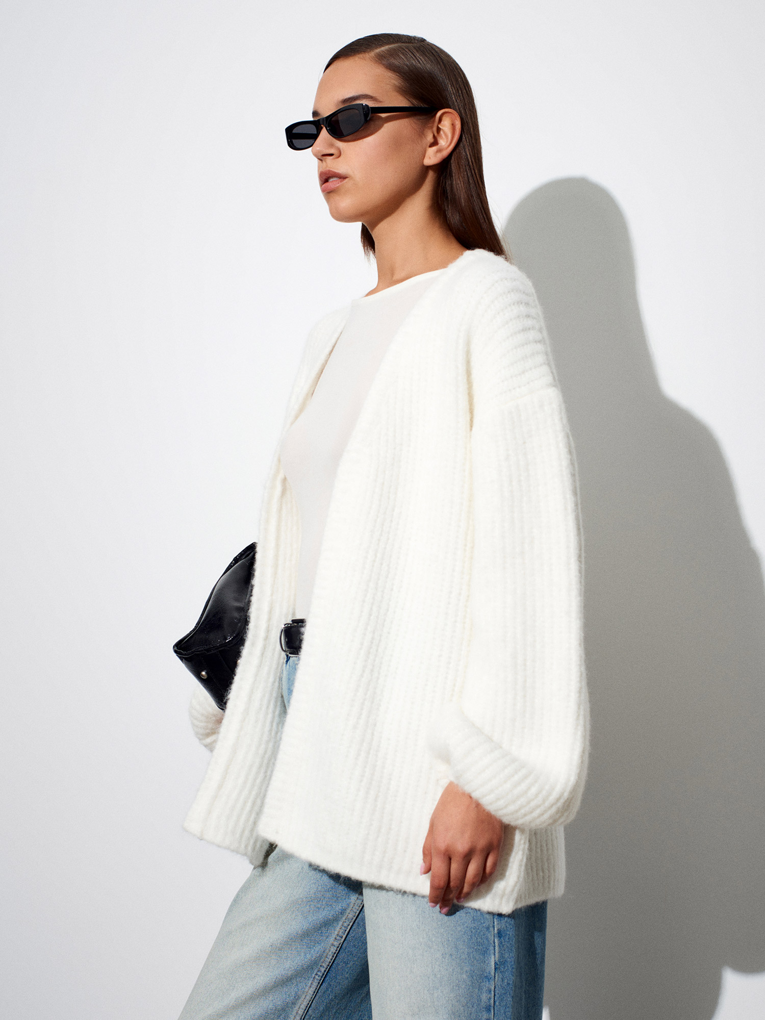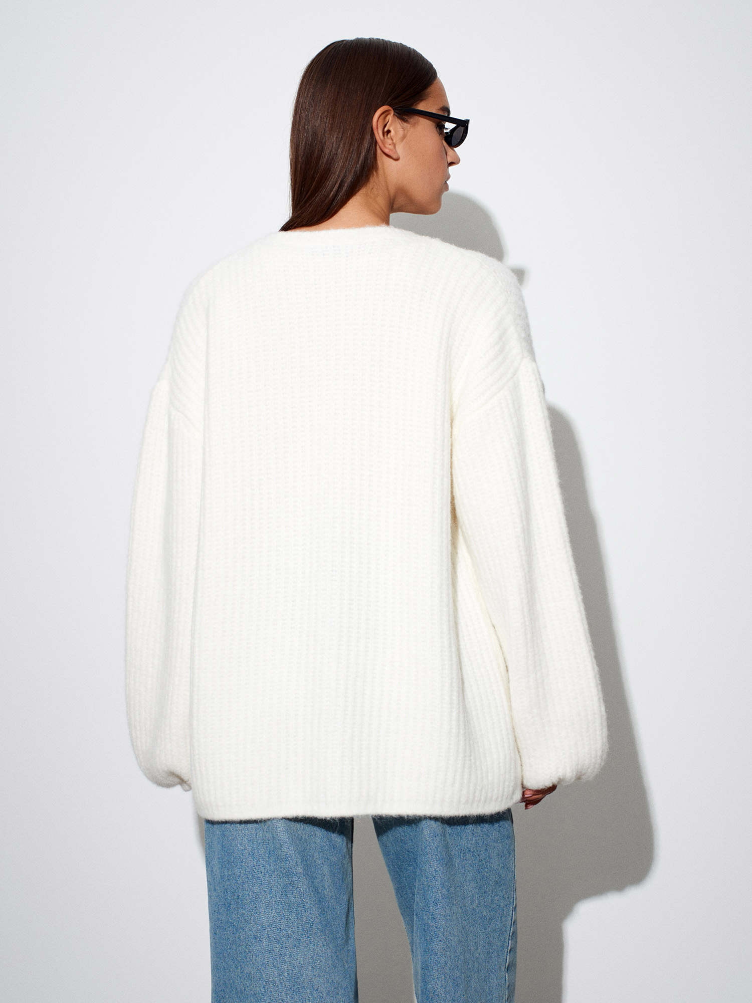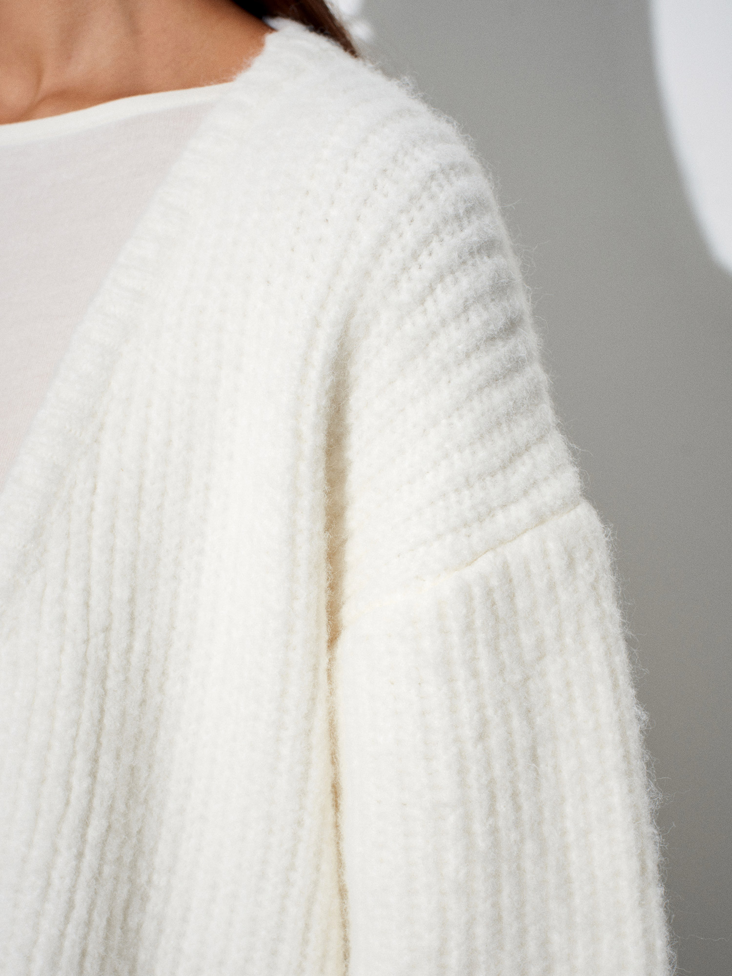 60991 Yumuşak Dokulu Dökümlü Triko Hırka-Ekru