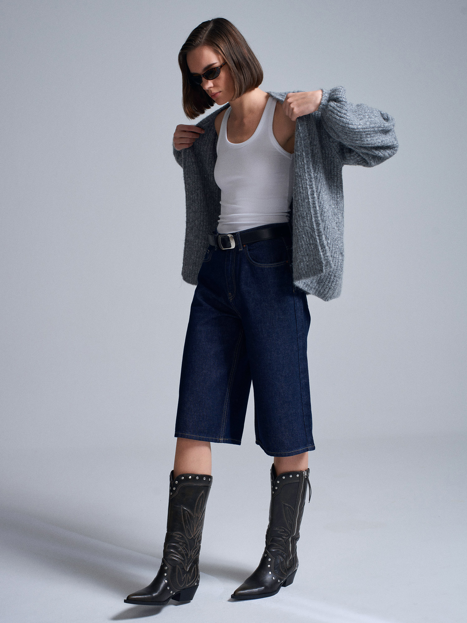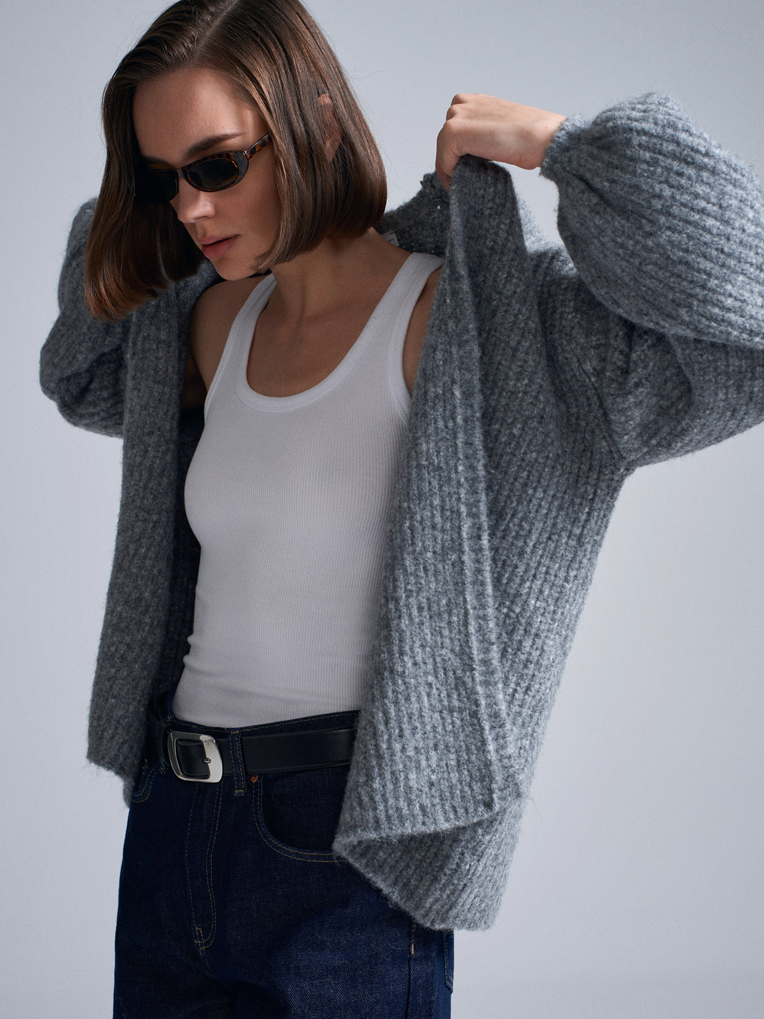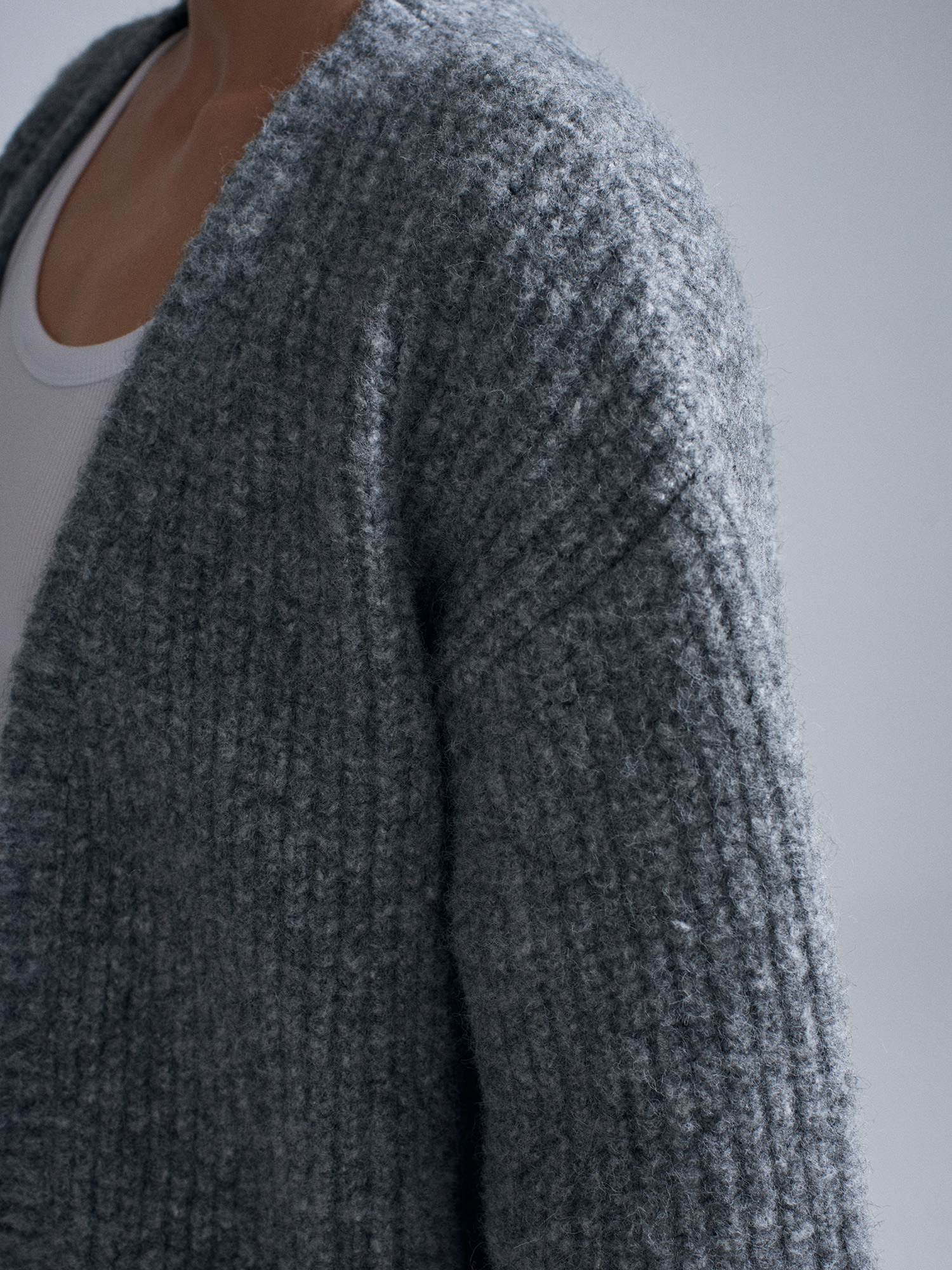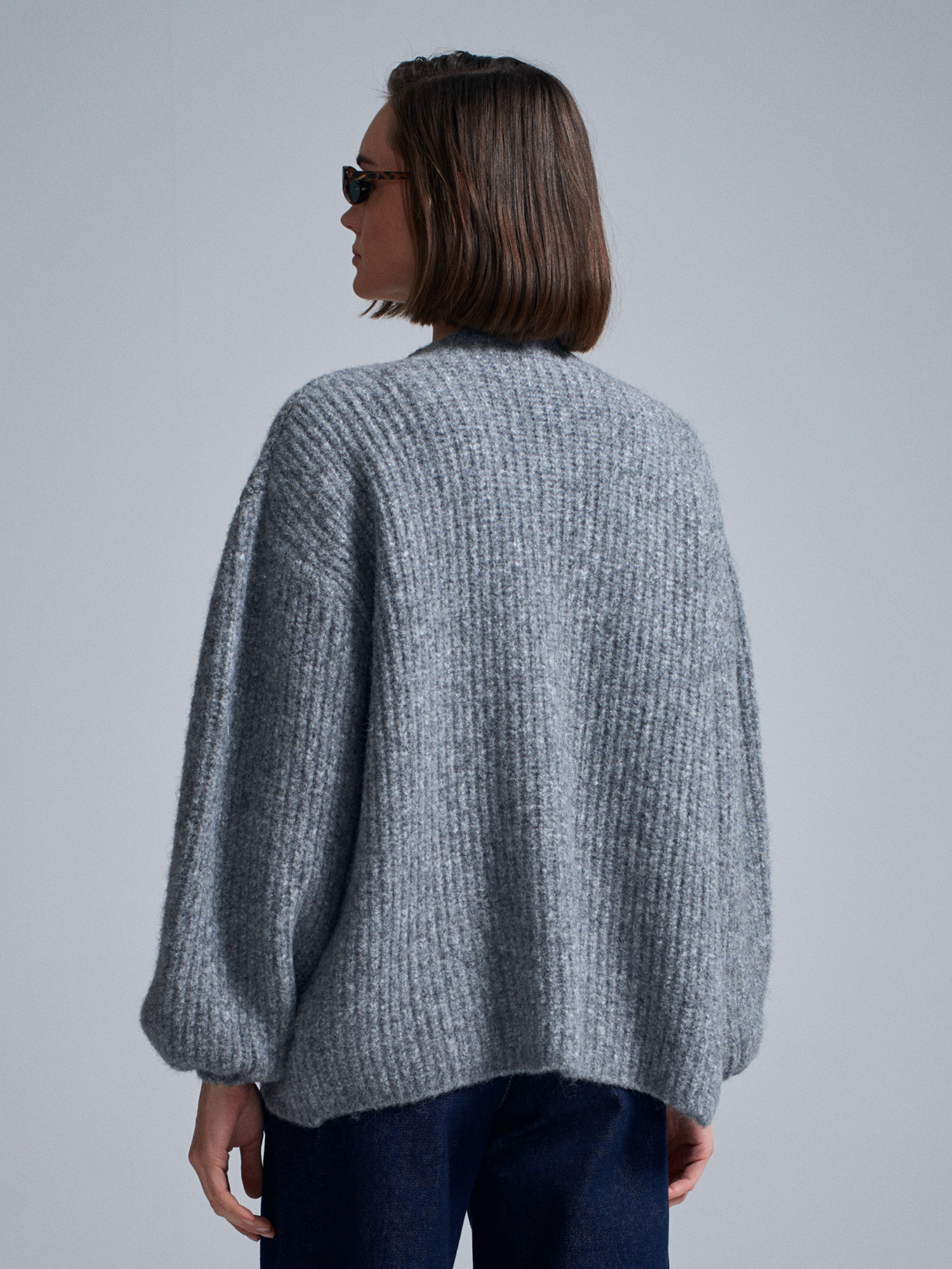60991 Yumuşak Dokulu Dökümlü Triko Hırka-Füme M.