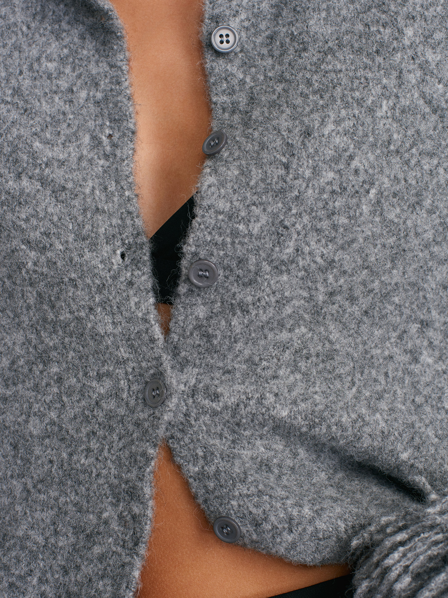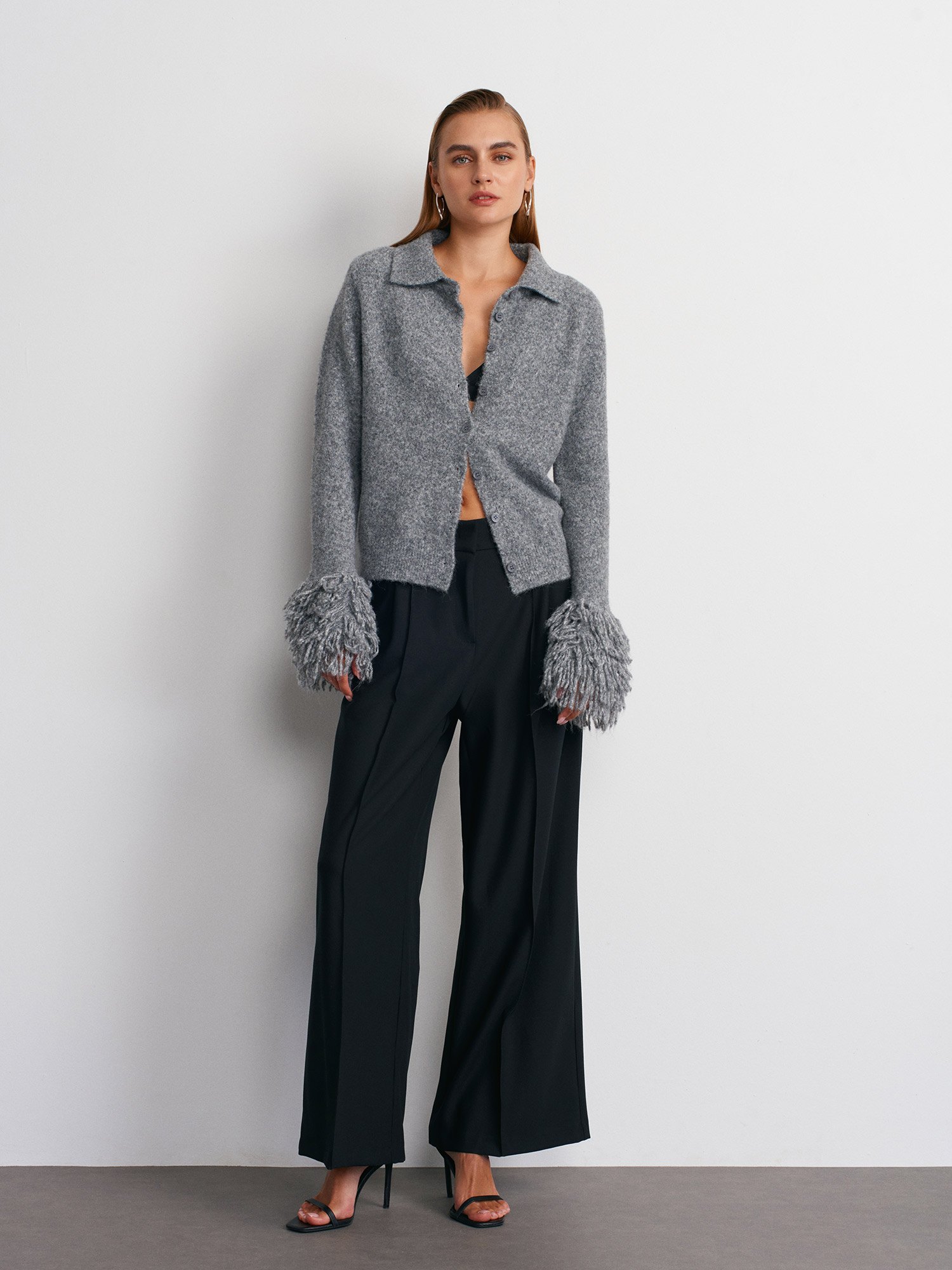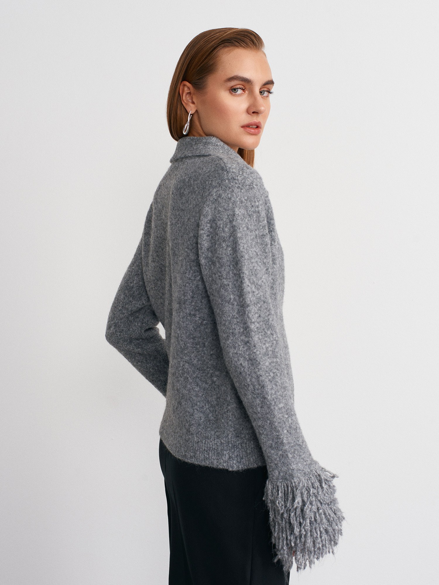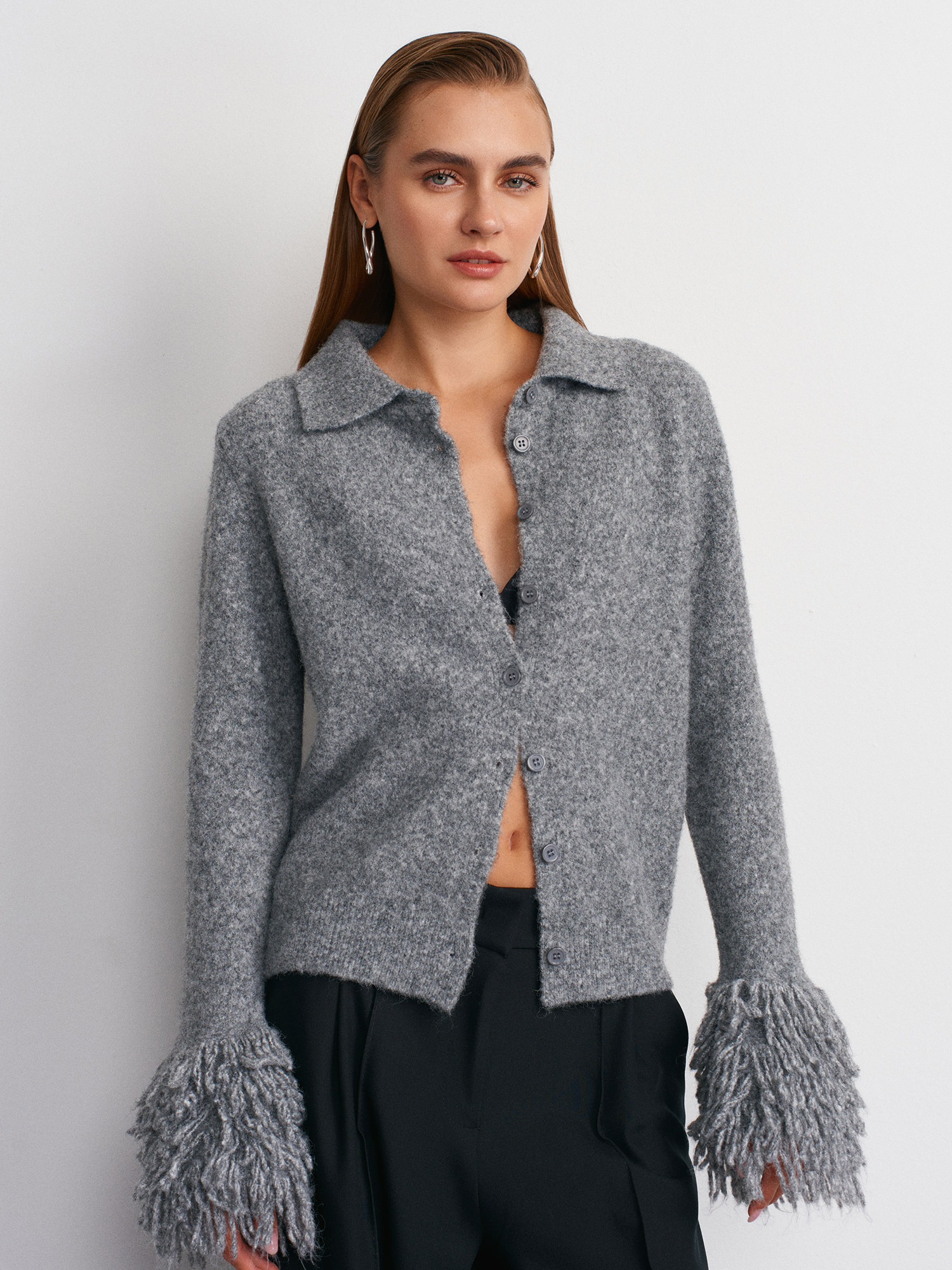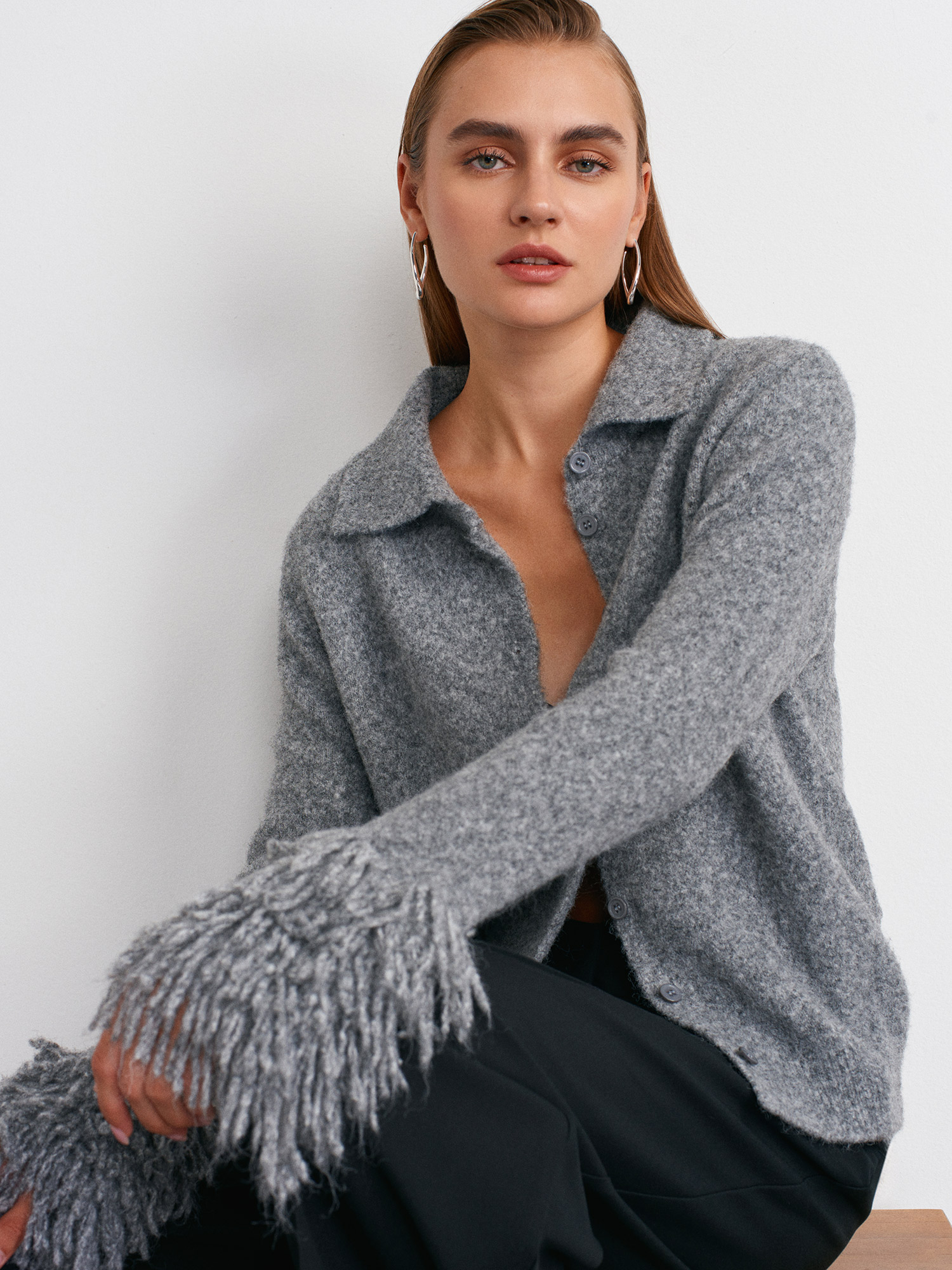 60992 Kolu Püsküllü Triko Hırka-Füme M.