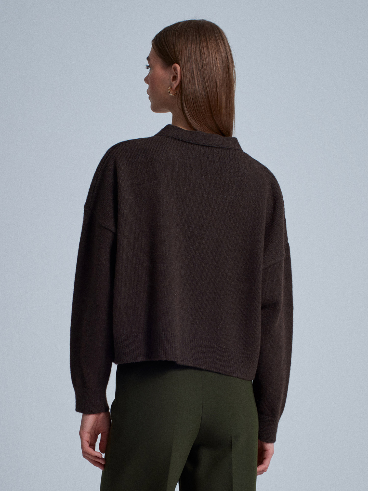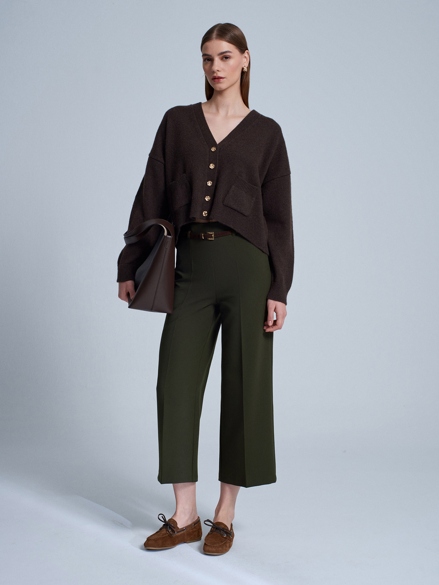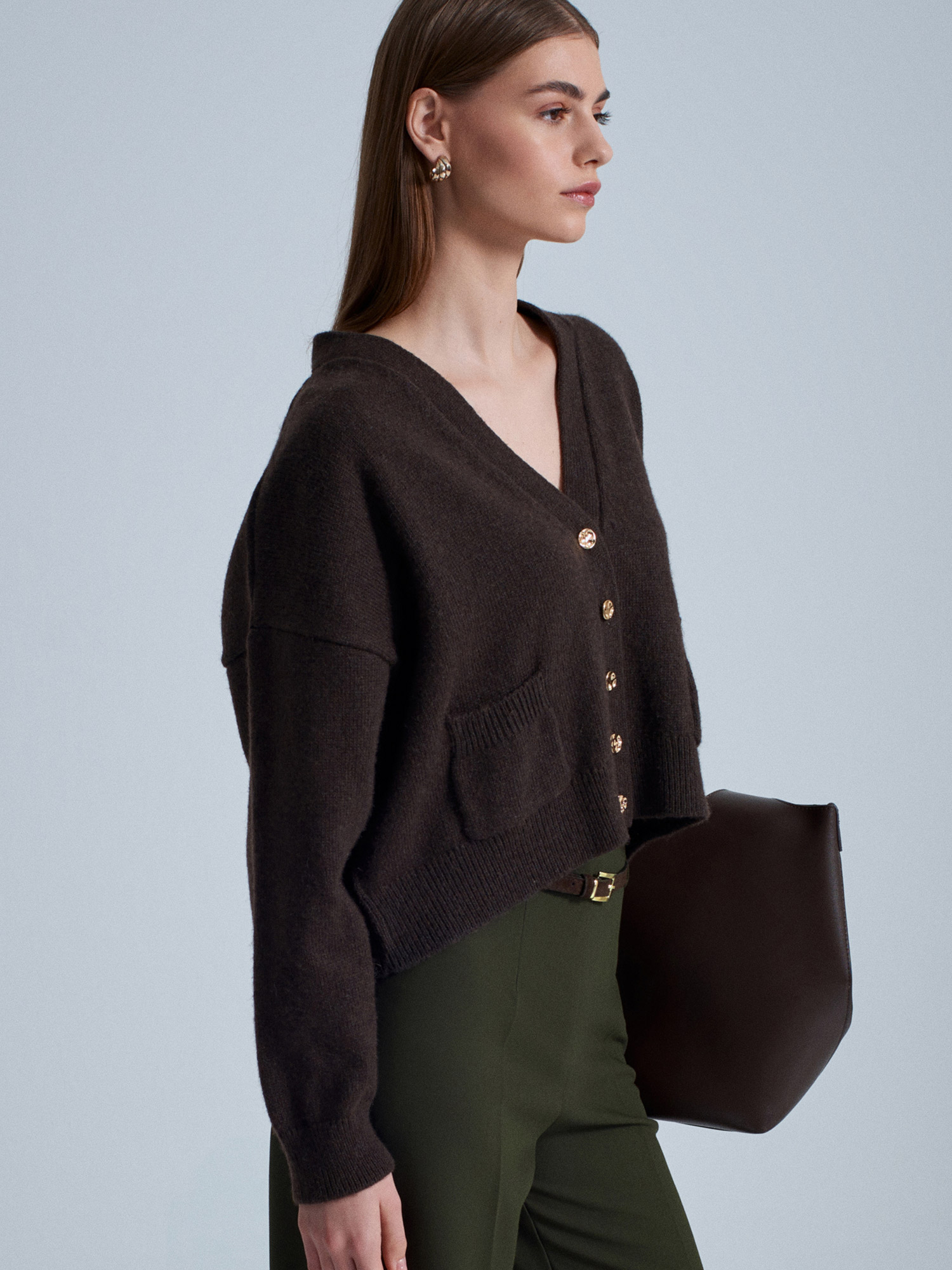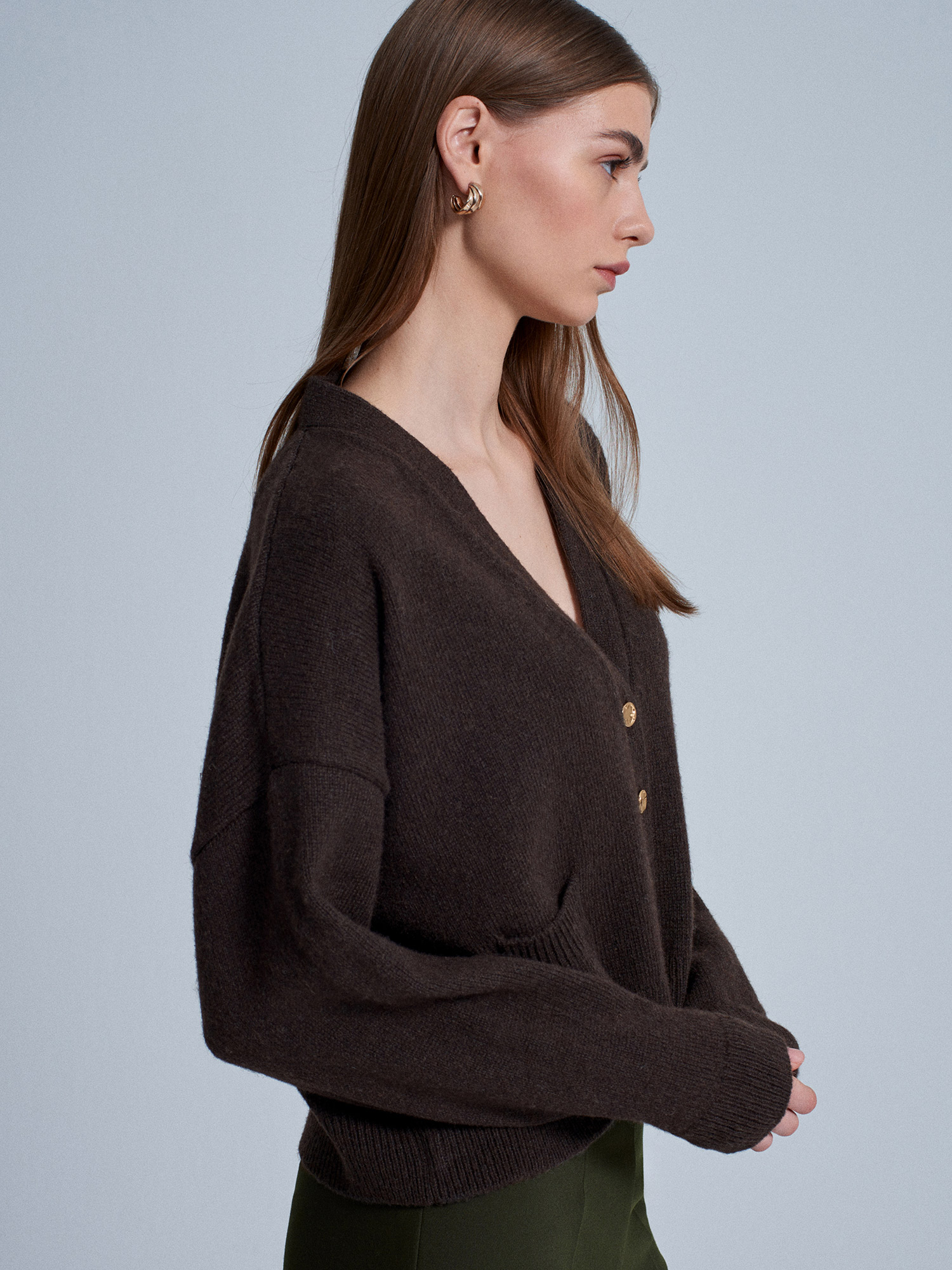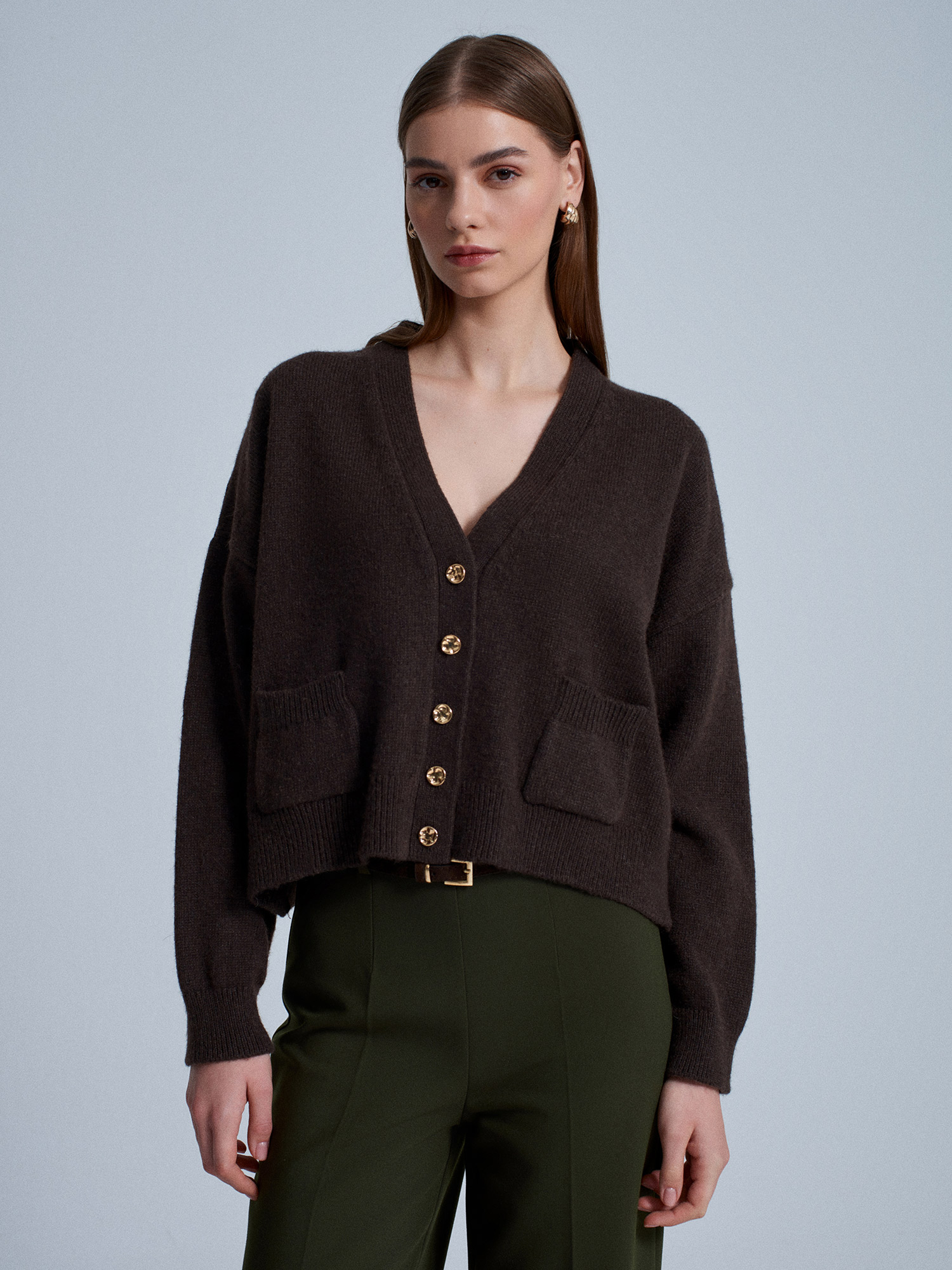 60999 Yün Karışımlı Cep Detaylı Triko Hırka-Kahve