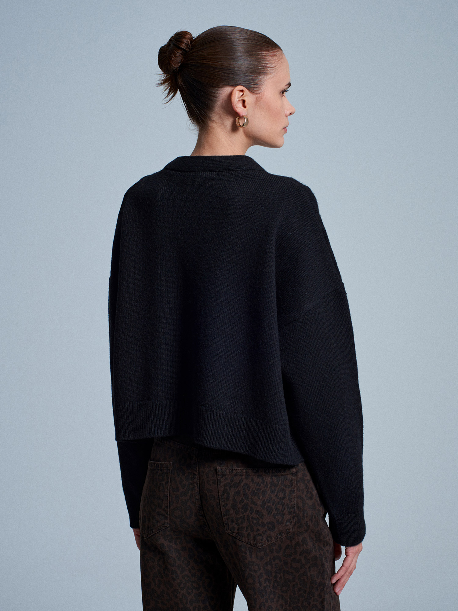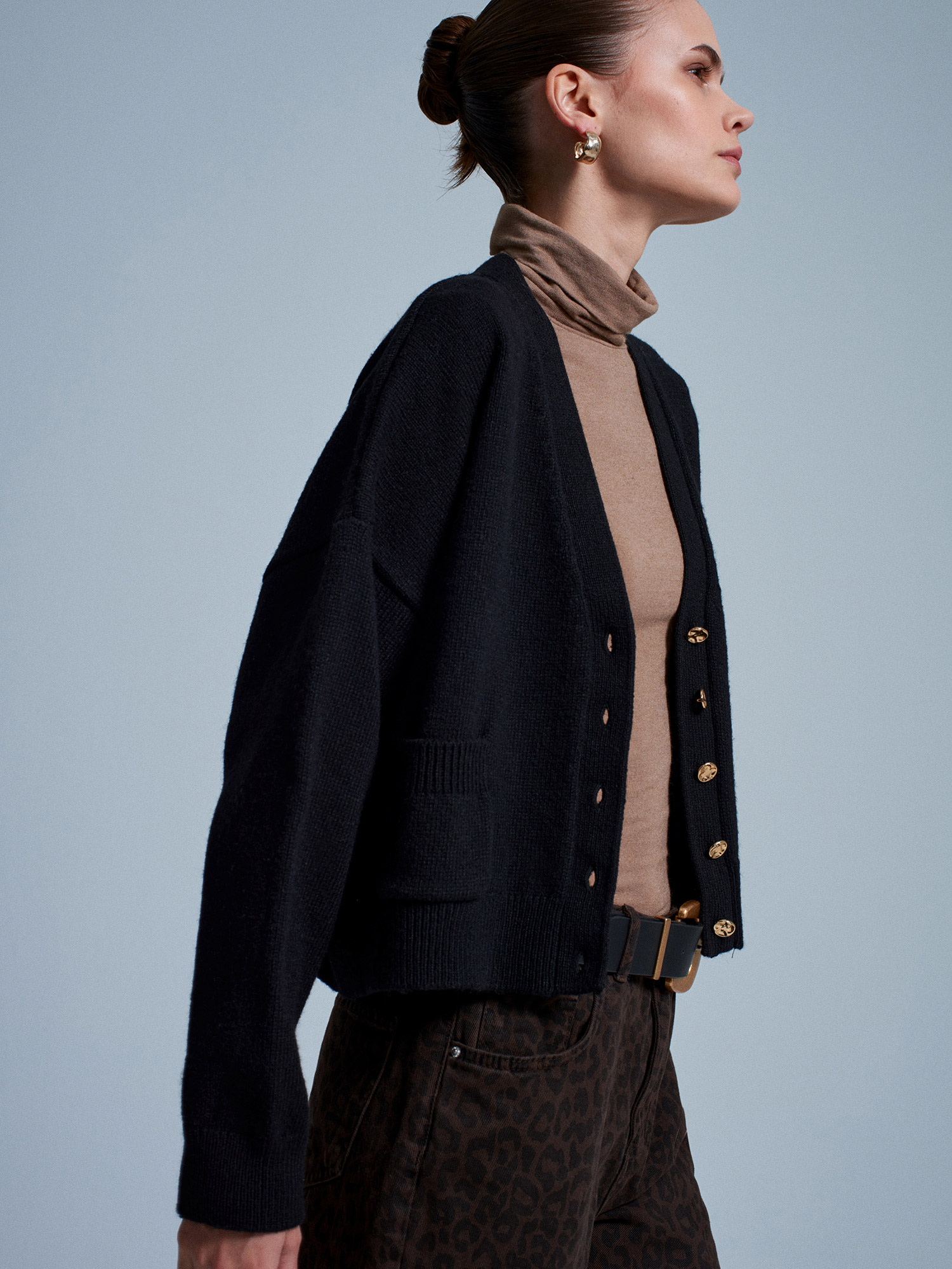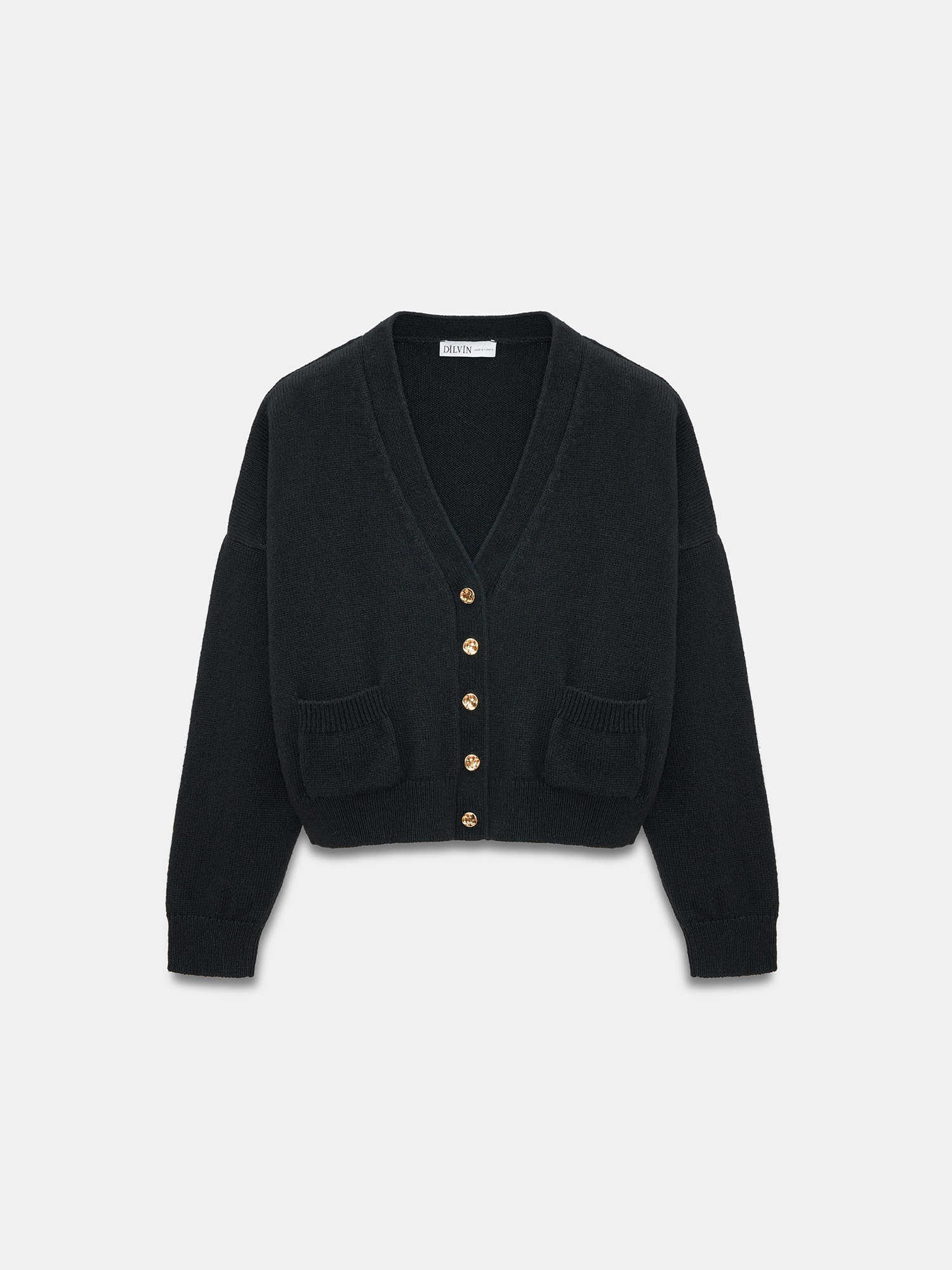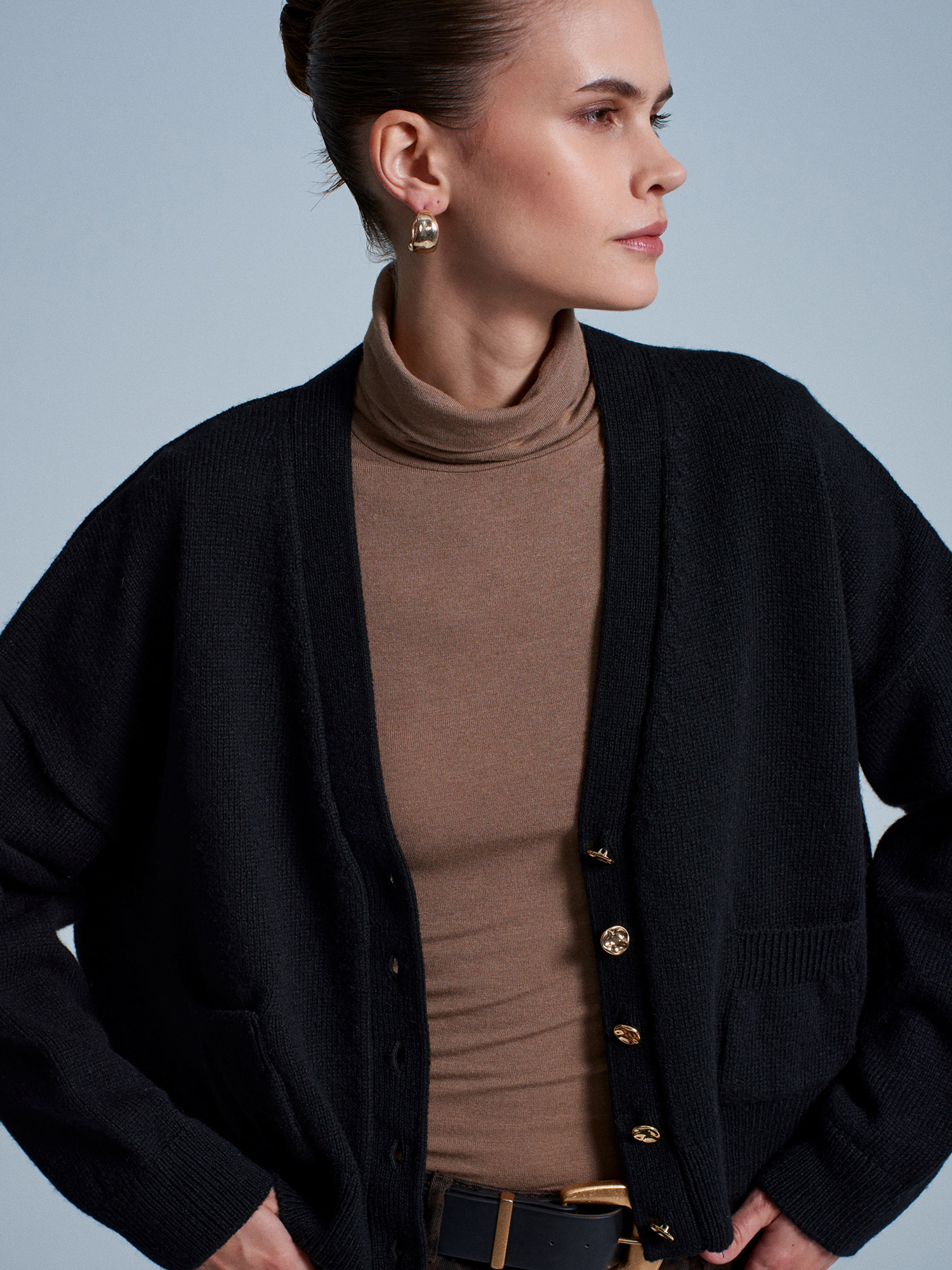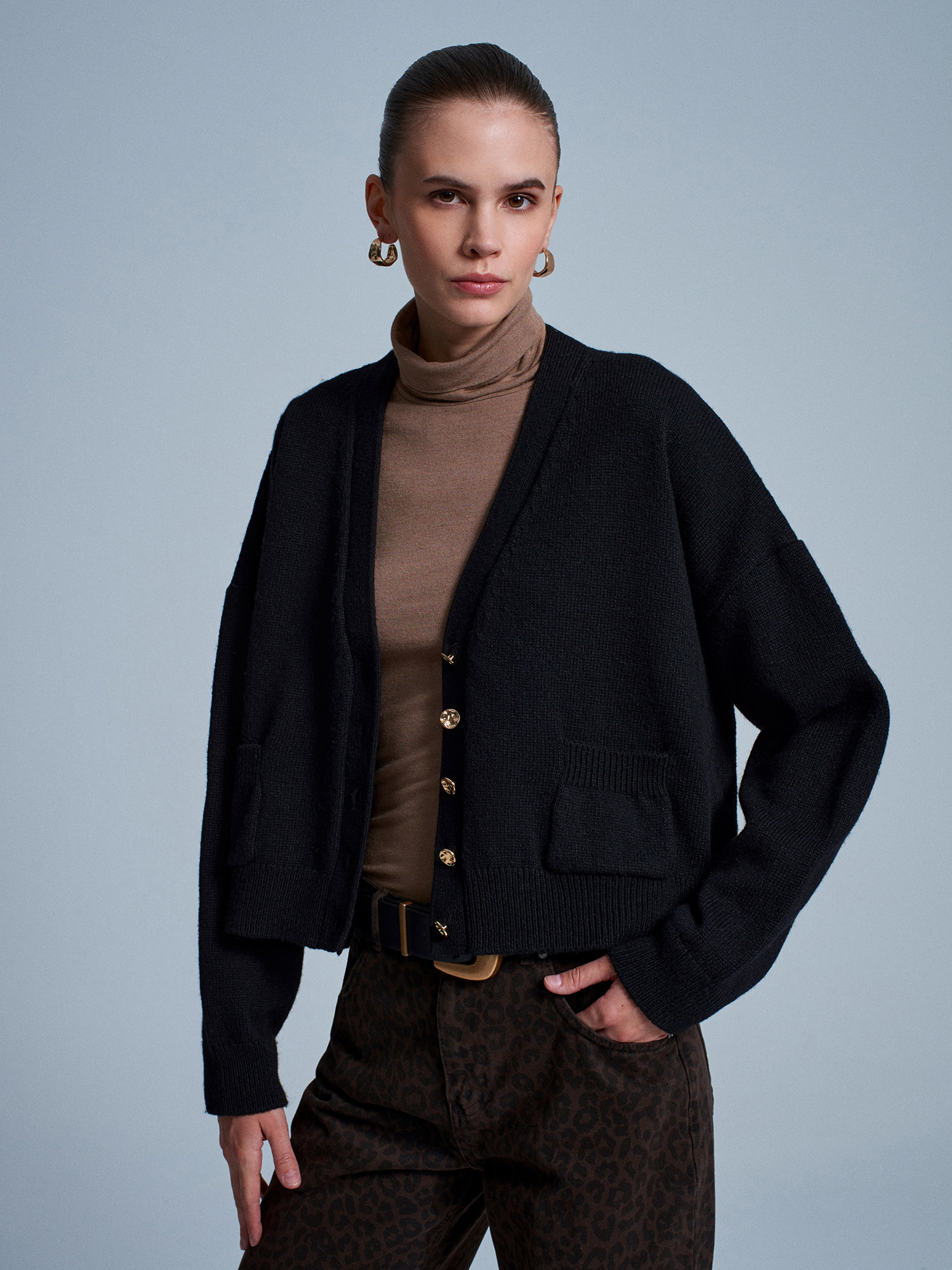60999 Yün Karışımlı Cep Detaylı Triko Hırka-Siyah