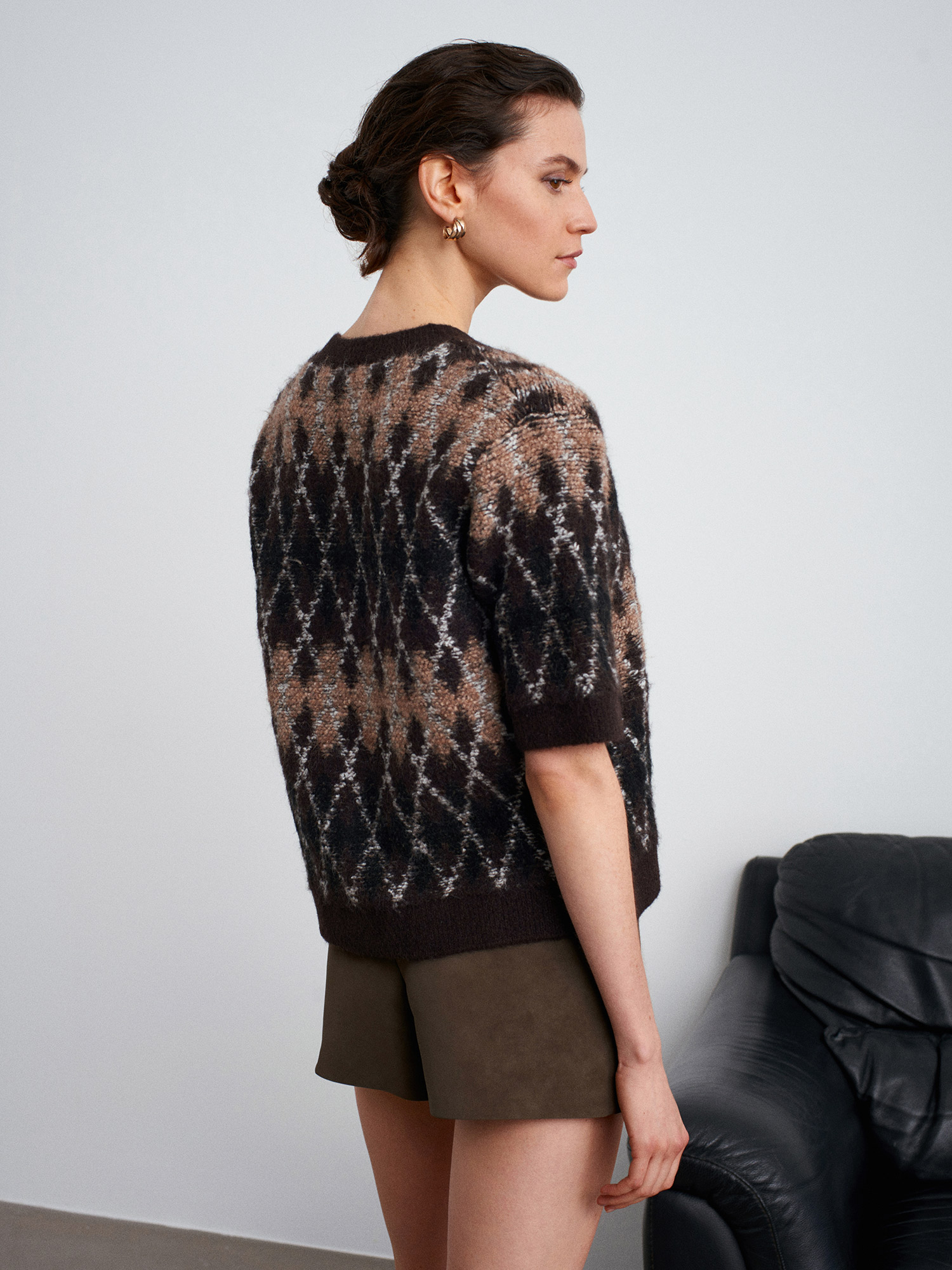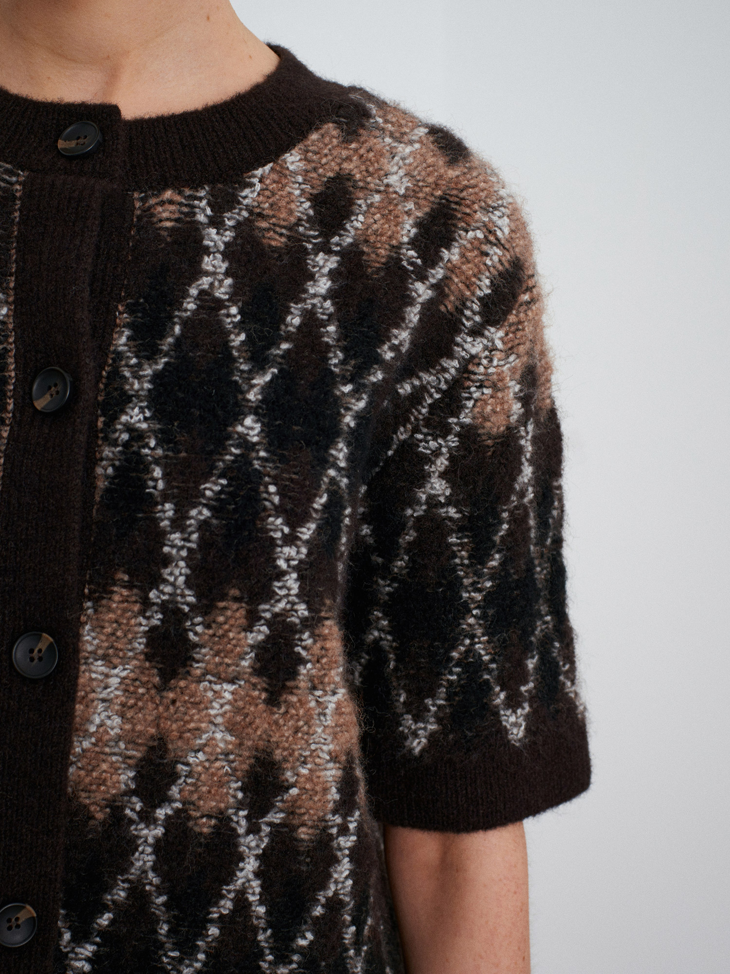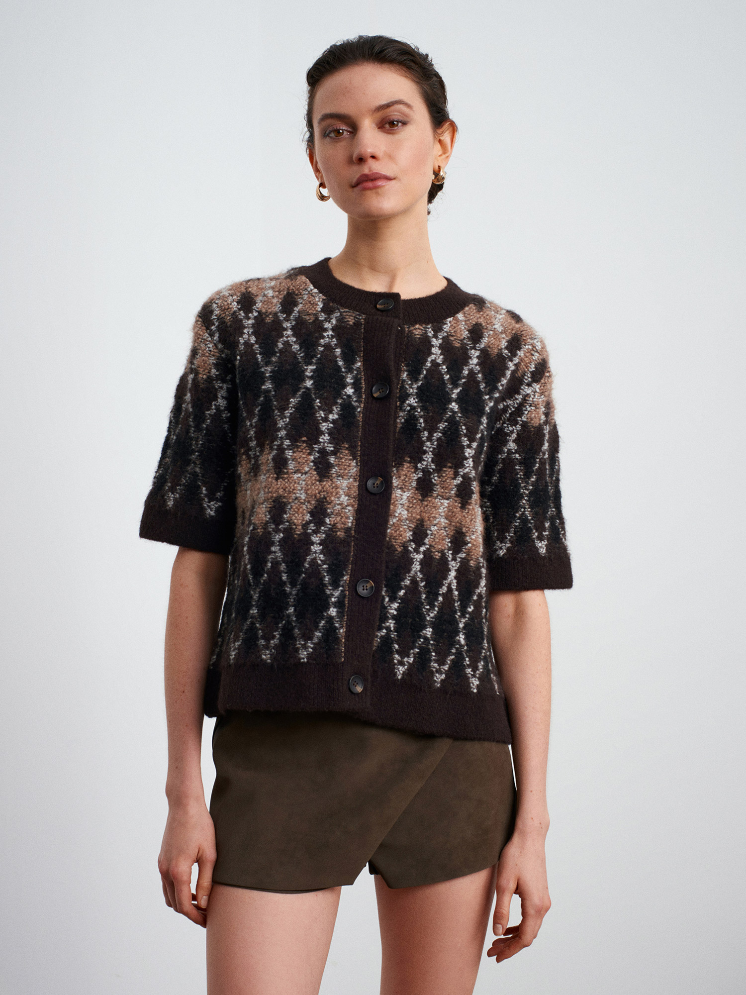61000 Yün Karışımlı Baklava Desenli Triko Hırka-Acı Kahve