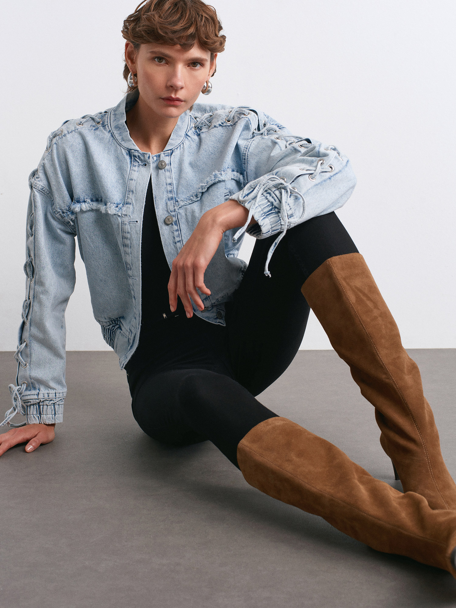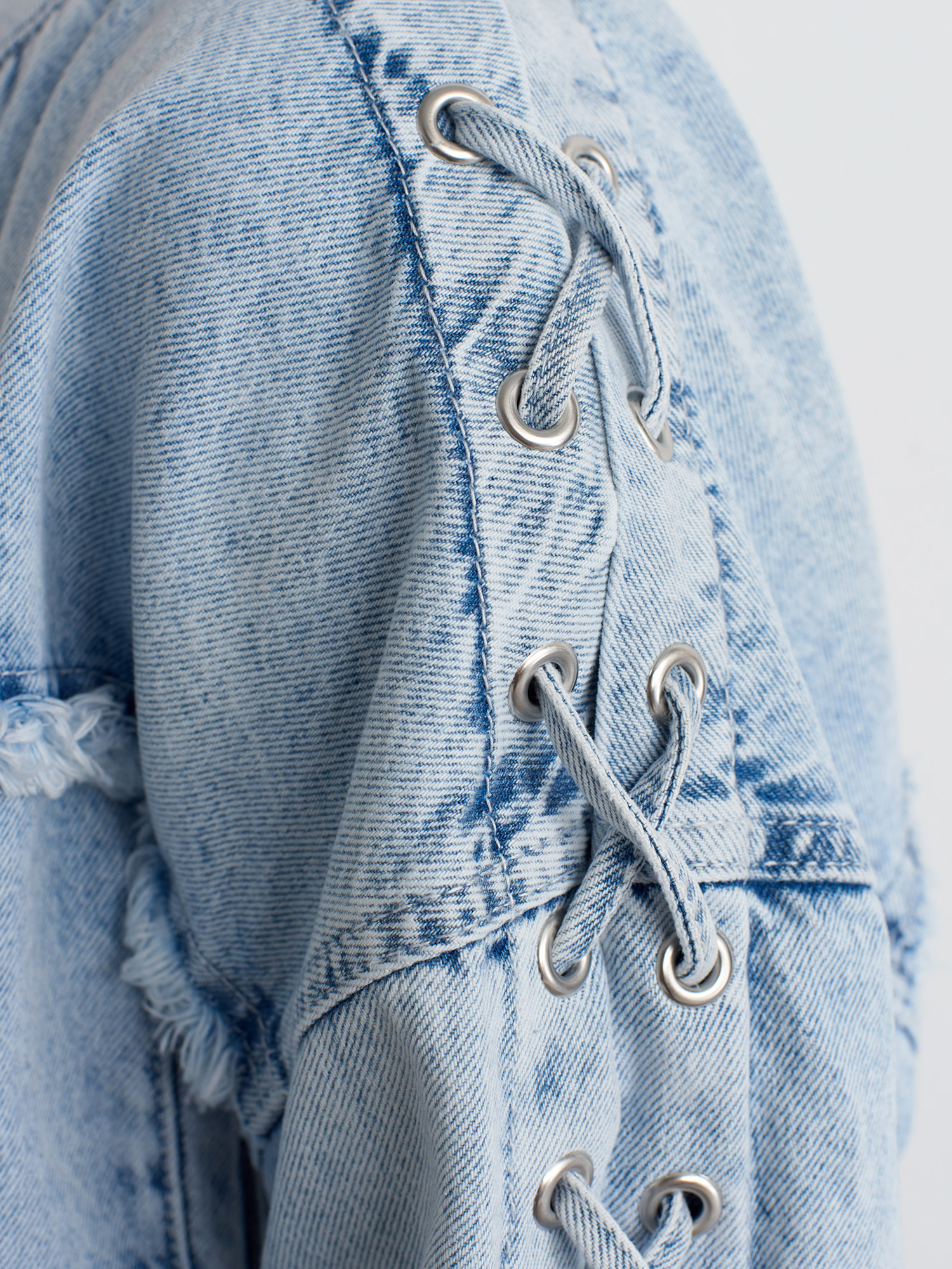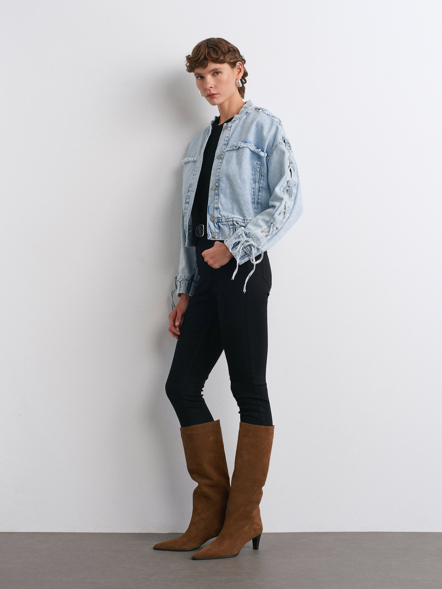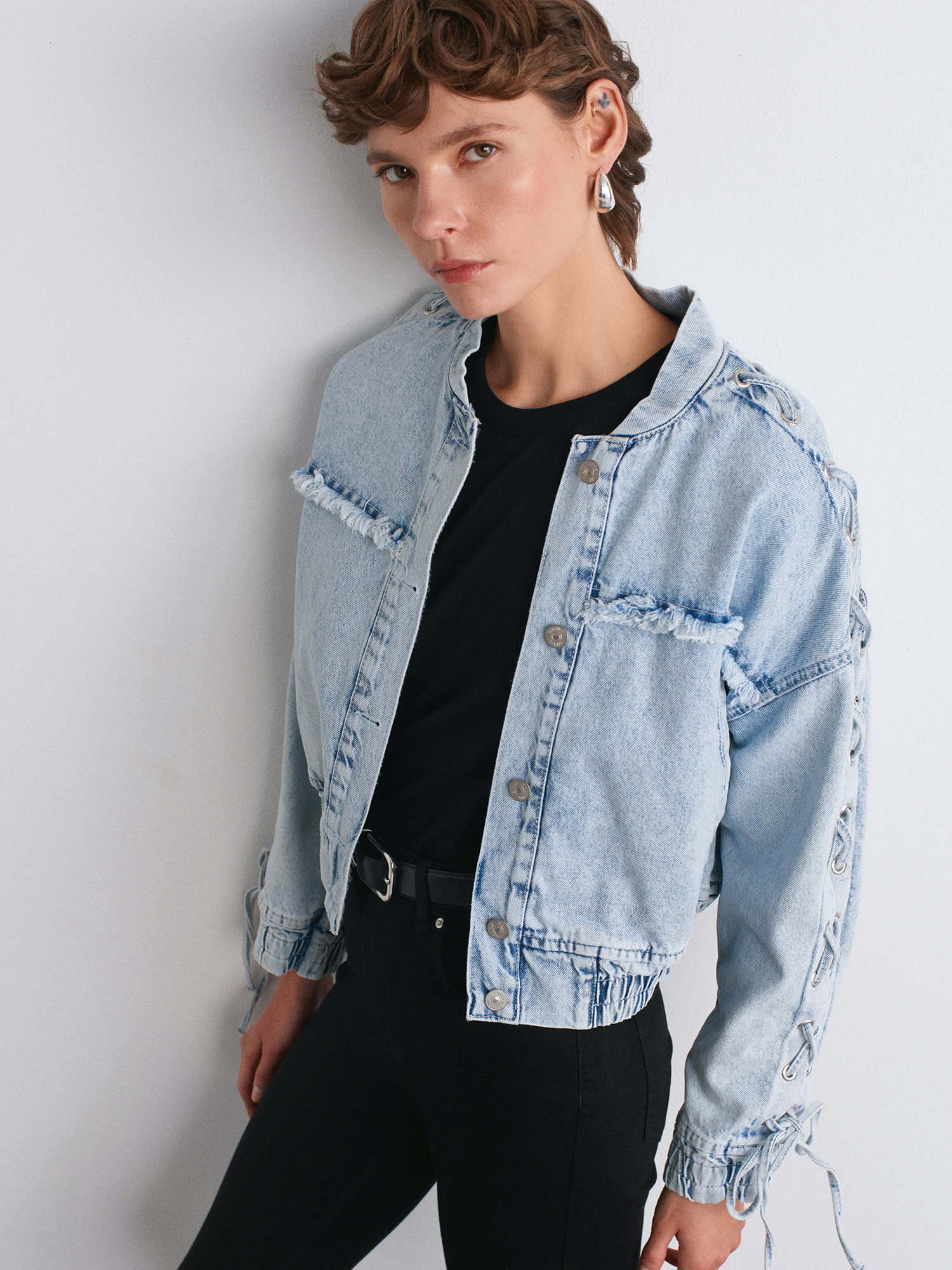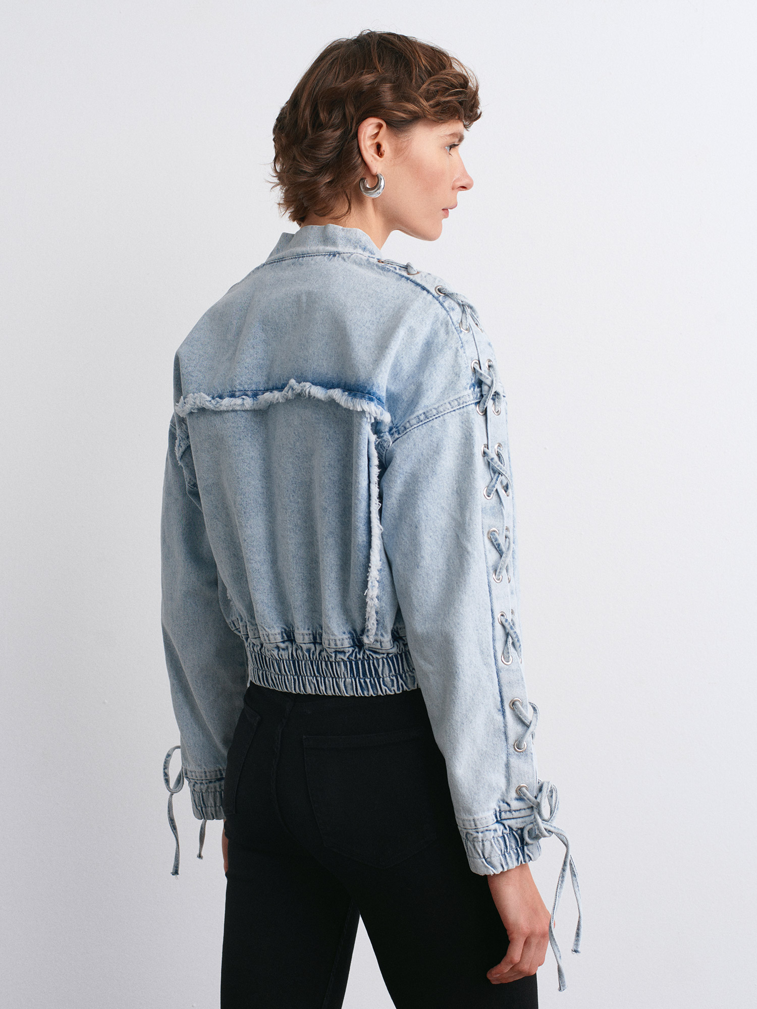 65367 Kolları Zımbalı Bomber Denim Mont-Mavi