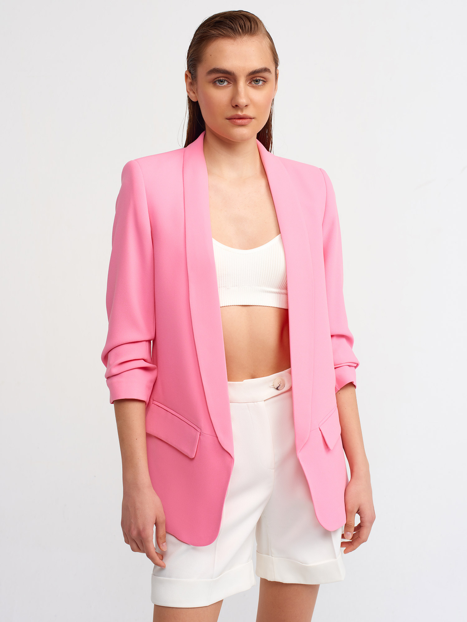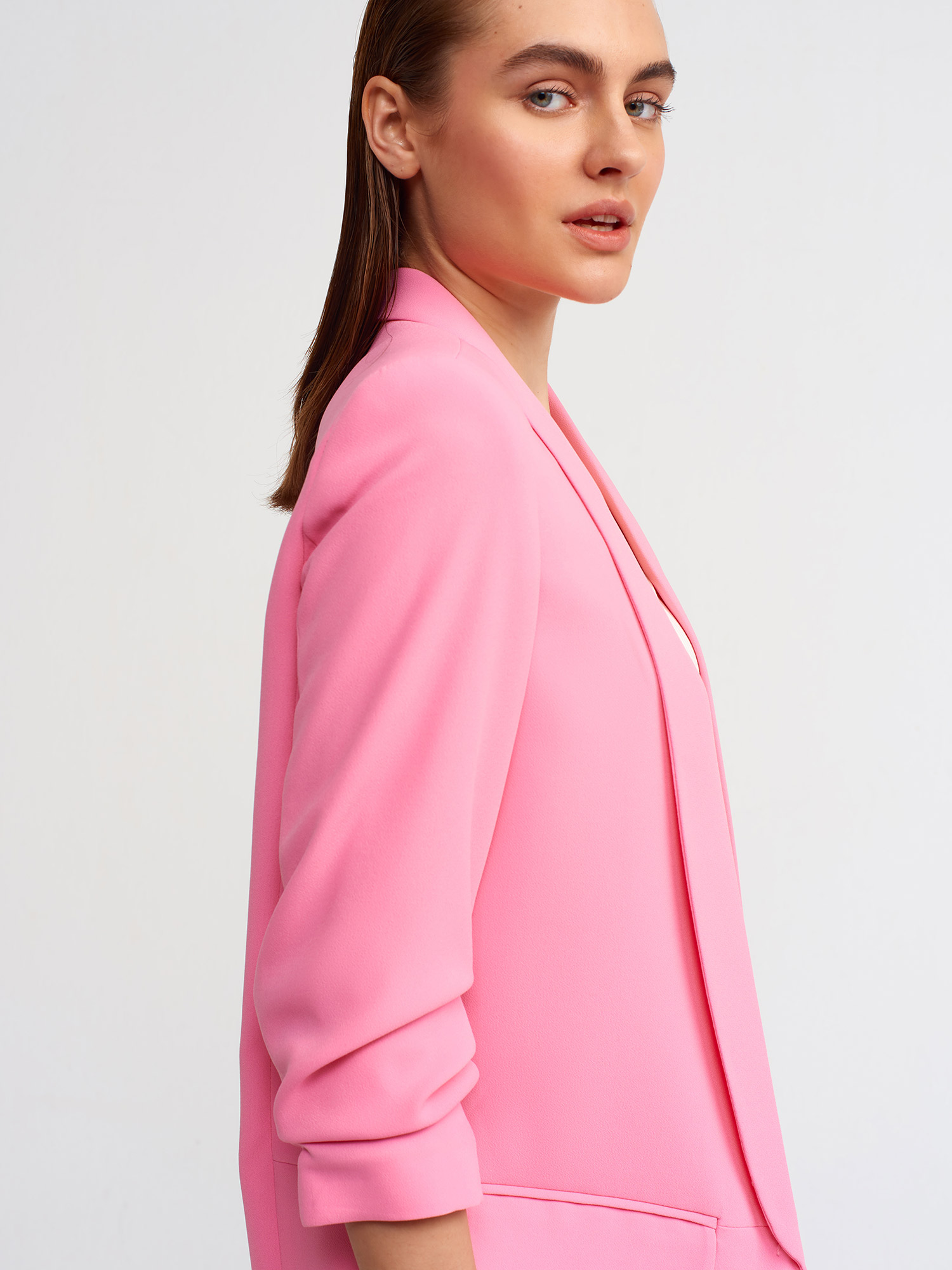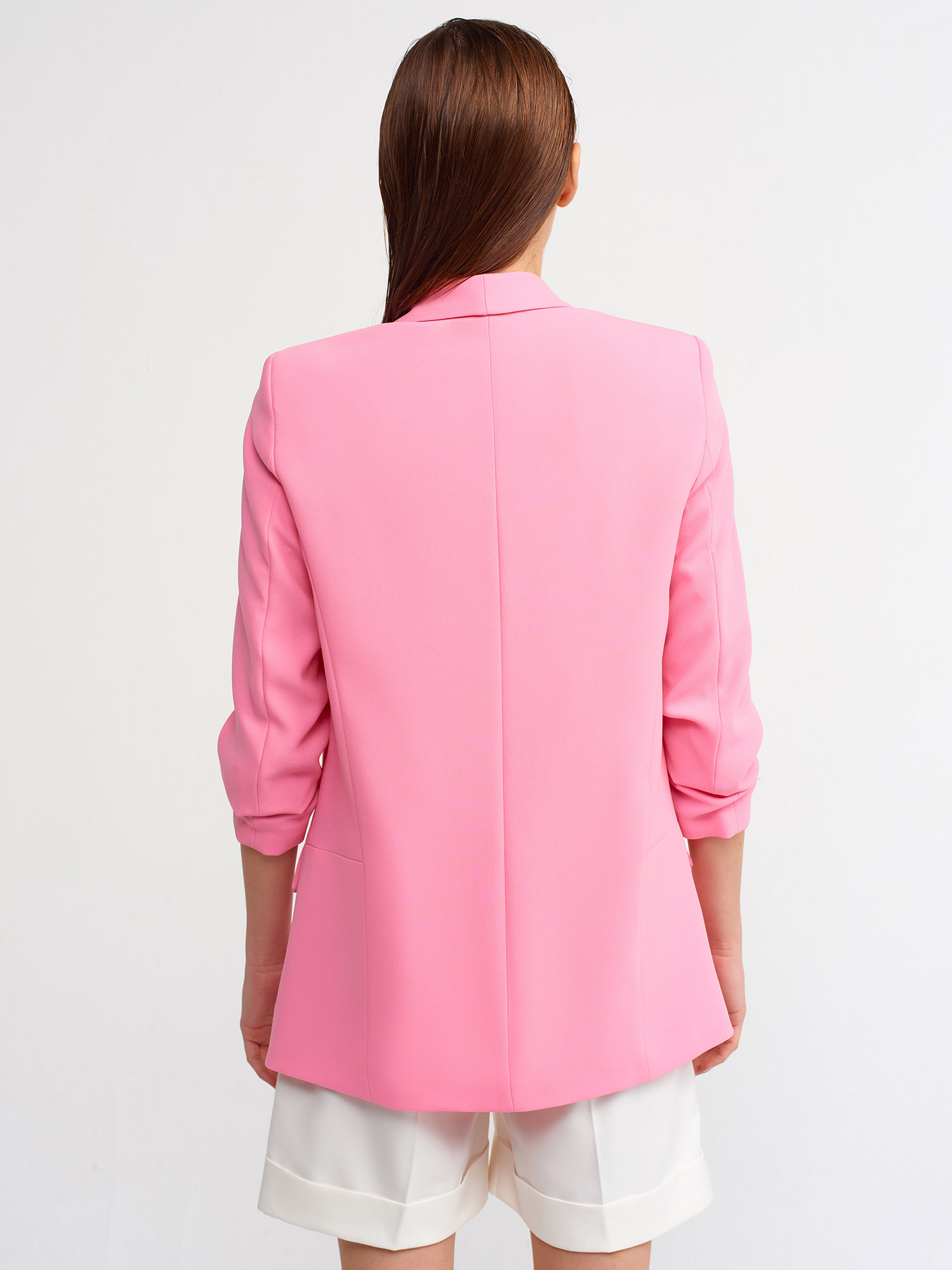 6702 Kol Büzgülü Boyfriend Ceket-Pembe
