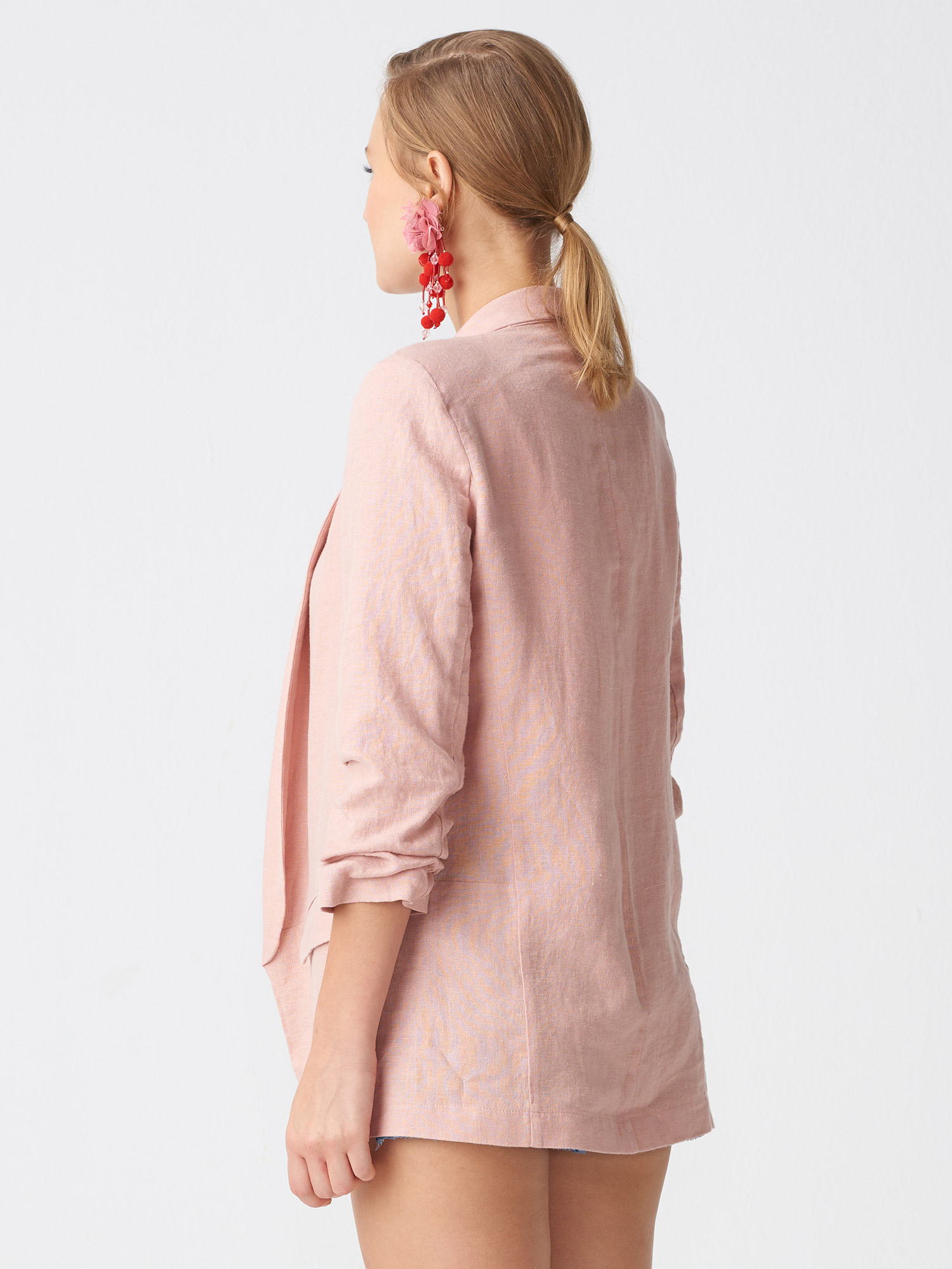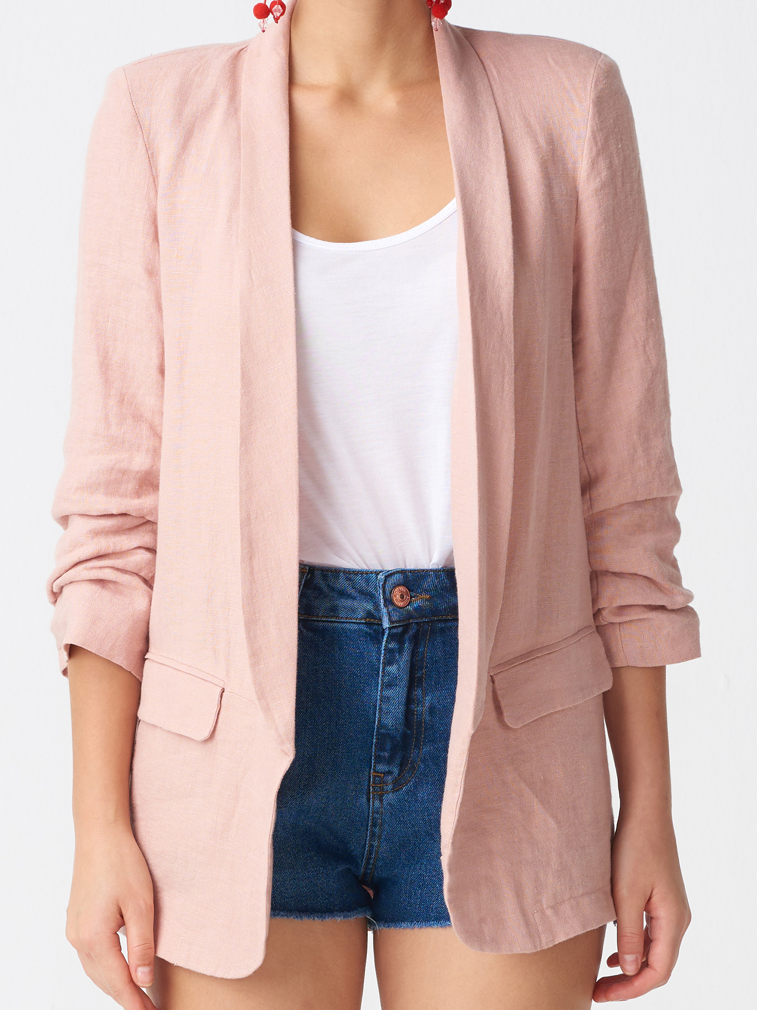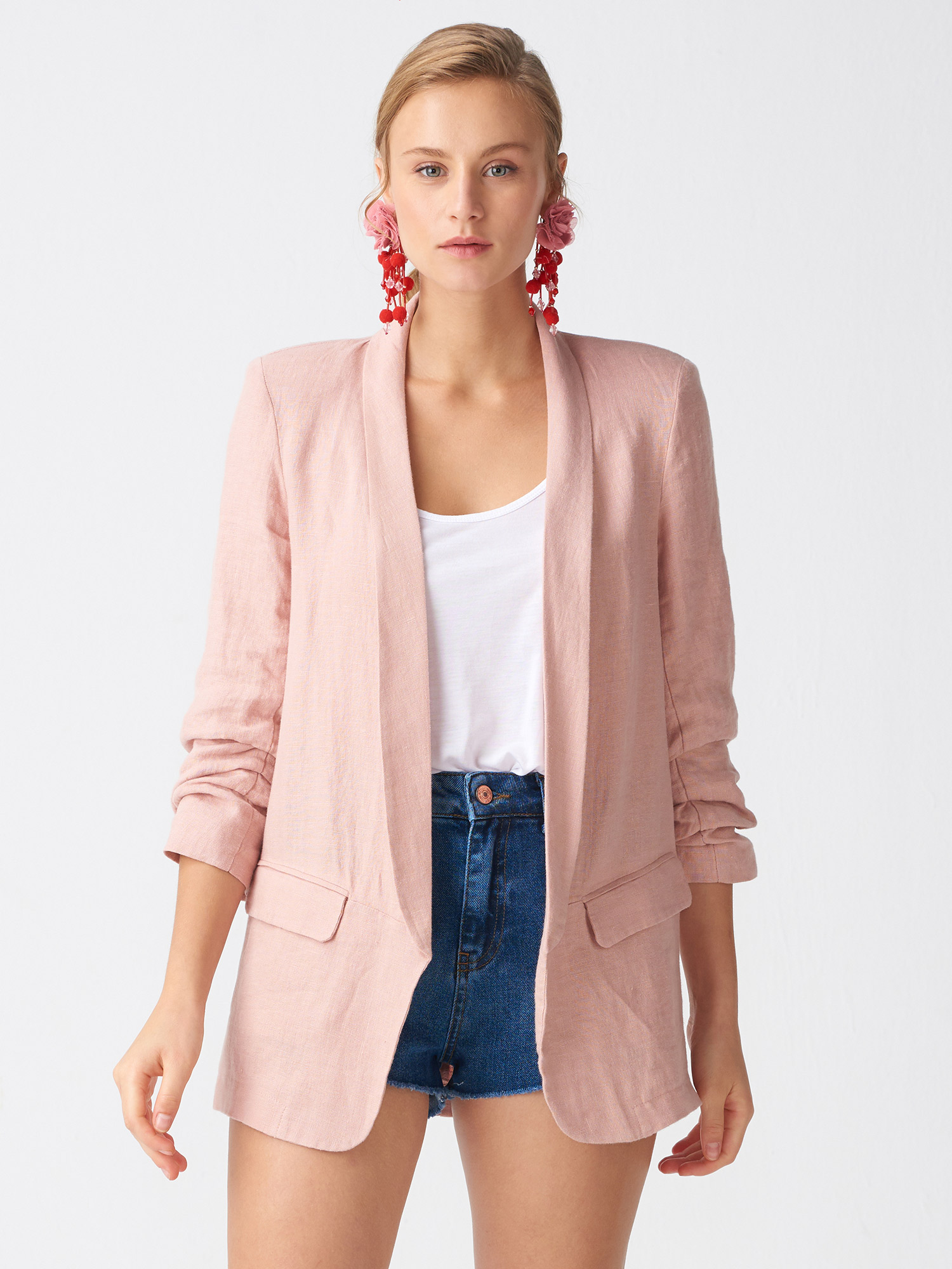 6736 Kol Büzgülü Keten Ceket-Pudra