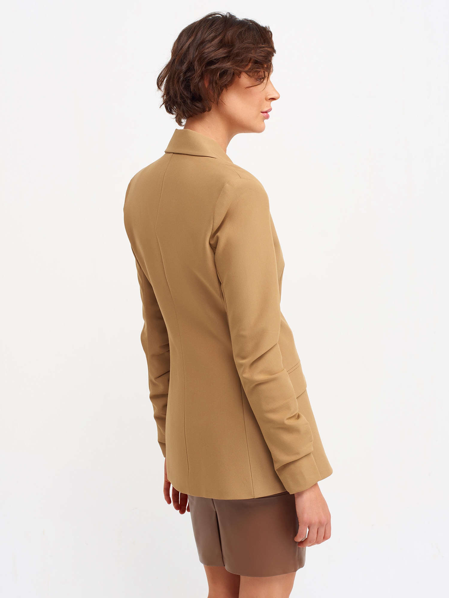 6892 Kolları Büzgülü Blazer-Koyu Camel