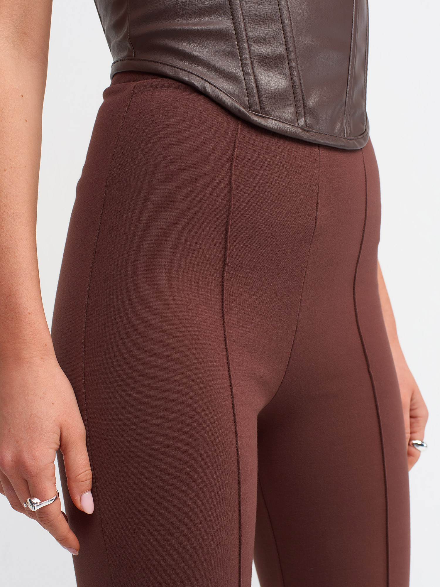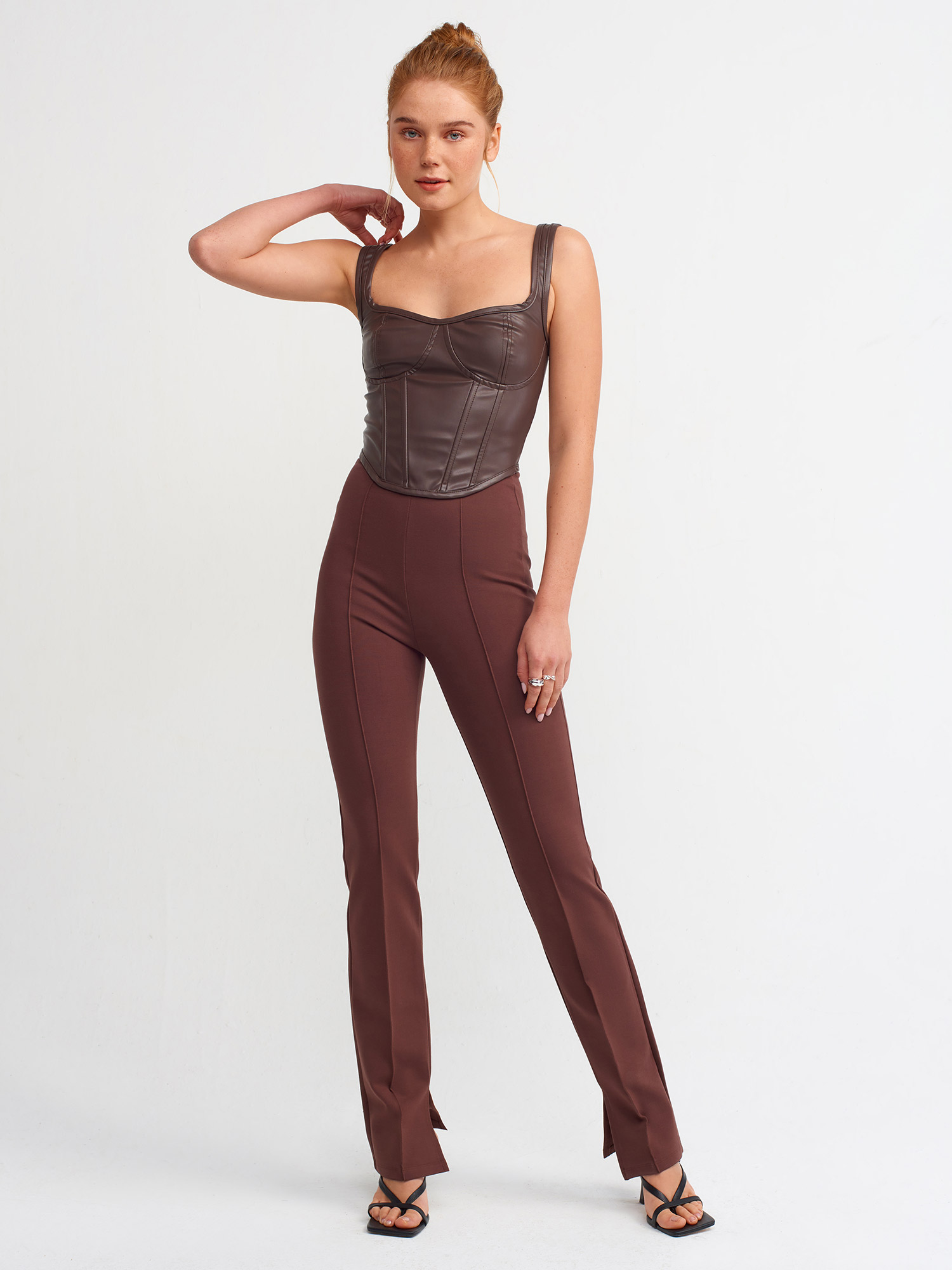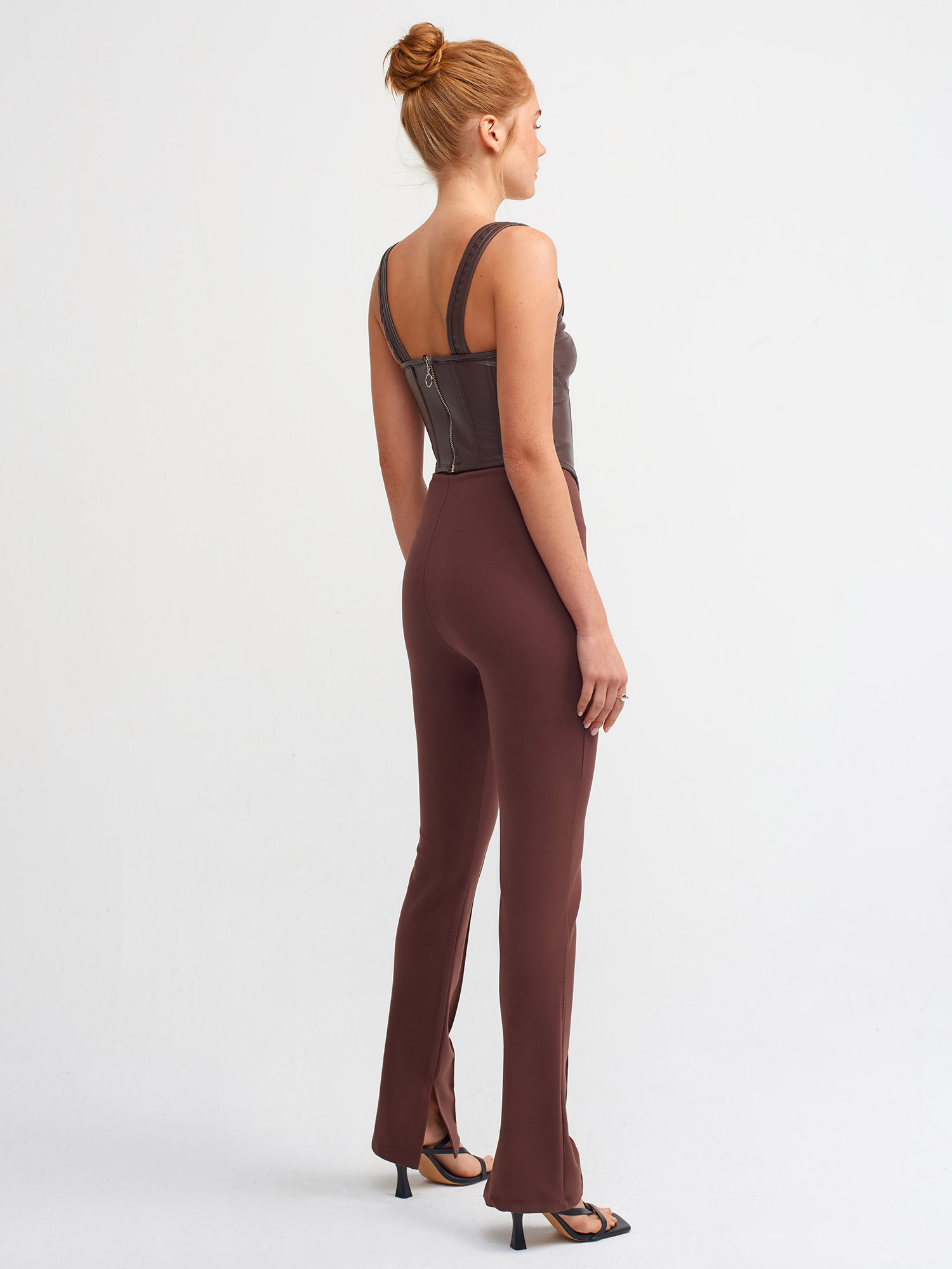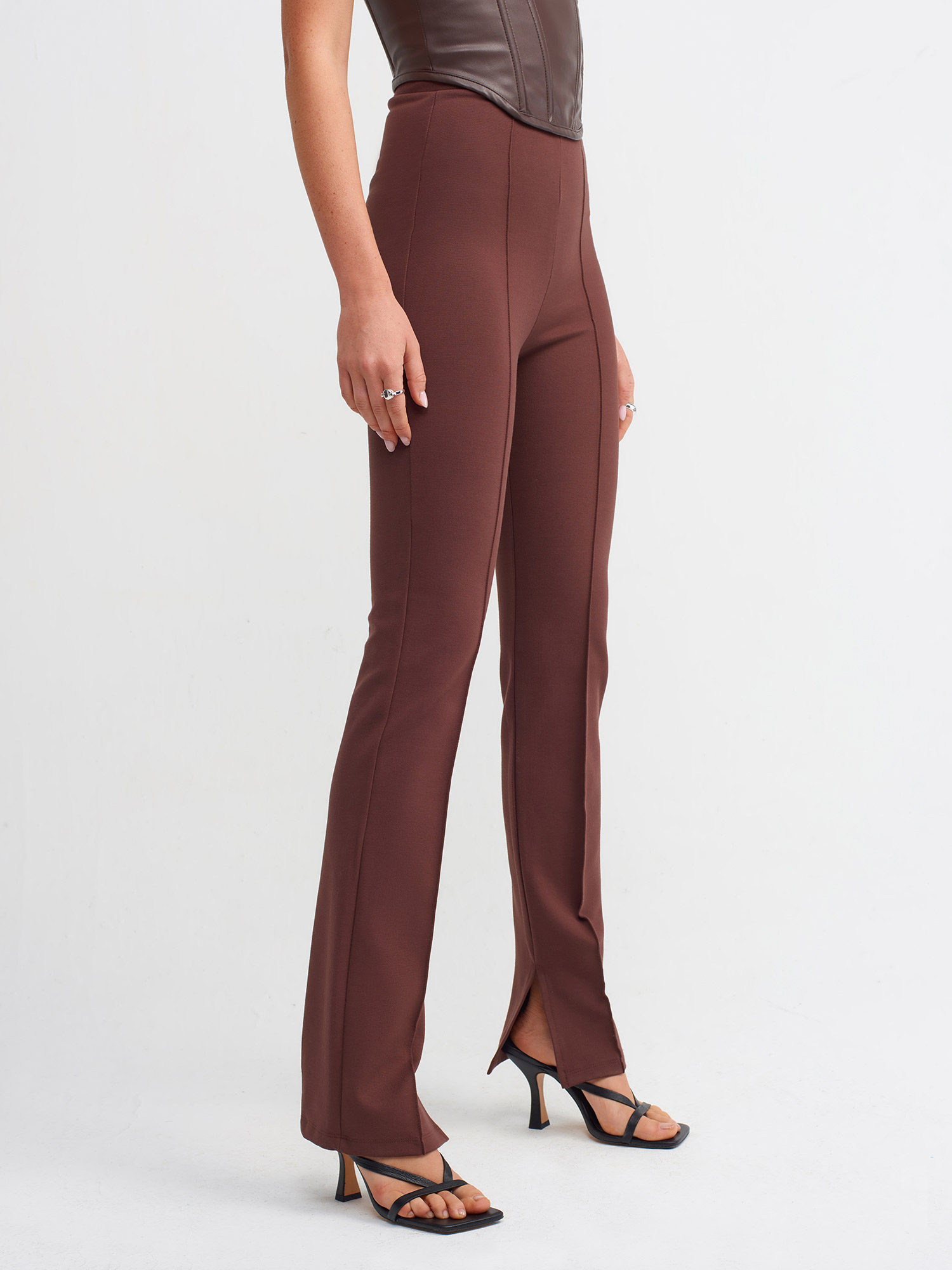 7008 Yırtmaç Detaylı Örme Pantolon-Kahve