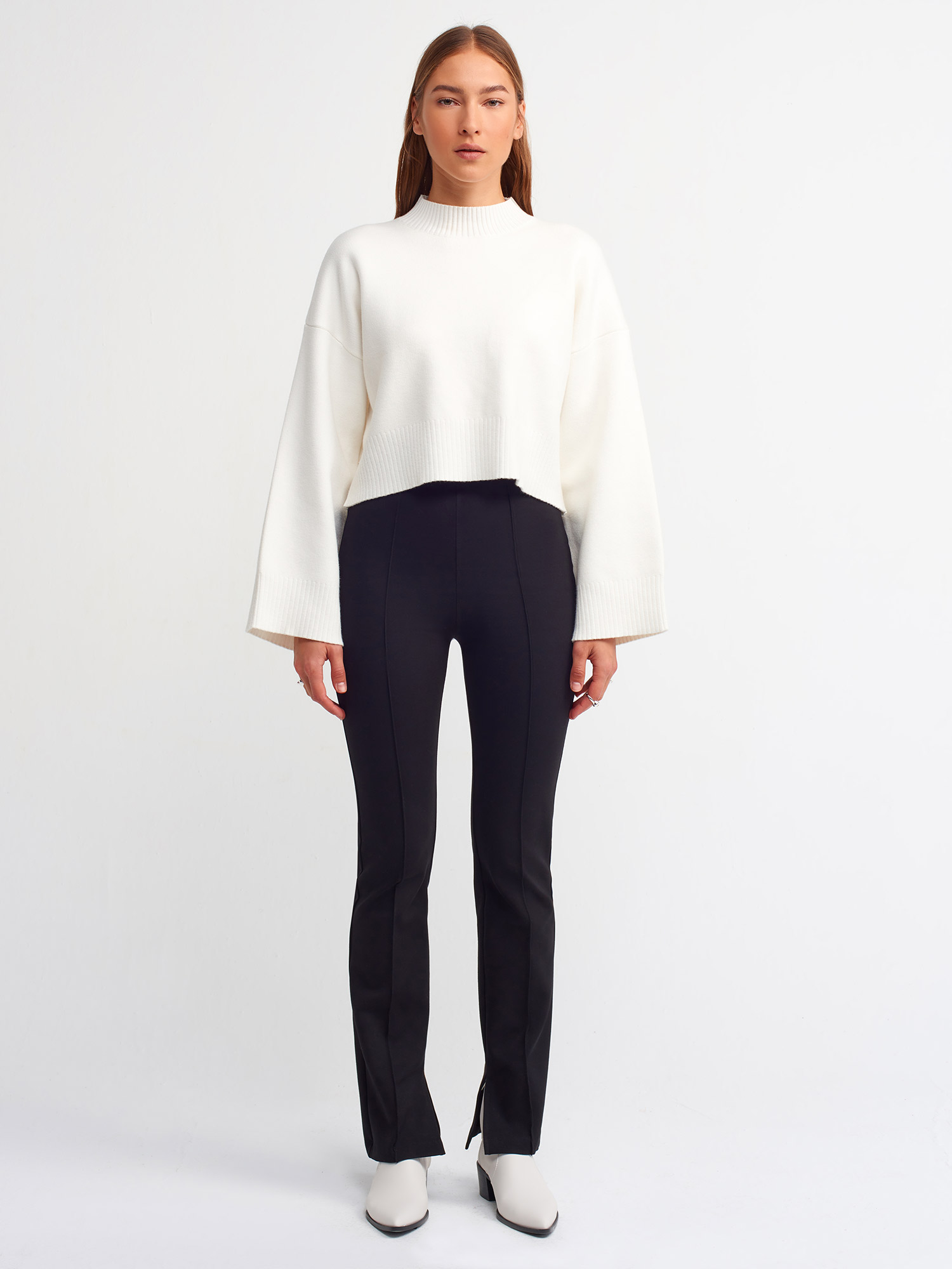7008 Yırtmaç Detaylı Örme Pantolon-Siyah