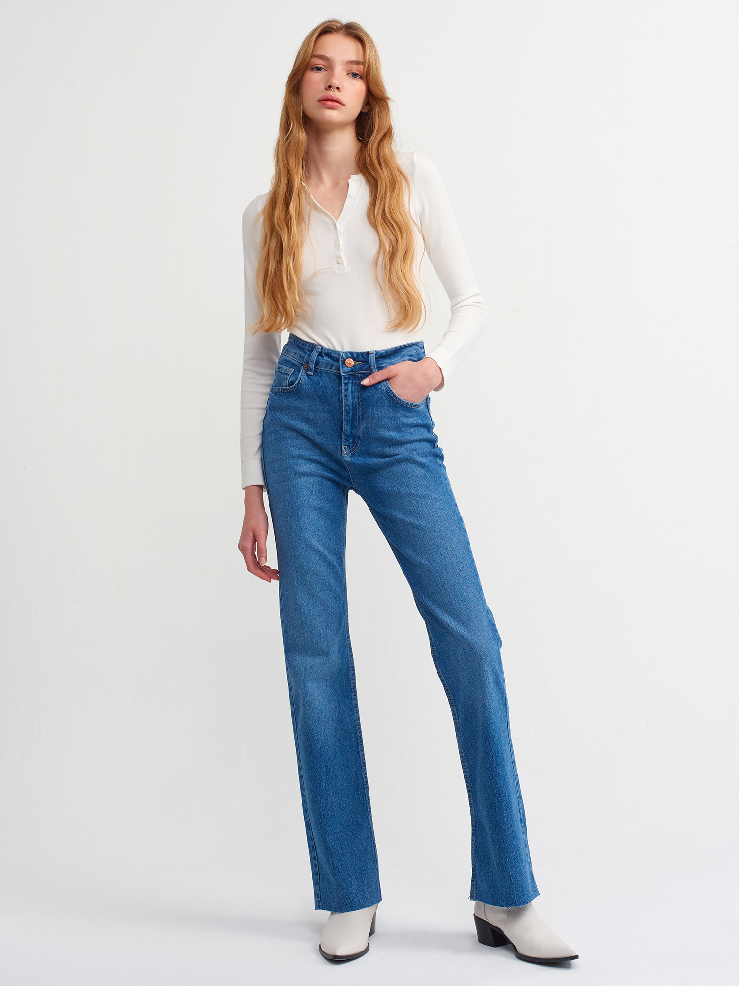 70205 Kar Yıkama Flare Pantolon-Mavi