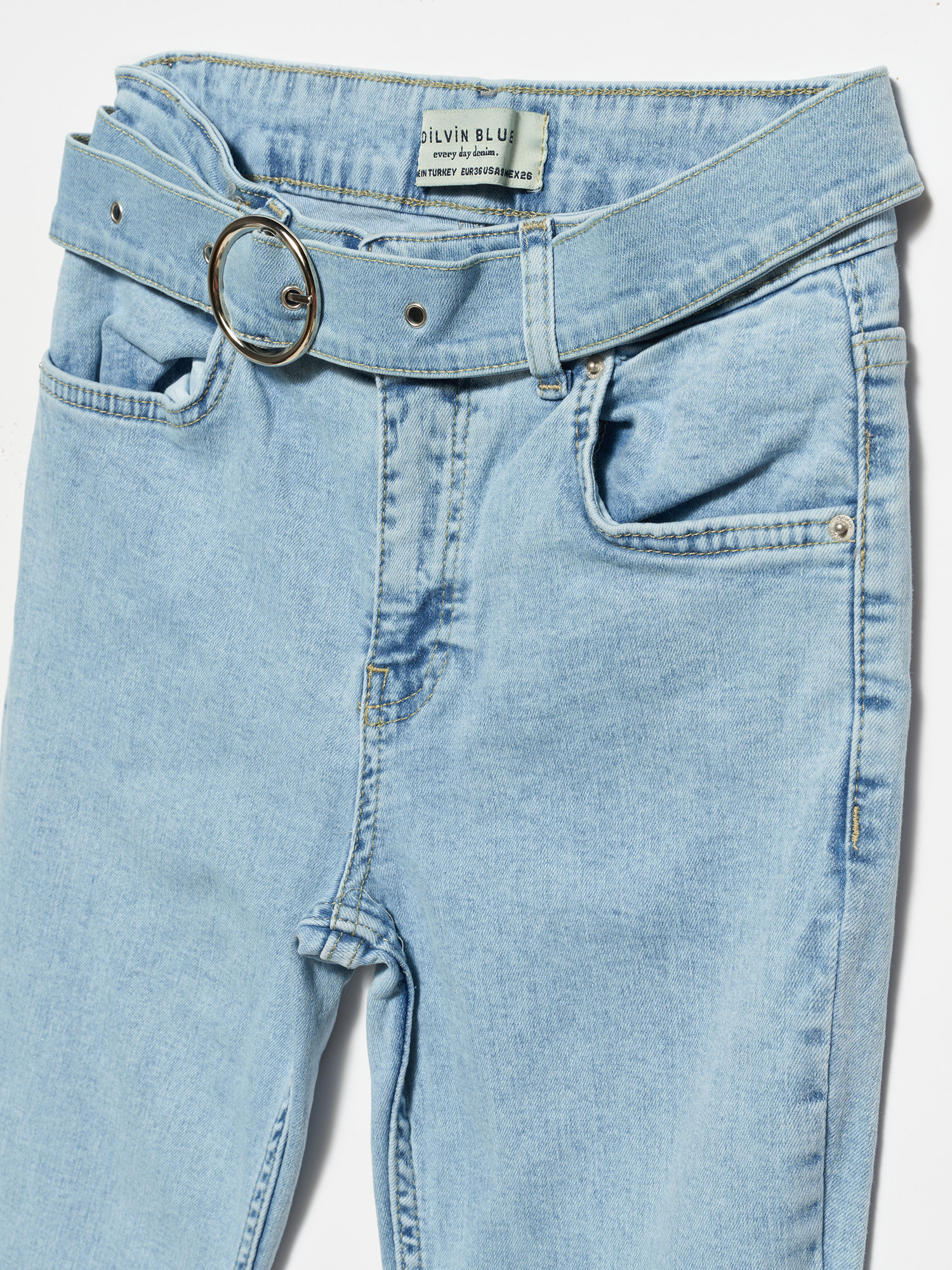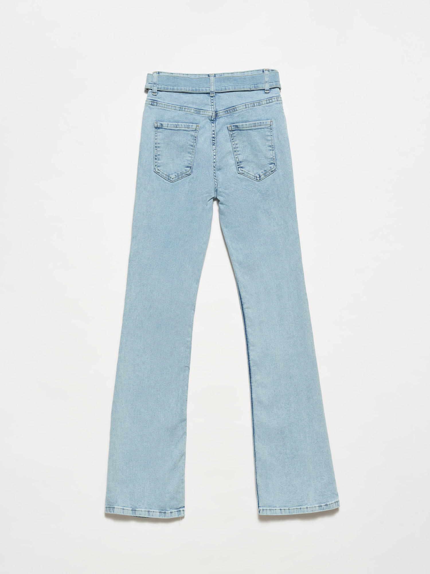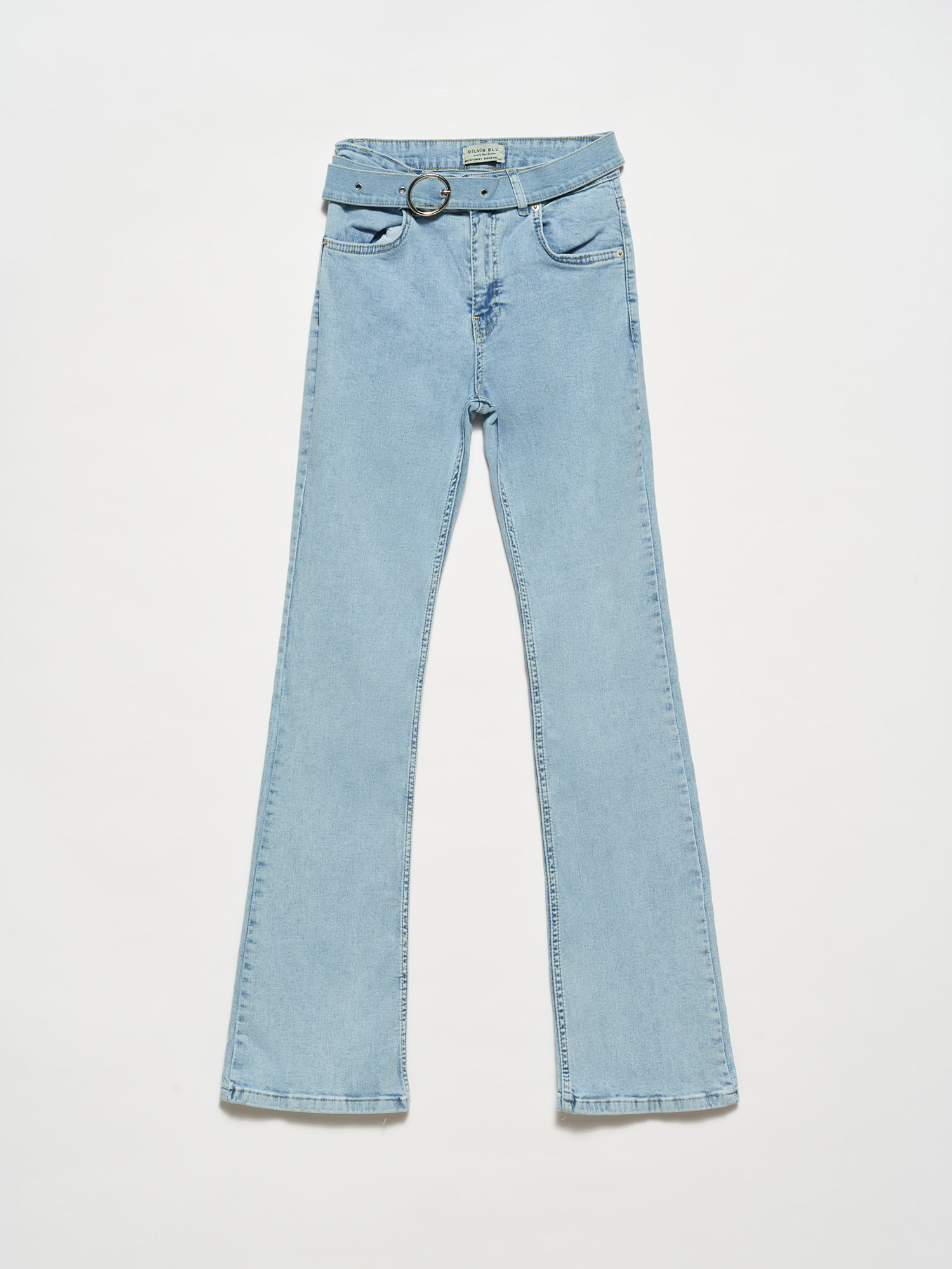 70287 Kemerli Düşük Bel Flare Pantolon-Mavi