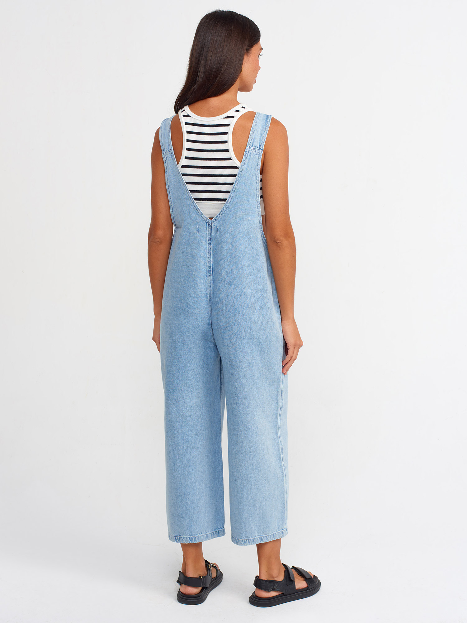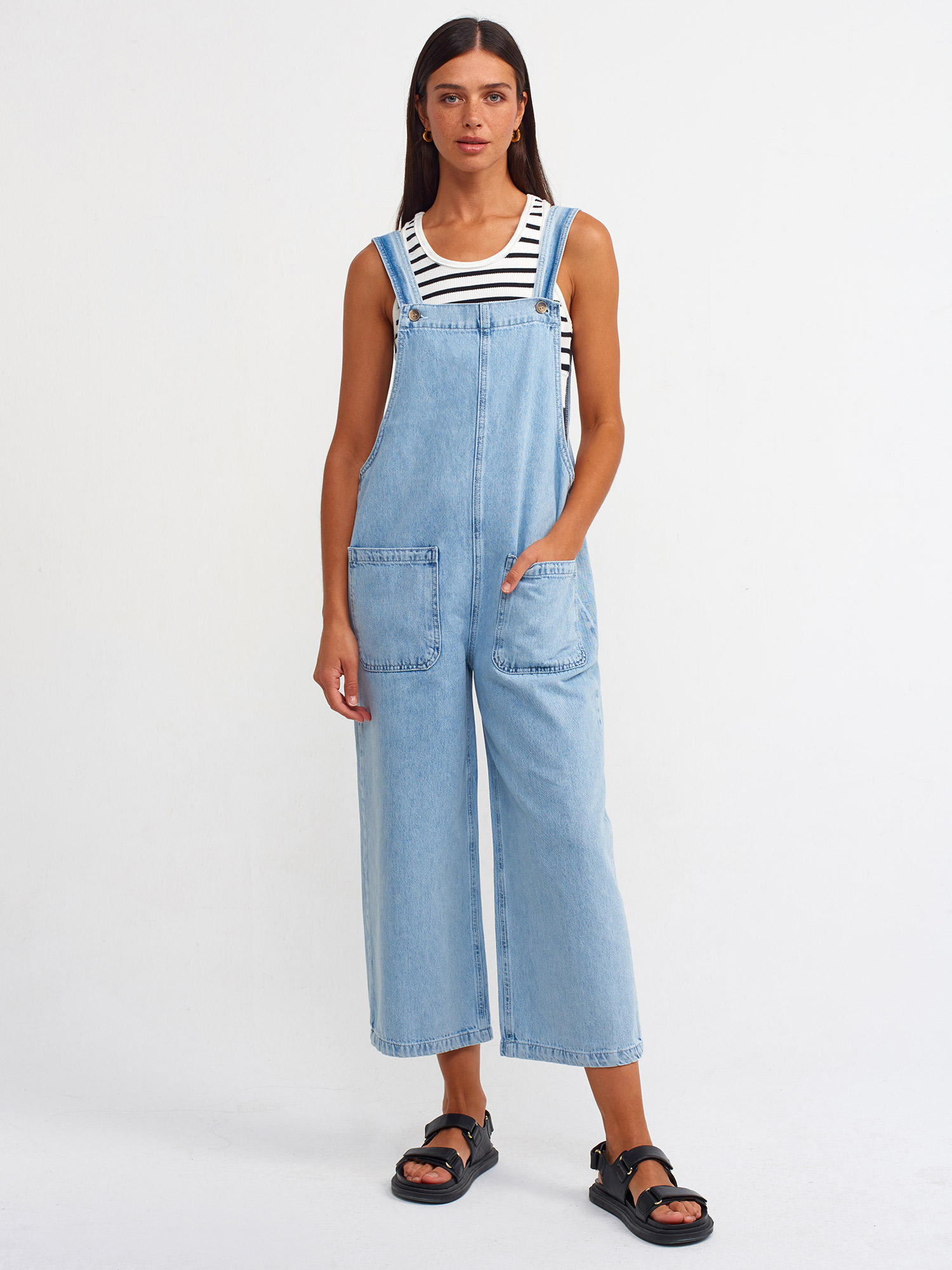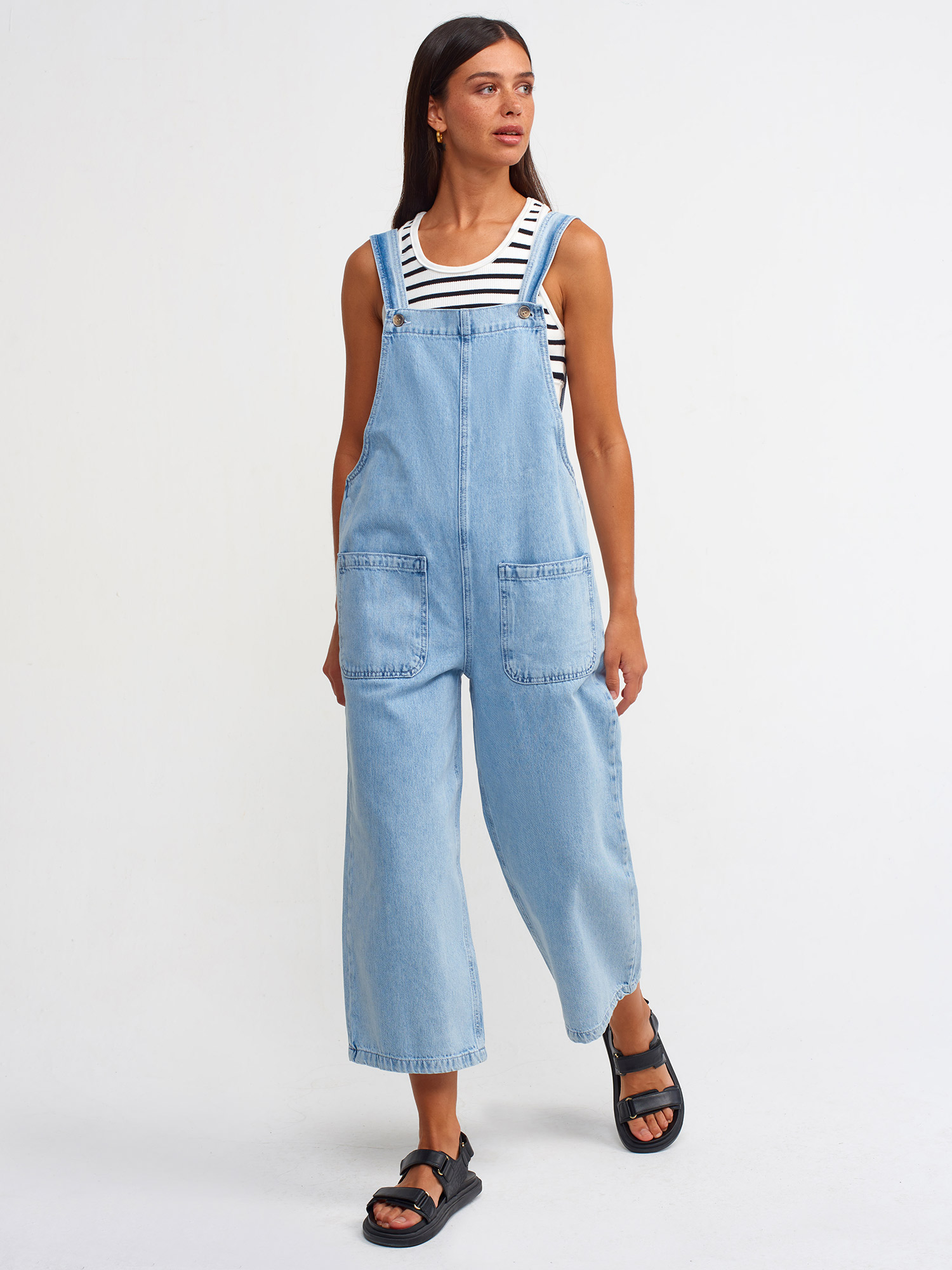 70298 Önü Cepli Kot Tulum-Mavi