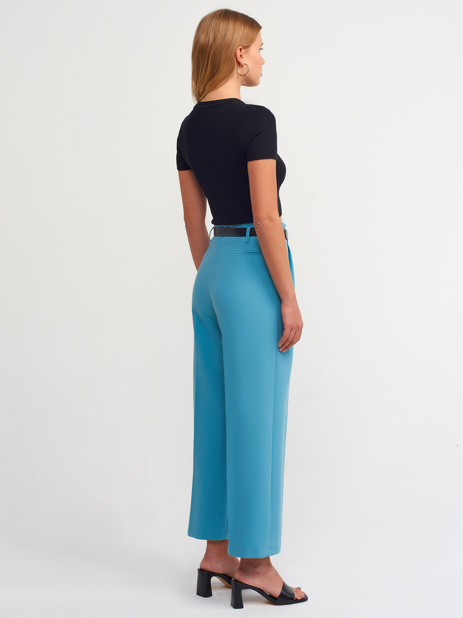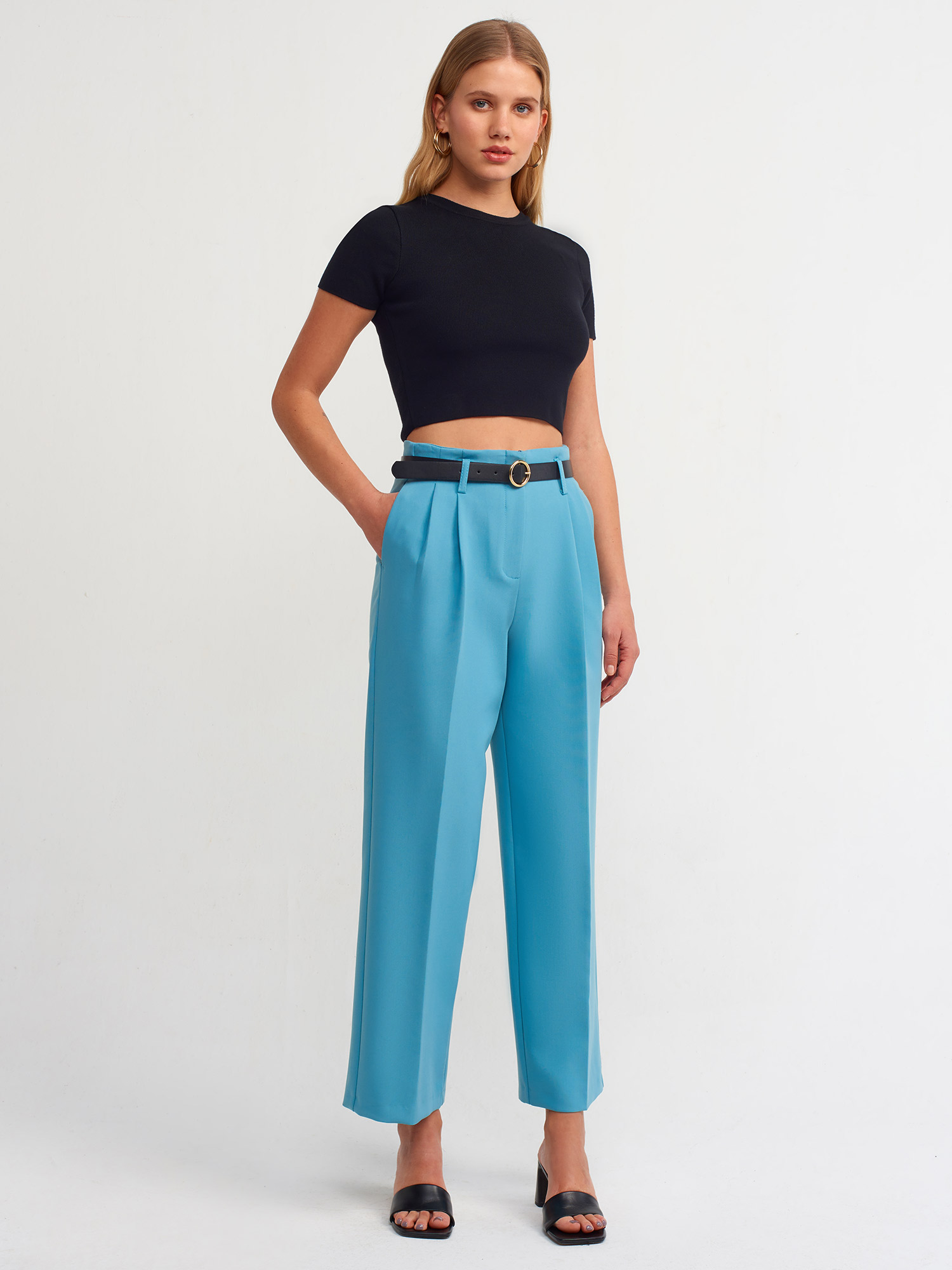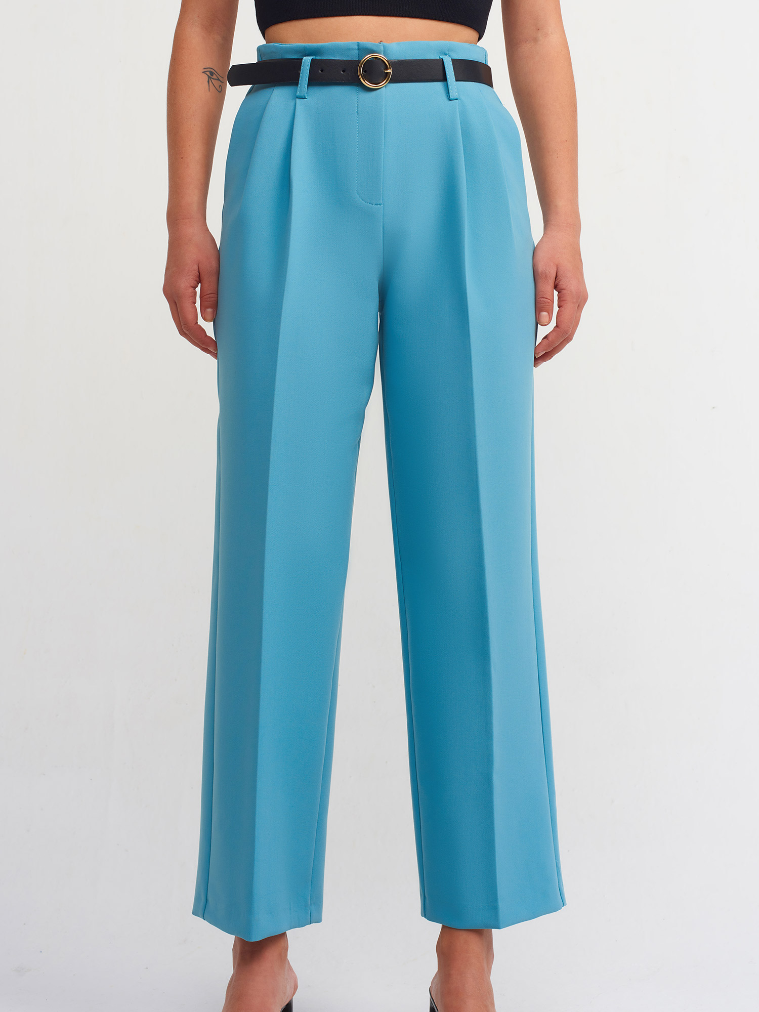 70689 Kemerli Pensli Pantolon-Çağla
