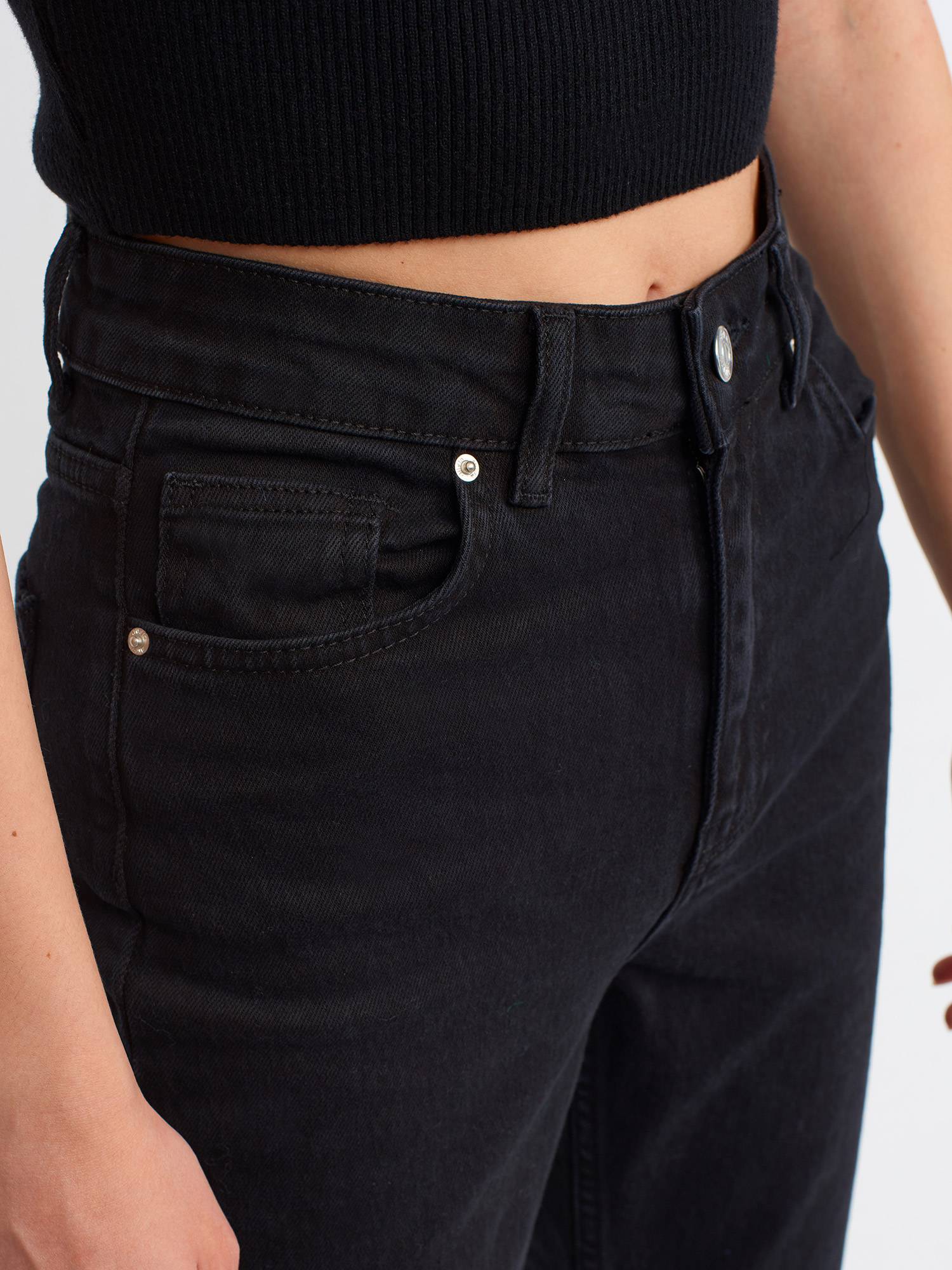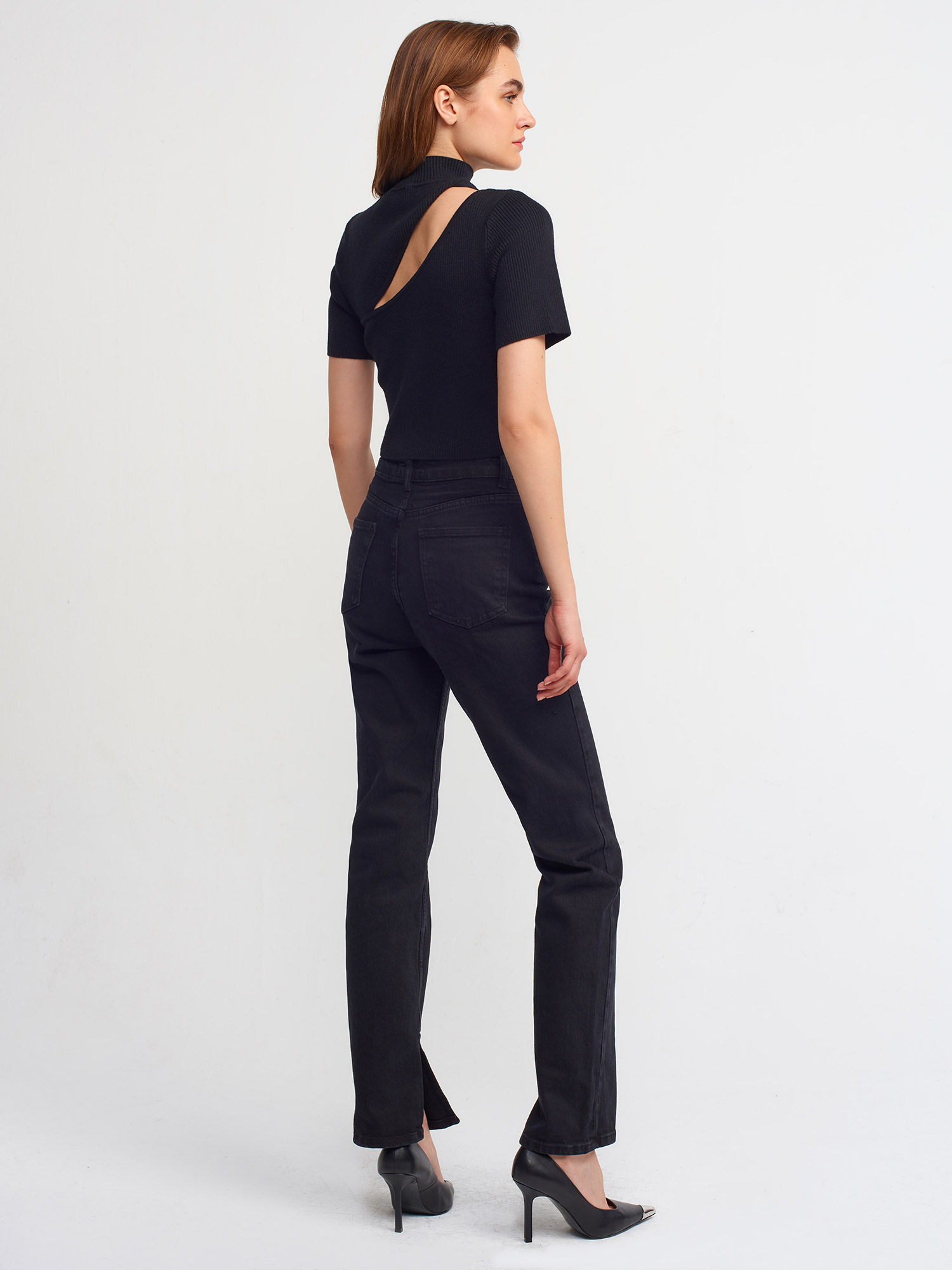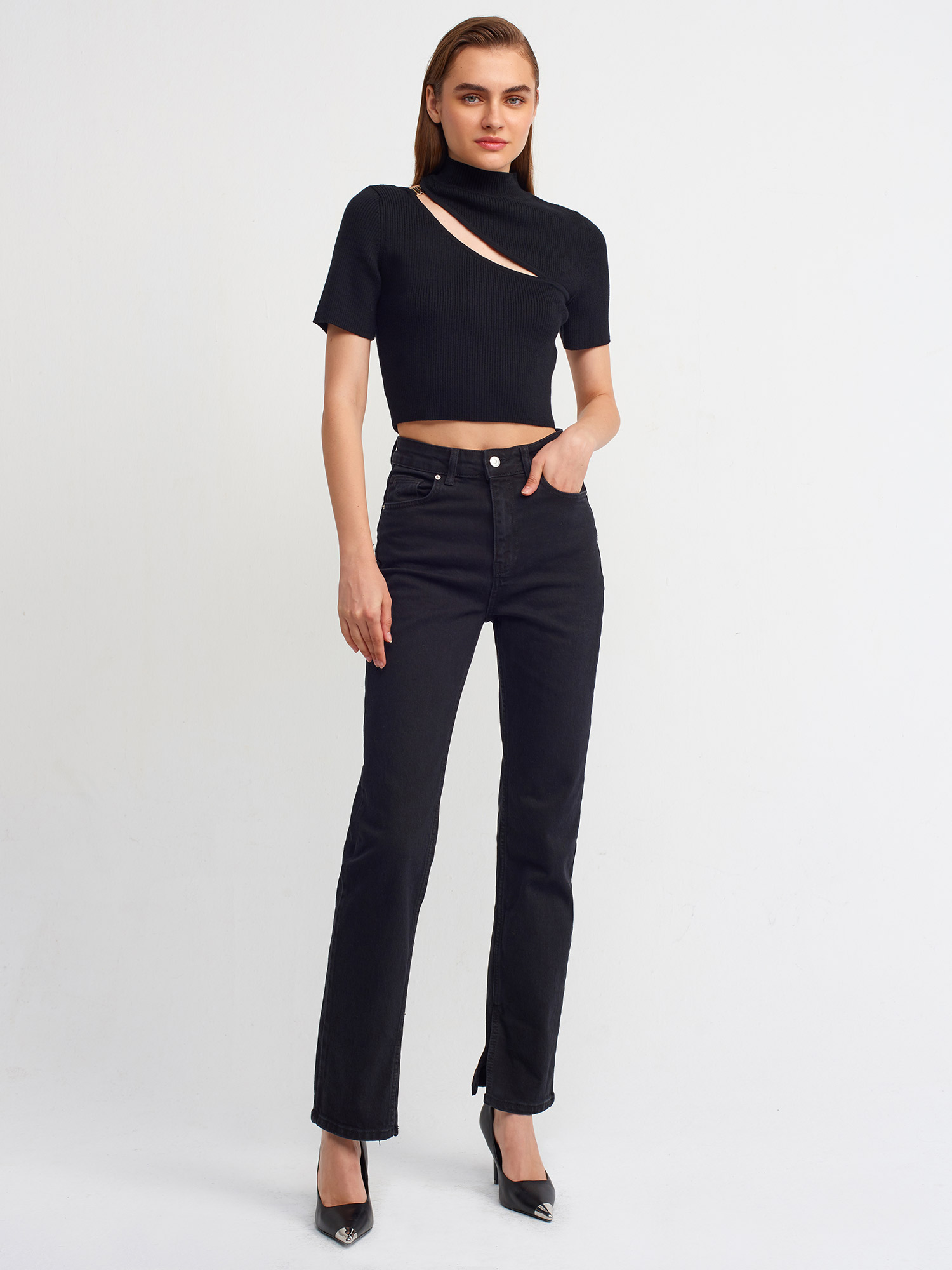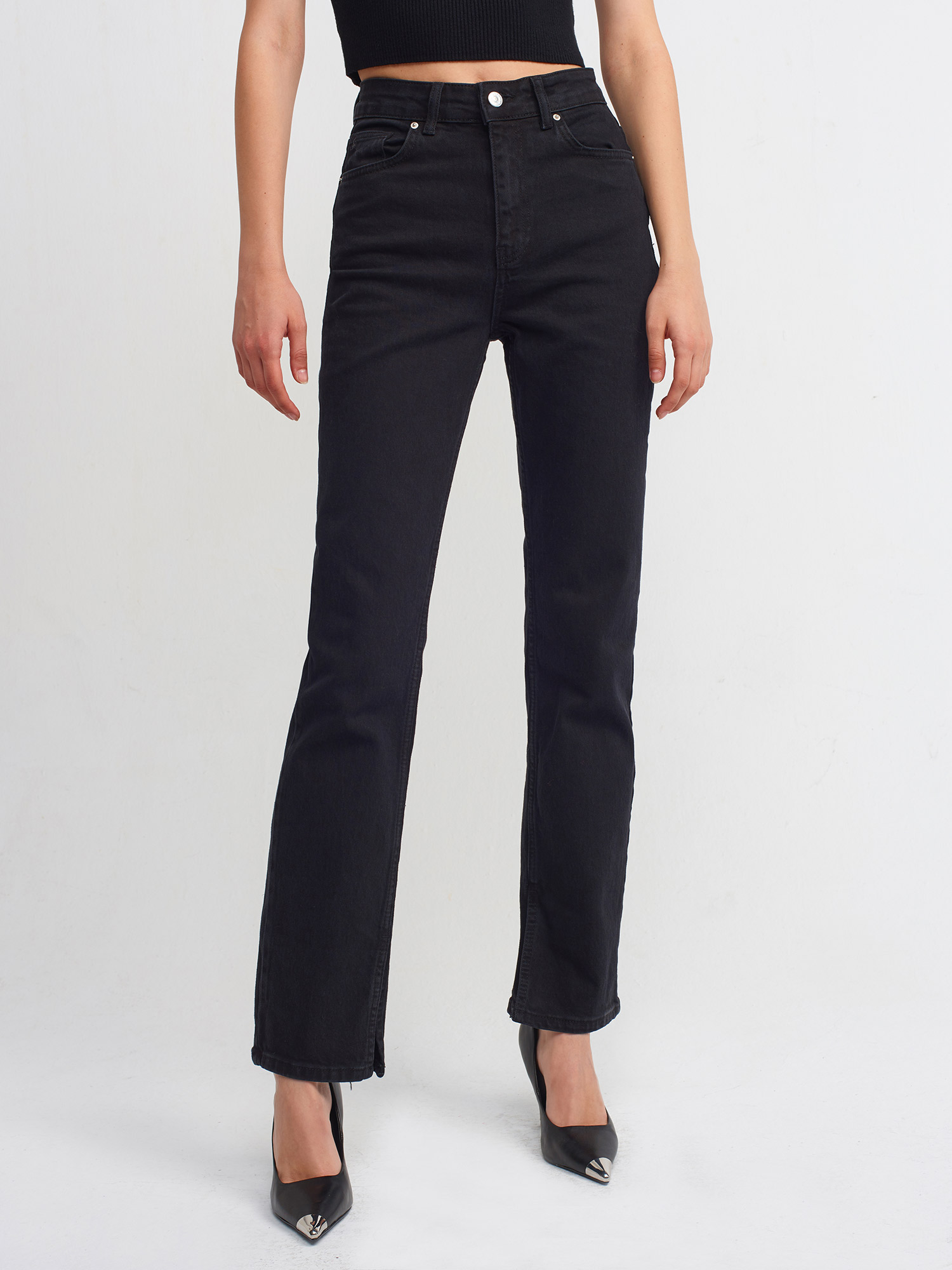 70778 Yanı Yırtmaçlı Boru Paça Pantolon-Siyah