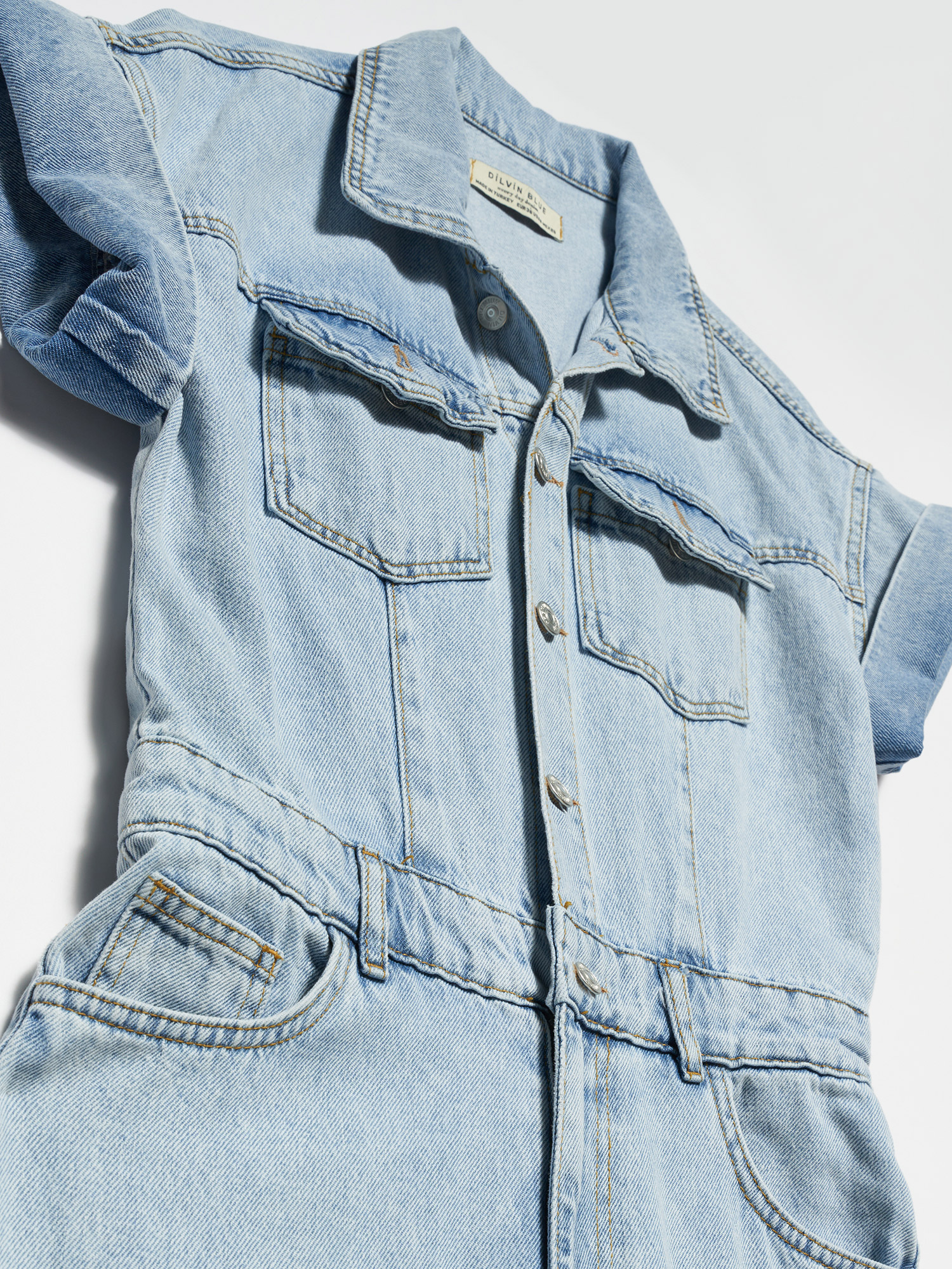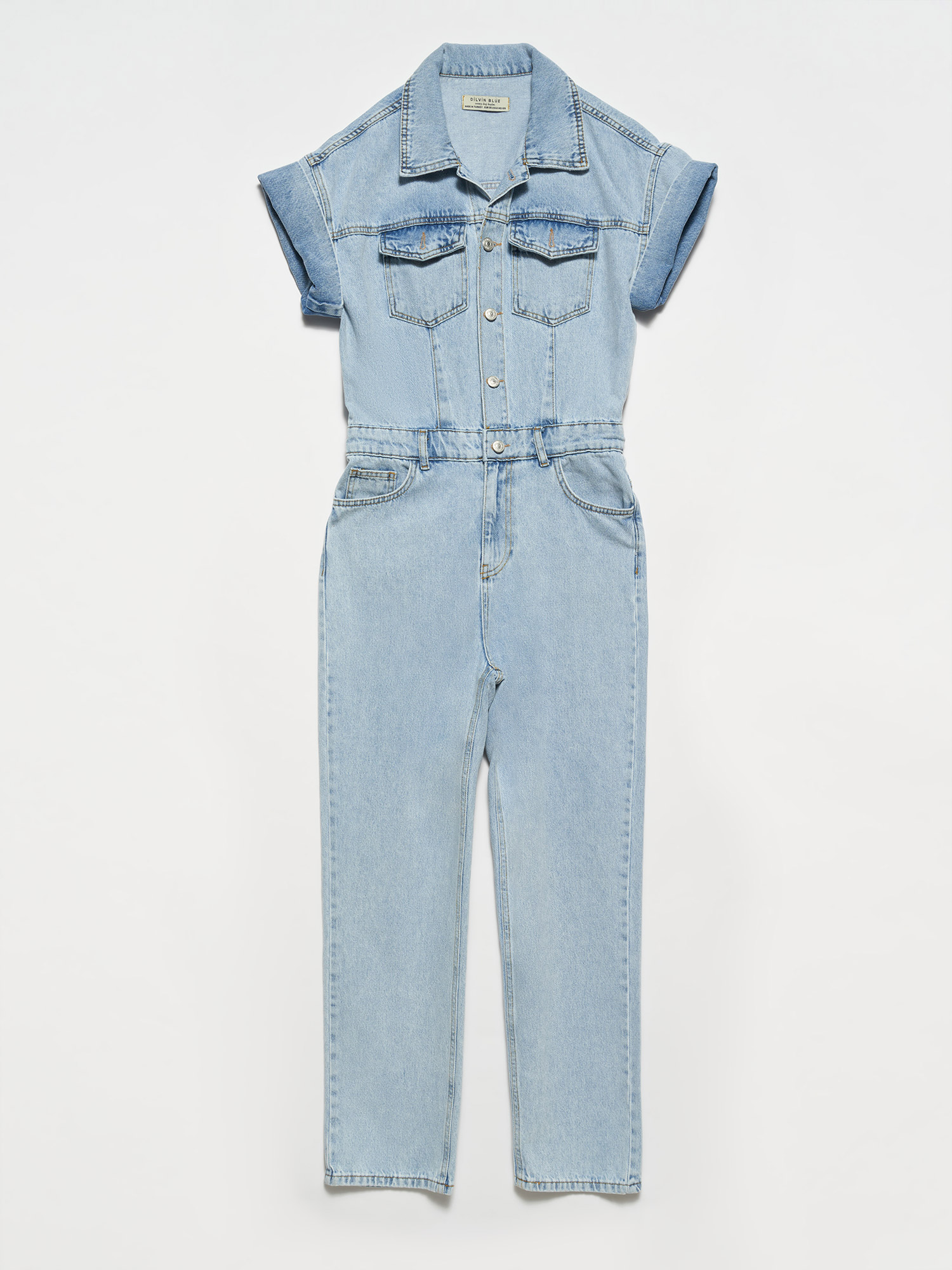 70840 Kısa Kollu Kar Yıkama Tulum-Mavi